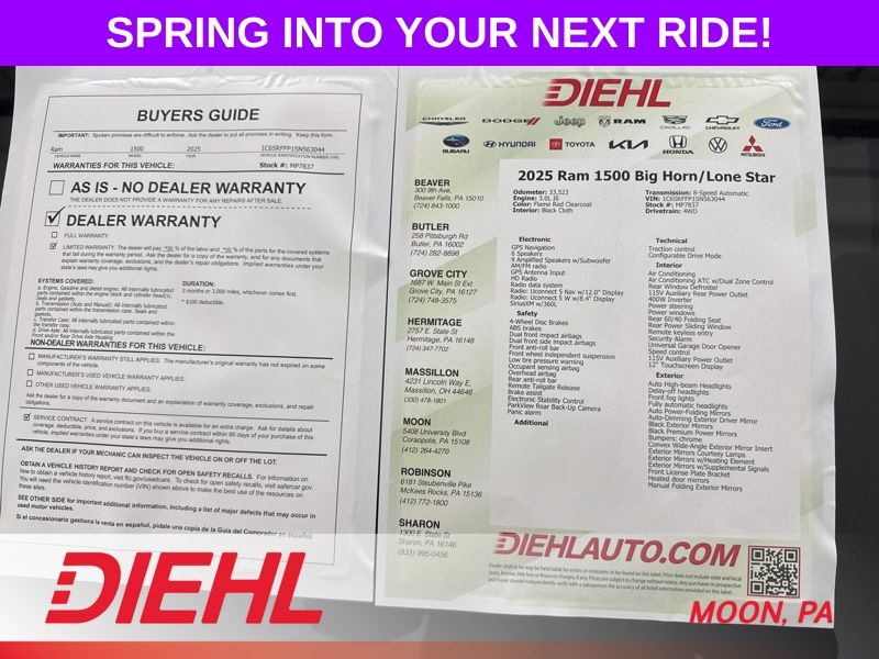 If you're looking for a 2025 Ram 1500 Big Horn that balances real truck capability with modern tech and comfort, this one checks all the right boxes. Come see it in person at Diehl of Moon and take it for a drive. Trucks this well equipped do not tend to hang around for long.