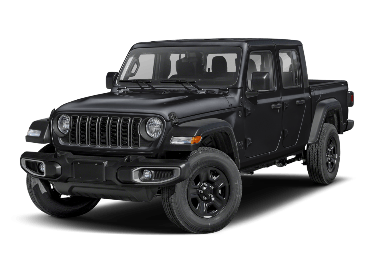 Dark Sky Appearance Package (Body Color Fender Flares (2-Piece), Daytime Running Lamp System, Mold In Color Bumper w/Gloss Black, and Performance Hood), Quick Order Package 24S Sport S (Advanced Brake Assist, Automatic Headlamps, Deep Tint Sunscreen Windows, Enhanced Adaptive Cruise Control, Full Speed Forward Collision Warning Plus, Normal Duty Plus Suspension, Power Heated Mirrors, Premium Wrapped Steering Wheel, Security Alarm, Sun Visors w/Illuminated Vanity Mirrors, and Wheels: 17" x 7.5" Gray), 110 MPH Vehicle Max Speed Calibration, 12.3" Touchscreen Display, 3.73 Rear Axle Ratio, 4-Wheel Disc Brakes, 4G LTE Wi-Fi Hot Spot, 8 Speakers, ABS brakes, Air Conditioning, Alexa Built-In, AM/FM radio: SiriusXM, Apple CarPlay, Apple CarPlay/Android Auto, Black 3-Piece Hard Top, Brake assist, Cloth Low-Back Bucket Seats, Compass, Connectivity - US/Canada, Delay-off headlights, Driver door bin, Driver vanity mirror, Dual front impact airbags, Dual front side impact airbags, Electronic Stability Control, Freedom Panel Storage Bag, Front anti-roll bar, Front Bucket Seats, Front Center Armrest w/Storage, Front fog lights, Front License Plate Bracket, Front reading lights, Google Android Auto, Illuminated entry, Integrated roll-over protection, Low tire pressure warning, MOPAR All-Weather Slush Mats, Normal Duty Suspension, Occupant sensing airbag, Outside temperature display, Overhead airbag, Panic alarm, ParkView Rear Back-Up Camera, Passenger door bin, Passenger vanity mirror, Power steering, Power windows, Radio data system, Radio: Uconnect 5 w/12.3" Display, Rear anti-roll bar, Rear reading lights, Rear Sliding Window, Rear Window Defroster, Remote keyless entry, Speed control, Split folding rear seat, Steering wheel mounted audio controls, Tachometer, Telescoping steering wheel, Tilt steering wheel, Traction control, Trip computer, USB Host Flip, Variably intermittent wipers, Voltmeter, and Wheels: 17" x 7.5" Black Steel Styled. Black Clearcoat 2025 Jeep Gladiator Sport S 4WD 8-Speed Automatic 3.6L V6 24V VVT