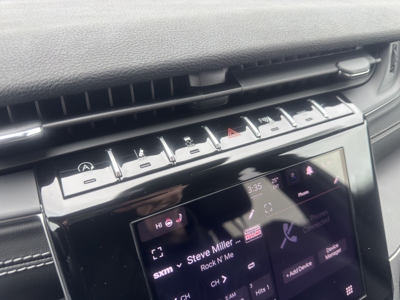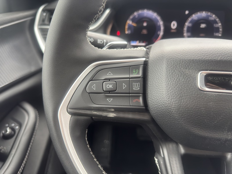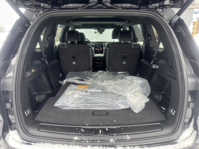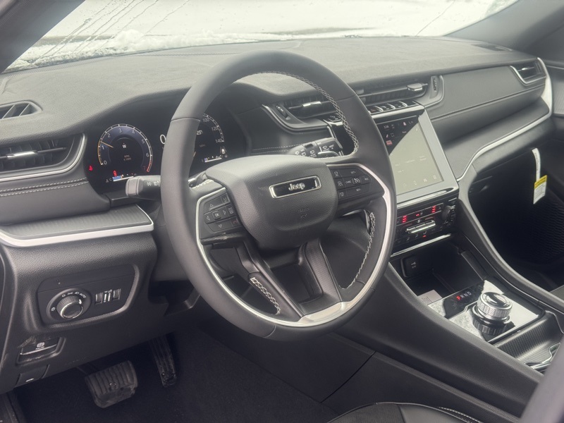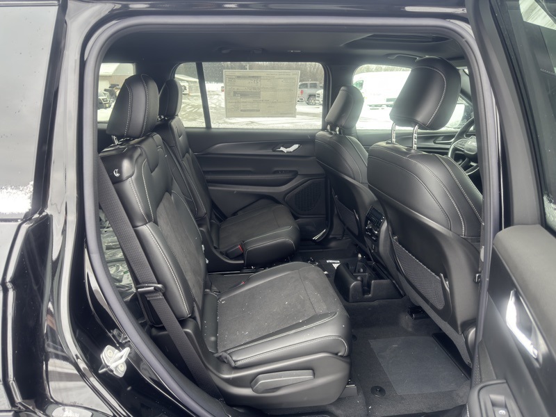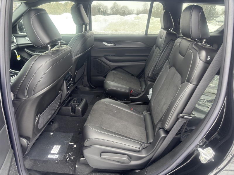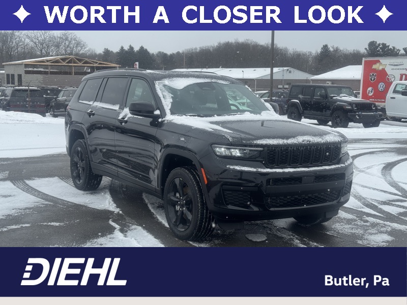 Quick Order Package 23M Altitude X (115V Auxiliary Power Outlet, 3rd Row Charge-Only USB Ports, Altitude X, Black Headliner, Capri Leatherette/Suede Seats, Delete Laredo Badge, Gloss Black Exterior Accents, Heated Front Seats, Heated Steering Wheel, Power Liftgate, Power Sunroof, Rain Sensitive Windshield Wipers, Remote Start System, Selectable Tire Fill Alert, Wheels: 18" x 8.0" Fully Painted Aluminum 1, and Wireless Charging Pad), 3.45 Rear Axle Ratio, 3rd row seats: split-bench, 4-Wheel Disc Brakes, 6 Speakers, ABS brakes, Air Conditioning, Alloy wheels, AM/FM radio: SiriusXM, Anti-whiplash front head restraints, Automatic temperature control, Brake assist, Bumpers: body-color, Cloth Seats, Compass, Delay-off headlights, Driver door bin, Driver vanity mirror, Dual front impact airbags, Dual front side impact airbags, Electronic Stability Control, Emergency communication system, Four wheel independent suspension, Front anti-roll bar, Front Bucket Seats, Front Center Armrest w/Storage, Front dual zone A/C, Front reading lights, Fully automatic headlights, Heated door mirrors, Illuminated entry, Knee airbag, Low tire pressure warning, Manual Fold Seatbacks, Model Year Tracking, Normal Duty Suspension, Occupant sensing airbag, Outside temperature display, Overhead airbag, Overhead console, Panic alarm, ParkView Rear Back-Up Camera, Passenger door bin, Passenger vanity mirror, Power door mirrors, Power driver seat, Power steering, Power windows, Radio data system, Radio: Uconnect 5 with 8.4" Display, Rear air conditioning, Rear anti-roll bar, Rear reading lights, Rear window defroster, Rear window wiper, Reclining 3rd row seat, Remote keyless entry, Security system, Speed control, Speed-Sensitive Wipers, Split folding rear seat, Spoiler, Steering wheel mounted audio controls, Tachometer, Telescoping steering wheel, Tilt steering wheel, Traction control, Trip computer, Variably intermittent wipers, Voltmeter, Wheels: 18" x 8.0" Fully Painted Aluminum, and Wheels: 20" x 8.5" Gloss Black Painted Aluminum. Diamond Black Crystal Pearlcoat 2025 Jeep Grand Cherokee L Altitude X 4WD 8-Speed Automatic 3.6L V6 24V VVT