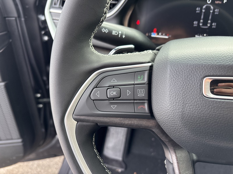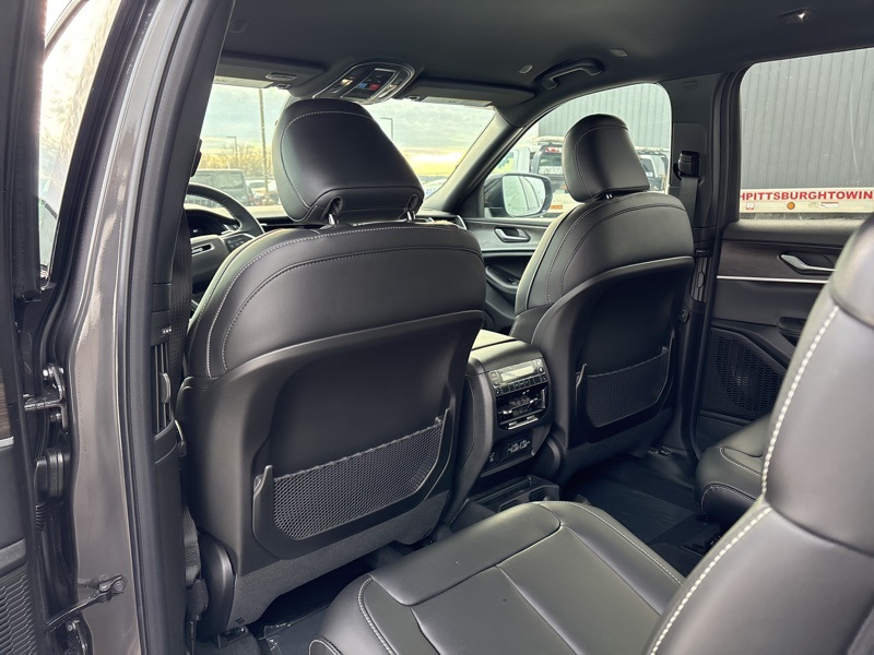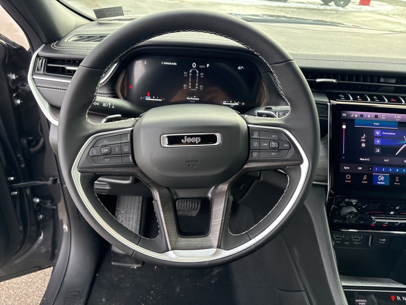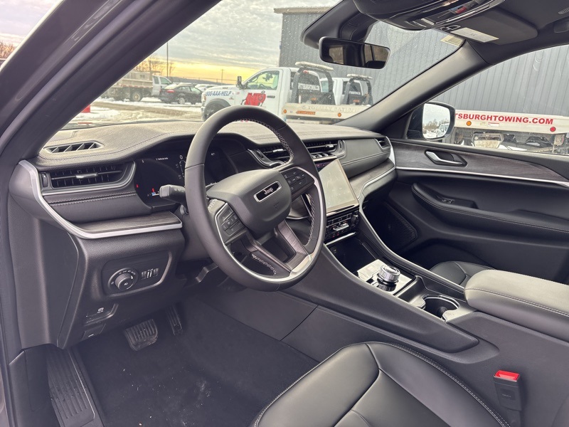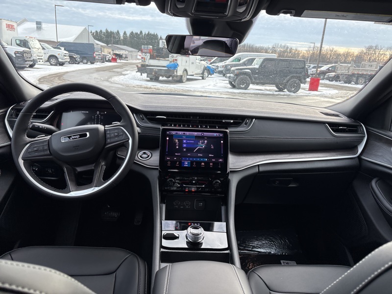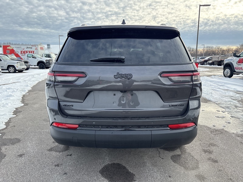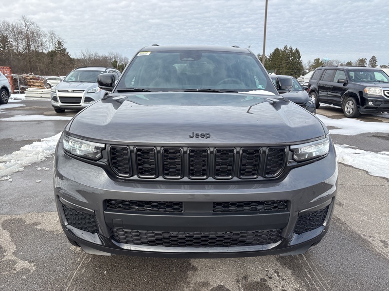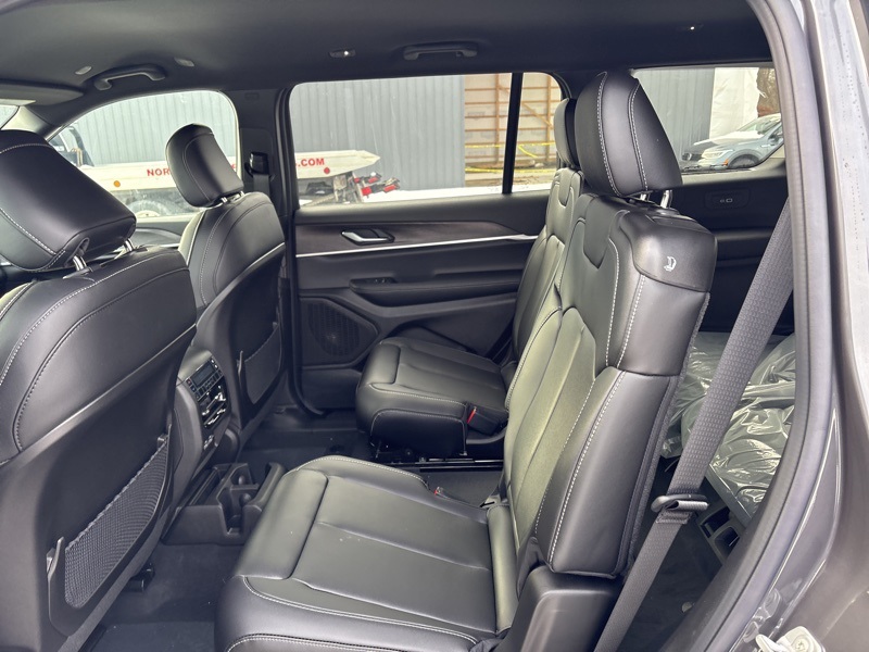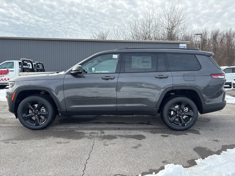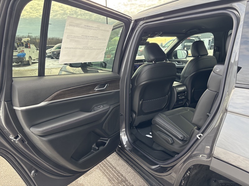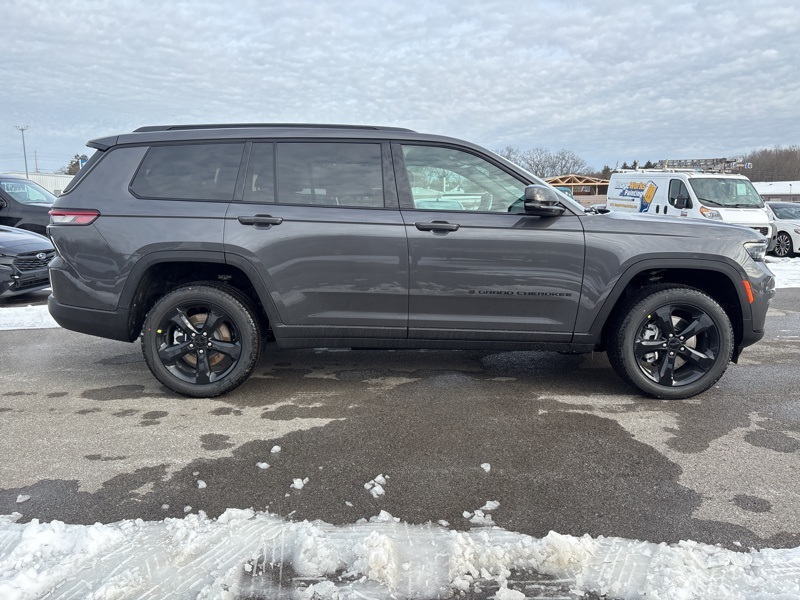 Black Appearance Package (Gloss Black Exterior Accents and Wheels: 20" x 8.5" Gloss Black Painted Aluminum), Quick Order Package 23E, 3.45 Rear Axle Ratio, 3rd row seats: split-bench, 4-Wheel Disc Brakes, 6 Speakers, ABS brakes, Active Noise Control System, Air Conditioning, Alloy wheels, AM/FM radio: SiriusXM with 360L, Anti-whiplash front head restraints, Audio memory, Auto High-beam Headlights, Automatic temperature control, Brake assist, Bumpers: body-color, Capri Leatherette Seats, Compass, Delay-off headlights, Driver door bin, Driver vanity mirror, Dual front impact airbags, Dual front side impact airbags, Electronic Stability Control, Emergency communication system, Four wheel independent suspension, Front anti-roll bar, Front Bucket Seats, Front Center Armrest w/Storage, Front dual zone A/C, Front fog lights, Front reading lights, Fully automatic headlights, Garage door transmitter, Heated door mirrors, Heated front seats, Heated rear seats, Heated steering wheel, Illuminated entry, Knee airbag, Low tire pressure warning, Manual Fold Seatbacks, Memory seat, Model Year Tracking, Navigation System, Normal Duty Suspension, Occupant sensing airbag, Outside temperature display, Overhead airbag, Overhead console, Panic alarm, ParkView Rear Back-Up Camera, Passenger door bin, Passenger vanity mirror, Power door mirrors, Power driver seat, Power Liftgate, Power passenger seat, Power steering, Power windows, Radio data system, Radio: Uconnect 5 Nav with 10.1" Display, Rear air conditioning, Rear anti-roll bar, Rear reading lights, Rear window defroster, Rear window wiper, Reclining 3rd row seat, Remote keyless entry, Security system, Speed control, Speed-Sensitive Wipers, Split folding rear seat, Spoiler, Steering wheel mounted audio controls, Tachometer, Telescoping steering wheel, Tilt steering wheel, Traction control, Trip computer, Turn signal indicator mirrors, Variably intermittent wipers, Voltmeter, and Wheels: 18" x 8.0" Polished/Painted Aluminum. Baltic Gray Metallic Clearcoat 2025 Jeep Grand Cherokee L Limited 4WD 8-Speed Automatic 3.6L V6 24V VVT