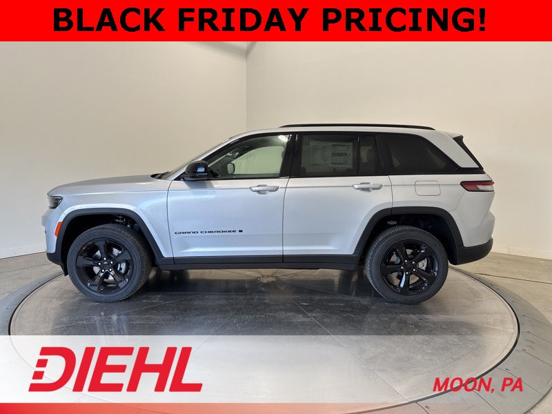 Technology takes the spotlight with a 10.1 inch touchscreen featuring Apple CarPlay, Android Auto, and built in voice command for effortless control. The available power liftgate, wireless charging pad, and remote start add convenience to every day, while advanced safety features like Adaptive Cruise Control, Blind Spot Monitoring, and ParkSense Rear Park Assist give you confidence from driveway to highway. With 4x4 traction, 26 highway MPG, and unmistakable Jeep attitude, this new Jeep Grand Cherokee Altitude X for sale near Pittsburgh delivers style, comfort, and capability in one perfect package. Visit Diehl of Moon Chrysler Jeep Dodge Ram in Moon Township PA for the best new car deals near Pittsburgh and experience why Jeep continues to set the standard for premium SUVs. Schedule your test drive today and see what elevated driving feels like. Price includes: $1000 - 2025 National Grand Cherokee Loyalty Retail Bonus Cash . Exp. 12/01/2025 $1500 - 2025 National Stellantis Loyalty Retail Bonus Cash . Exp. 12/01/2025 $2000 - 2025 National SFS Lease Loyalty Bonus Cash. Exp. 12/01/2025 $2250 - 2025 National Retail Bonus Cash . Exp. 12/01/2025 $500 - 2025 National 2025 First Responder Bonus Cash. Exp. 01/05/2026