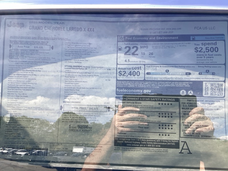 19/26 City/Highway MPG Price includes: $1000 - 2025 National Grand Cherokee Loyalty Retail Bonus Cash . Exp. 12/01/2025 $2000 - 2025 National SFS Lease Loyalty Bonus Cash. Exp. 12/01/2025 $2250 - 2025 National Retail Bonus Cash . Exp. 12/01/2025