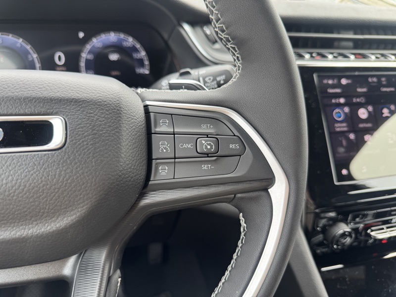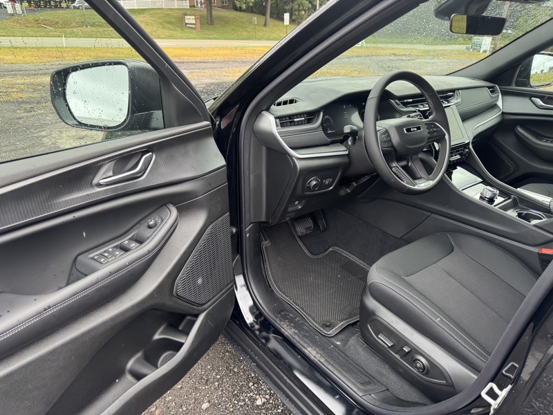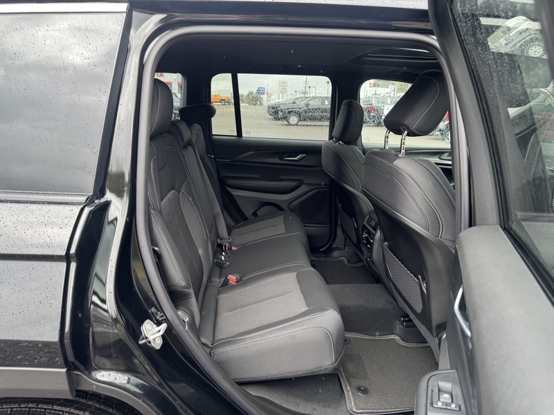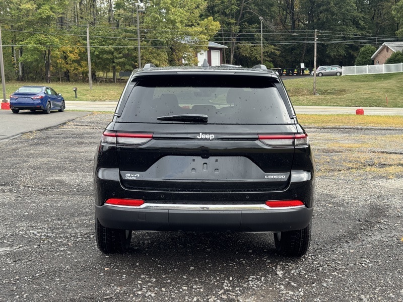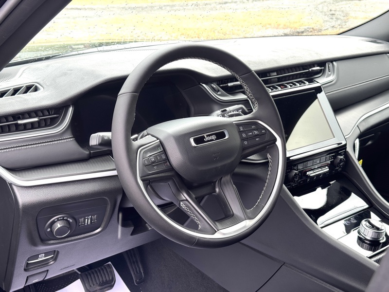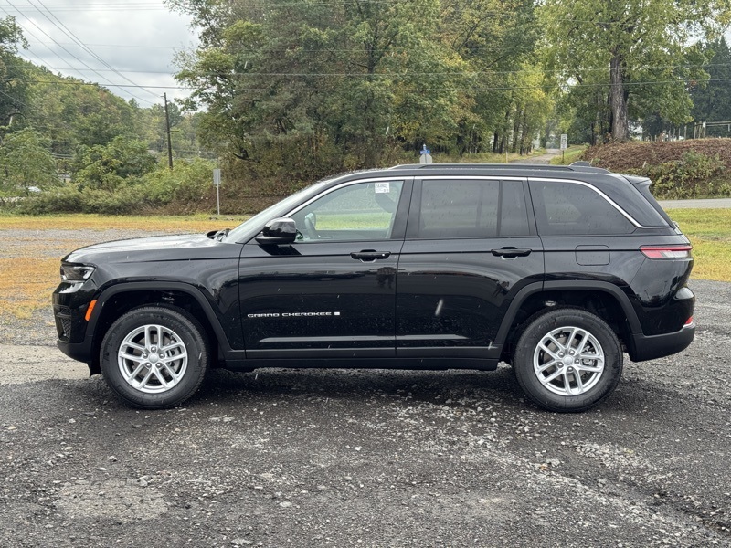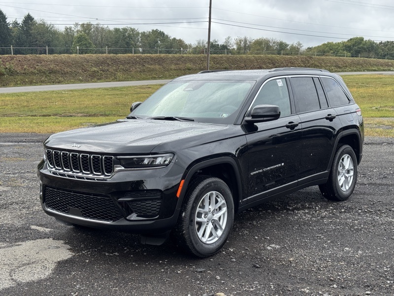 Luxury Tech Group I (115V Auxiliary Power Outlet, Heated Front Seats, Heated Steering Wheel, Power Liftgate, Rain Sensitive Windshield Wipers, Remote Start System, Satellite Radio, Secondary Active Grille Shutters, Selectable Tire Fill Alert, and Wireless Charging Pad), Quick Order Package 23D Laredo X (Laredo X, Power Sunroof, and Wheels: 18" x 8" Fully Painted Aluminum), Trailer Tow Package (180 Amp Alternator, 7 & 4-Pin Wiring Harness, Automatic Headlamp Levelling System, Class IV Receiver Hitch, Heavy-Duty Engine Cooling, Rear Load Levelling Suspension, and Trailer Hitch Zoom), 4WD, 4-Wheel Disc Brakes, 6 Speakers, ABS brakes, Air Conditioning, Alloy wheels, AM/FM radio: SiriusXM, Anti-whiplash front head restraints, Automatic temperature control, Brake assist, Bumpers: body-color, Cloth Seats, Compass, Delay-off headlights, Driver door bin, Driver vanity mirror, Dual front impact airbags, Dual front side impact airbags, Electronic Stability Control, Emergency communication system, Four wheel independent suspension, Front anti-roll bar, Front Bucket Seats, Front Center Armrest w/Storage, Front dual zone A/C, Front reading lights, Fully automatic headlights, Heated door mirrors, Illuminated entry, Knee airbag, Low tire pressure warning, Model Year Tracking, Normal Duty Suspension, Occupant sensing airbag, Outside temperature display, Overhead airbag, Overhead console, Panic alarm, ParkView Rear Back-Up Camera, Passenger door bin, Passenger vanity mirror, Power door mirrors, Power driver seat, Power steering, Power windows, Radio data system, Radio: Uconnect 5 w/8.4" Display, Rear anti-roll bar, Rear reading lights, Rear window defroster, Rear window wiper, Remote keyless entry, Security system, Speed control, Speed-Sensitive Wipers, Split folding rear seat, Spoiler, Steering wheel mounted audio controls, Tachometer, Telescoping steering wheel, Tilt steering wheel, Traction control, Trip computer, Variably intermittent wipers, Voltmeter, and Wheels: 17" x 6.5" Fully Painted Aluminum. 4WD. Diamond Black Crystal Pearlcoat 2025 Jeep Grand Cherokee Laredo X 4WD 8-Speed Automatic 3.6L V6 24V VVT