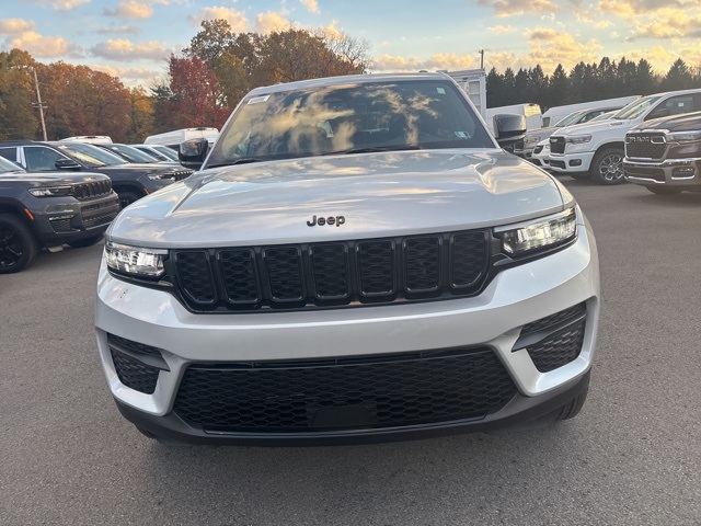 4WD, ABS brakes, Active Cruise Control, Alloy wheels, Compass, Electronic Stability Control, Emergency communication system, Front dual zone A/C, Heated door mirrors, Illuminated entry, Low tire pressure warning, ParkView Rear Back-Up Camera, Remote keyless entry, Traction control, 4-Wheel Disc Brakes, 6 Speakers, Air Conditioning, AM/FM radio: SiriusXM, Anti-whiplash front head restraints, Automatic temperature control, Brake assist, Bumpers: body-color, Cloth Seats, Delay-off headlights, Driver door bin, Driver vanity mirror, Dual front impact airbags, Dual front side impact airbags, Four wheel independent suspension, Front anti-roll bar, Front Bucket Seats, Front Center Armrest w/Storage, Front reading lights, Fully automatic headlights, Knee airbag, Normal Duty Suspension, Occupant sensing airbag, Outside temperature display, Overhead airbag, Overhead console, Panic alarm, Passenger door bin, Passenger vanity mirror, Power door mirrors, Power driver seat, Power steering, Power windows, Radio data system, Rear anti-roll bar, Rear reading lights, Rear window defroster, Rear window wiper, Security system, Speed control, Speed-Sensitive Wipers, Split folding rear seat, Spoiler, Steering wheel mounted audio controls, Tachometer, Telescoping steering wheel, Tilt steering wheel, Trip computer, Variably intermittent wipers, Voltmeter, and Wheels: 17" x 6.5" Fully Painted Aluminum. 4WD, ABS brakes, Active Cruise Control, Alloy wheels, Compass, Electronic Stability Control, Emergency communication system, Front dual zone A/C, Heated door mirrors, Illuminated entry, Low tire pressure warning, ParkView Rear Back-Up Camera, Remote keyless entry, Traction control. Silver Zynith 2025 Jeep Grand Cherokee Altitude X 4WD 8-Speed Automatic 3.6L V6 24V VVT