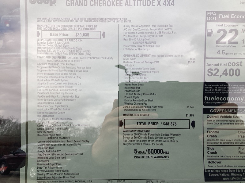 Silver Zynith 2025 Grand Cherokee Jeep Altitude X 4D Sport Utility 4WD 8-Speed Automatic 3.6L V6 24V VVT