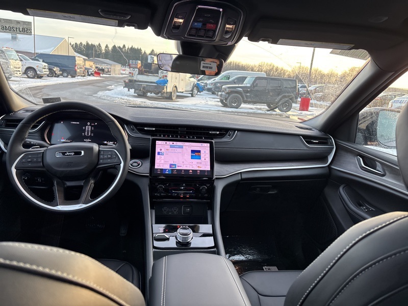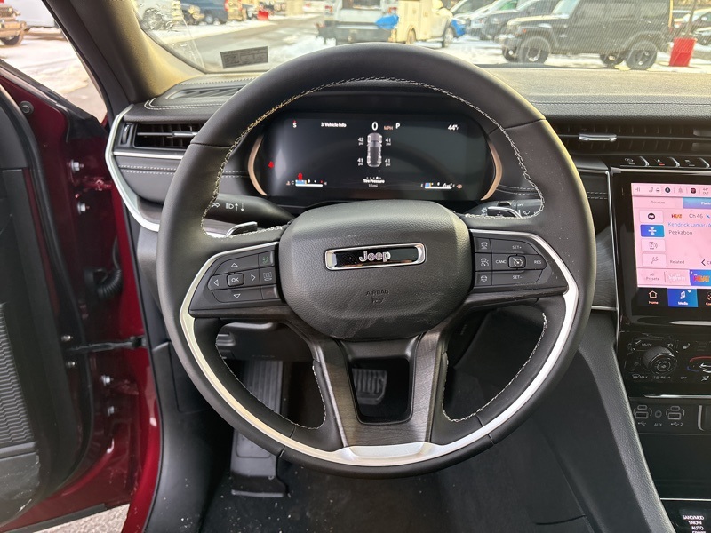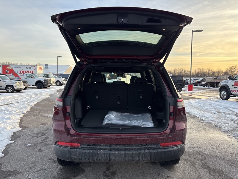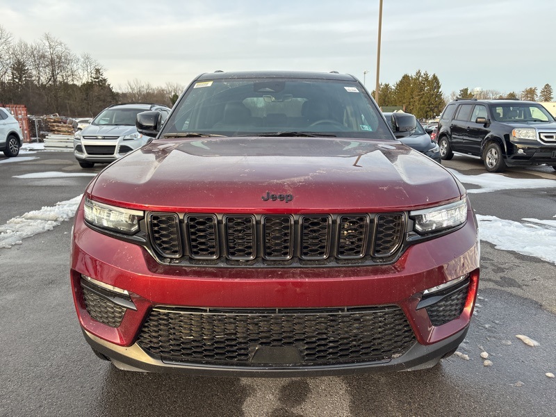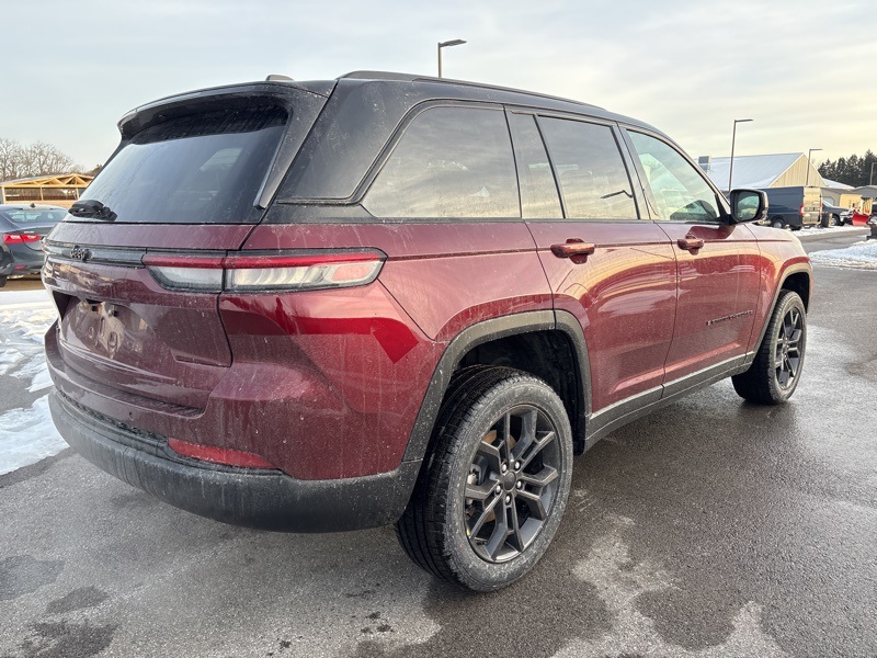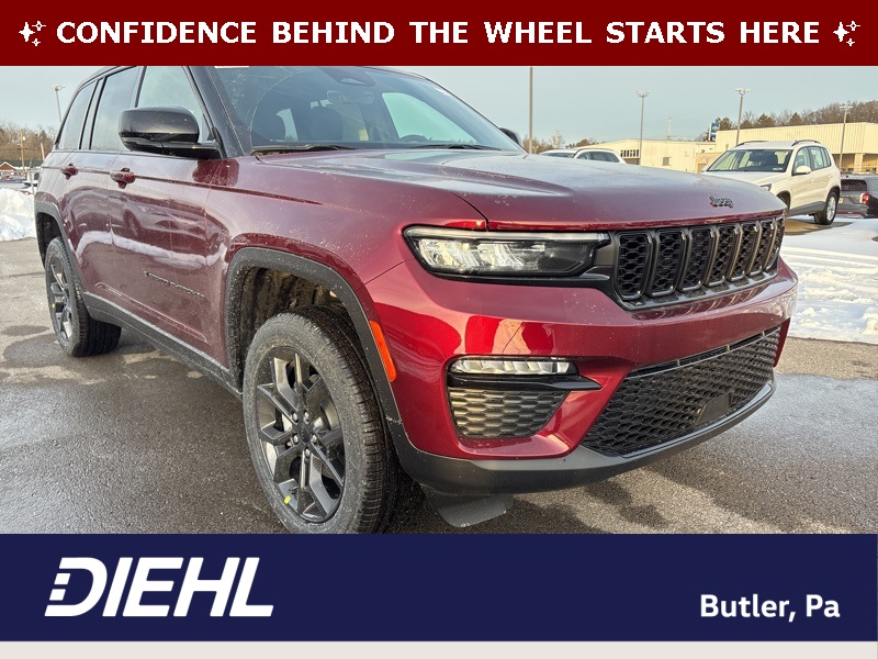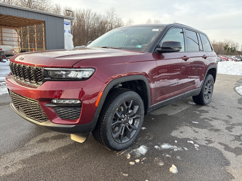 Blackout Model (Black Painted Roof, Delete Limited Badge, Dual-Pane Panoramic Sunroof, Gloss Black Exterior Accents, and Wheels: 20" x 8.5" Black Painted Aluminum), Quick Order Package 23E, 4WD, 4-Wheel Disc Brakes, 6 Speakers, ABS brakes, Active Noise Control System, Air Conditioning, Alloy wheels, AM/FM radio: SiriusXM with 360L, Anti-whiplash front head restraints, Audio memory, Auto High-beam Headlights, Automatic temperature control, Brake assist, Bumpers: body-color, Capri Leatherette Seats, Compass, Delay-off headlights, Driver door bin, Driver vanity mirror, Dual front impact airbags, Dual front side impact airbags, Electronic Stability Control, Emergency communication system, Four wheel independent suspension, Front anti-roll bar, Front Bucket Seats, Front Center Armrest w/Storage, Front dual zone A/C, Front fog lights, Front reading lights, Fully automatic headlights, Garage door transmitter, Heated door mirrors, Heated front seats, Heated rear seats, Heated steering wheel, Illuminated entry, Knee airbag, Low tire pressure warning, Memory seat, Model Year Tracking, Navigation System, Normal Duty Suspension, Occupant sensing airbag, Outside temperature display, Overhead airbag, Overhead console, Panic alarm, ParkView Rear Back-Up Camera, Passenger door bin, Passenger vanity mirror, Power door mirrors, Power driver seat, Power Liftgate, Power passenger seat, Power steering, Power windows, Radio data system, Radio: Uconnect 5 Nav with 10.1" Display, Rear anti-roll bar, Rear reading lights, Rear window defroster, Rear window wiper, Remote keyless entry, Security system, Speed control, Speed-Sensitive Wipers, Split folding rear seat, Spoiler, Steering wheel mounted audio controls, Tachometer, Telescoping steering wheel, Tilt steering wheel, Traction control, Trip computer, Turn signal indicator mirrors, Variably intermittent wipers, Voltmeter, and Wheels: 18" x 8" Polished/Painted Aluminum. 4WD. Recent Arrival! Velvet Red Pearlcoat 2025 Jeep Grand Cherokee Limited 4WD 8-Speed Automatic 3.6L V6 24V VVT