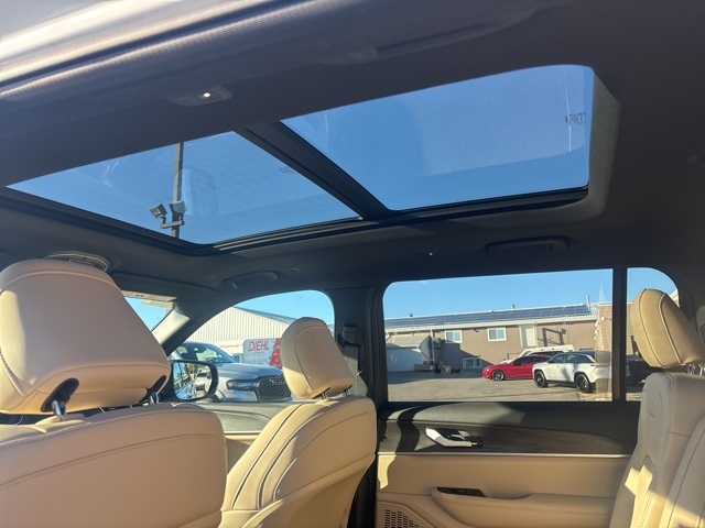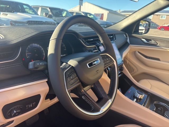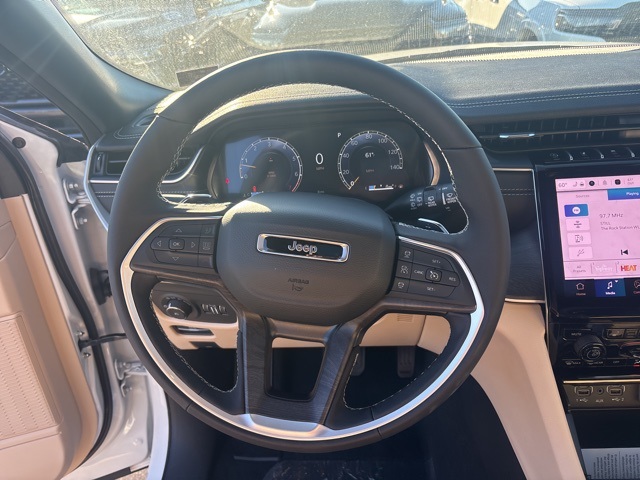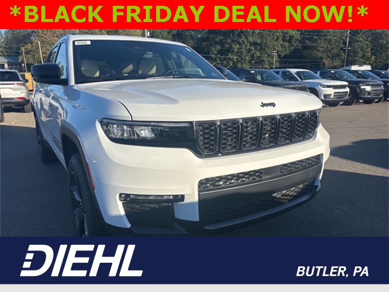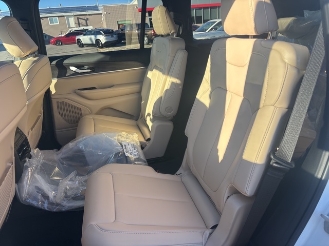 Luxury Tech Group II (2nd-Row Manual Window Shades, Auto-Dimming Exterior Driver Mirror, Capri Leatherette w/Axis II Seats, Front/Rear Doors & Liftgate w/Passive Entry, Integrated Off-Road Camera, Intersection Collision Assist System, Memory Steering Column, ParkSense Front/Rear Park Assist w/Stop, Power Tilt/Telescope Steering Column, Rain Sensitive Windshield Wipers, Rear Back-Up Camera Washer, Rearview Autodim Digital Display Mirror, Surround View Camera System, Ventilated Front Seats, and Wireless Charging Pad), Quick Order Package 22E, 4WD, 4-Wheel Disc Brakes, 6 Speakers, ABS brakes, Active Noise Control System, Air Conditioning, Alloy wheels, AM/FM radio: SiriusXM with 360L, Anti-whiplash front head restraints, Audio memory, Auto High-beam Headlights, Automatic temperature control, Brake assist, Bumpers: body-color, Capri Leatherette Seats, Compass, Delay-off headlights, Driver door bin, Driver vanity mirror, Dual front impact airbags, Dual front side impact airbags, Dual-Pane Panoramic Sunroof, Electronic Stability Control, Emergency communication system, Four wheel independent suspension, Front anti-roll bar, Front Bucket Seats, Front Center Armrest w/Storage, Front dual zone A/C, Front fog lights, Front reading lights, Fully automatic headlights, Garage door transmitter, Heated door mirrors, Heated front seats, Heated rear seats, Heated steering wheel, Illuminated entry, Knee airbag, Low tire pressure warning, Memory seat, Model Year Tracking, Navigation System, Normal Duty Suspension, Occupant sensing airbag, Outside temperature display, Overhead airbag, Overhead console, Panic alarm, ParkView Rear Back-Up Camera, Passenger door bin, Passenger vanity mirror, Power door mirrors, Power driver seat, Power Liftgate, Power passenger seat, Power steering, Power windows, Radio data system, Radio: Uconnect 5 Nav w/10.1" Display, Rear anti-roll bar, Rear reading lights, Rear window defroster, Rear window wiper, Remote keyless entry, Security system, Speed control, Speed-Sensitive Wipers, Split folding rear seat, Spoiler, Steering wheel mounted audio controls, Tachometer, Telescoping steering wheel, Tilt steering wheel, Traction control, Trip computer, Turn signal indicator mirrors, Variably intermittent wipers, Voltmeter, and Wheels: 18" x 8" Polished/Painted Aluminum. 4WD. Bright White Clearcoat 2025 Jeep Grand Cherokee Limited 4WD 8-Speed Automatic 3.6L V6 24V VVT