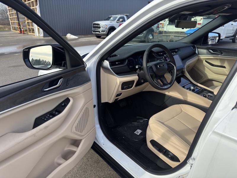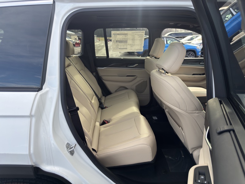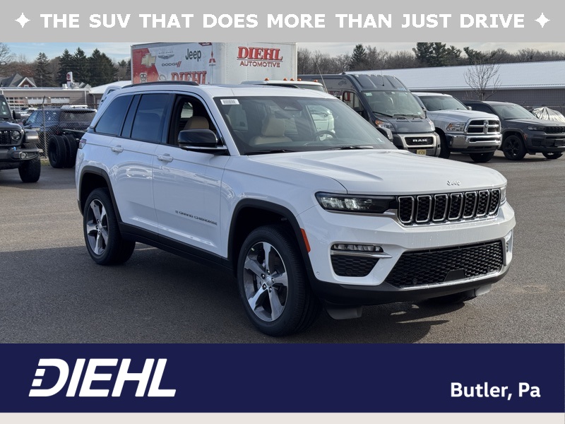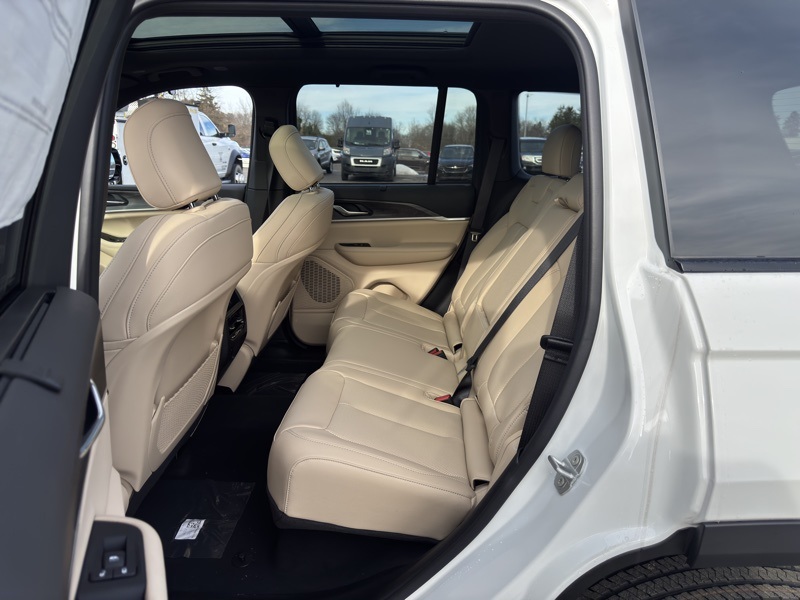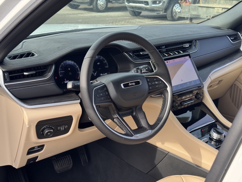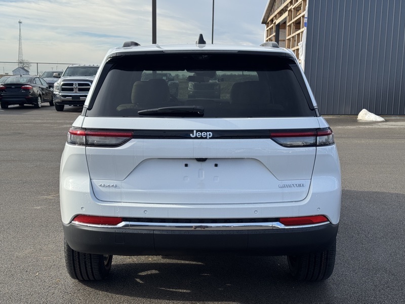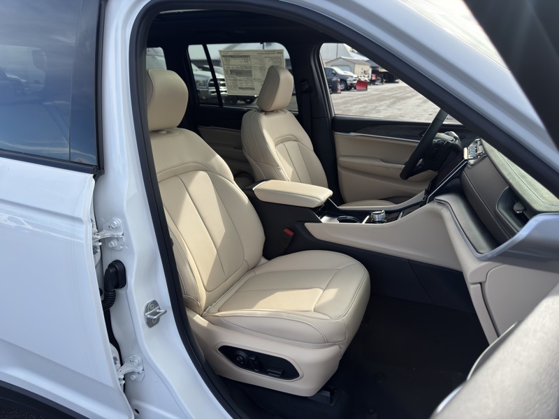 Luxury Tech Group II (2nd-Row Manual Window Shades, Auto-Dimming Exterior Driver Mirror, Capri Leatherette with Axis II Seats, Front/Rear Doors and Liftgate with Passive Entry, Integrated Off-Road Camera, Intersection Collision Assist System, Memory Steering Column, ParkSense Front/Rear Park Assist with Stop, Power Tilt/Telescope Steering Column, Rain Sensitive Windshield Wipers, Rear Back-Up Camera Washer, Rearview Autodim Digital Display Mirror, Surround View Camera System, Ventilated Front Seats, and Wireless Charging Pad), Quick Order Package 23E, 4WD, 4-Wheel Disc Brakes, 6 Speakers, ABS brakes, Active Noise Control System, Air Conditioning, Alloy wheels, AM/FM radio: SiriusXM with 360L, Anti-whiplash front head restraints, Audio memory, Auto High-beam Headlights, Automatic temperature control, Brake assist, Bumpers: body-color, Capri Leatherette Seats, Compass, Delay-off headlights, Driver door bin, Driver vanity mirror, Dual front impact airbags, Dual front side impact airbags, Dual-Pane Panoramic Sunroof, Electronic Stability Control, Emergency communication system, Four wheel independent suspension, Front anti-roll bar, Front Bucket Seats, Front Center Armrest w/Storage, Front dual zone A/C, Front fog lights, Front reading lights, Fully automatic headlights, Garage door transmitter, Heated door mirrors, Heated front seats, Heated rear seats, Heated steering wheel, Illuminated entry, Knee airbag, Low tire pressure warning, Memory seat, Model Year Tracking, Navigation System, Normal Duty Suspension, Occupant sensing airbag, Outside temperature display, Overhead airbag, Overhead console, Panic alarm, ParkView Rear Back-Up Camera, Passenger door bin, Passenger vanity mirror, Power door mirrors, Power driver seat, Power Liftgate, Power passenger seat, Power steering, Power windows, Radio data system, Radio: Uconnect 5 Nav with 10.1" Display, Rear anti-roll bar, Rear reading lights, Rear window defroster, Rear window wiper, Remote keyless entry, Security system, Speed control, Speed-Sensitive Wipers, Split folding rear seat, Spoiler, Steering wheel mounted audio controls, Tachometer, Telescoping steering wheel, Tilt steering wheel, Traction control, Trip computer, Turn signal indicator mirrors, Variably intermittent wipers, Voltmeter, Wheels: 18" x 8" Polished/Painted Aluminum, and Wheels: 20" x 8.5" Machined/Painted Aluminum. 4WD. Bright White Clearcoat 2025 Jeep Grand Cherokee Limited 4WD 8-Speed Automatic 3.6L V6 24V VVT