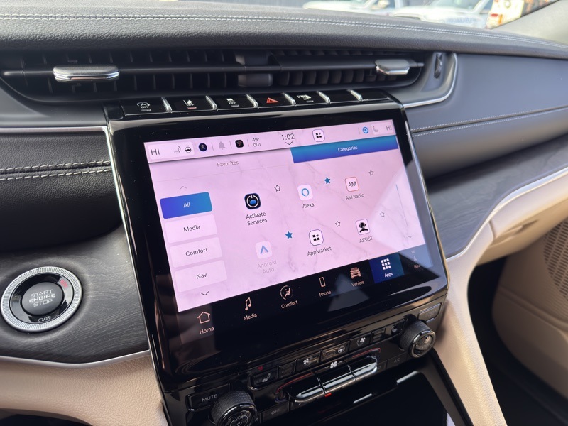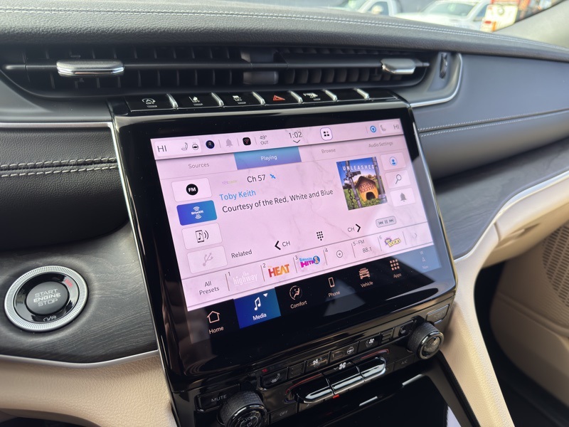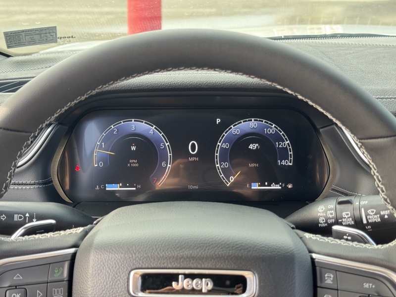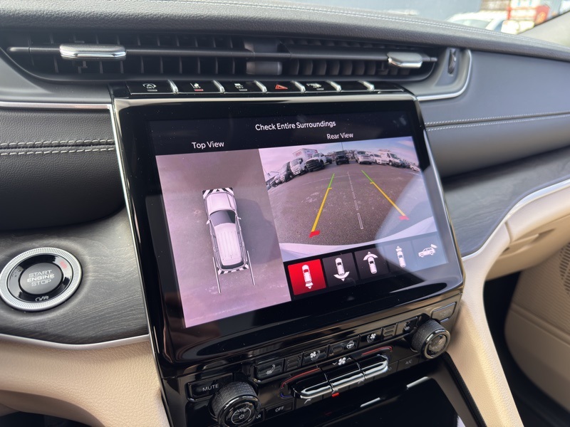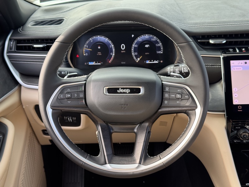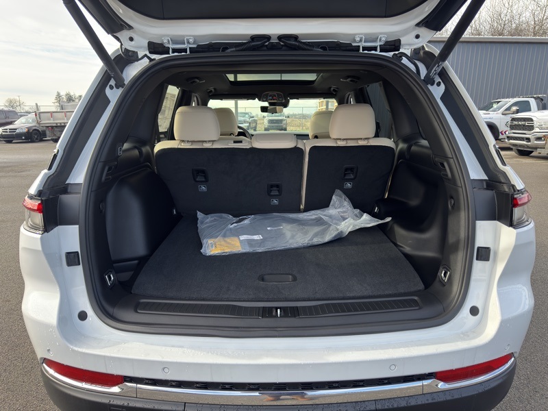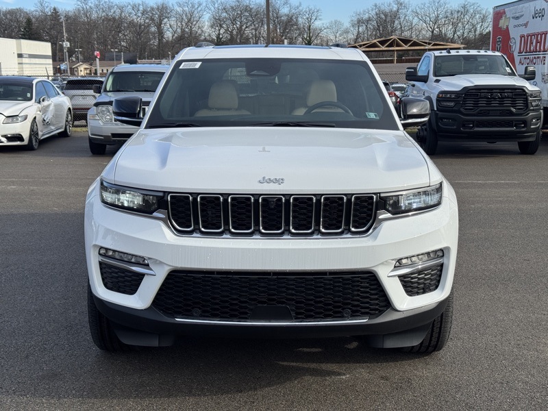 Luxury Tech Group II (2nd-Row Manual Window Shades, Auto-Dimming Exterior Driver Mirror, Capri Leatherette with Axis II Seats, Front/Rear Doors and Liftgate with Passive Entry, Integrated Off-Road Camera, Intersection Collision Assist System, Memory Steering Column, ParkSense Front/Rear Park Assist with Stop, Power Tilt/Telescope Steering Column, Rain Sensitive Windshield Wipers, Rear Back-Up Camera Washer, Rearview Autodim Digital Display Mirror, Surround View Camera System, Ventilated Front Seats, and Wireless Charging Pad), Quick Order Package 23E, 4WD, 4-Wheel Disc Brakes, 6 Speakers, ABS brakes, Active Noise Control System, Air Conditioning, Alloy wheels, AM/FM radio: SiriusXM with 360L, Anti-whiplash front head restraints, Audio memory, Auto High-beam Headlights, Automatic temperature control, Brake assist, Bumpers: body-color, Capri Leatherette Seats, Compass, Delay-off headlights, Driver door bin, Driver vanity mirror, Dual front impact airbags, Dual front side impact airbags, Dual-Pane Panoramic Sunroof, Electronic Stability Control, Emergency communication system, Four wheel independent suspension, Front anti-roll bar, Front Bucket Seats, Front Center Armrest w/Storage, Front dual zone A/C, Front fog lights, Front reading lights, Fully automatic headlights, Garage door transmitter, Heated door mirrors, Heated front seats, Heated rear seats, Heated steering wheel, Illuminated entry, Knee airbag, Low tire pressure warning, Memory seat, Model Year Tracking, Navigation System, Normal Duty Suspension, Occupant sensing airbag, Outside temperature display, Overhead airbag, Overhead console, Panic alarm, ParkView Rear Back-Up Camera, Passenger door bin, Passenger vanity mirror, Power door mirrors, Power driver seat, Power Liftgate, Power passenger seat, Power steering, Power windows, Radio data system, Radio: Uconnect 5 Nav with 10.1" Display, Rear anti-roll bar, Rear reading lights, Rear window defroster, Rear window wiper, Remote keyless entry, Security system, Speed control, Speed-Sensitive Wipers, Split folding rear seat, Spoiler, Steering wheel mounted audio controls, Tachometer, Telescoping steering wheel, Tilt steering wheel, Traction control, Trip computer, Turn signal indicator mirrors, Variably intermittent wipers, Voltmeter, Wheels: 18" x 8" Polished/Painted Aluminum, and Wheels: 20" x 8.5" Machined/Painted Aluminum. 4WD. Bright White Clearcoat 2025 Jeep Grand Cherokee Limited 4WD 8-Speed Automatic 3.6L V6 24V VVT