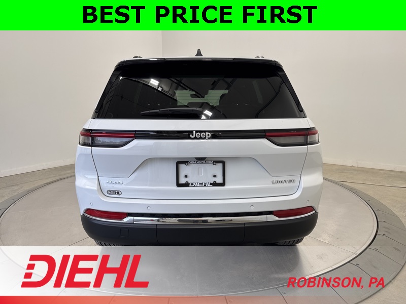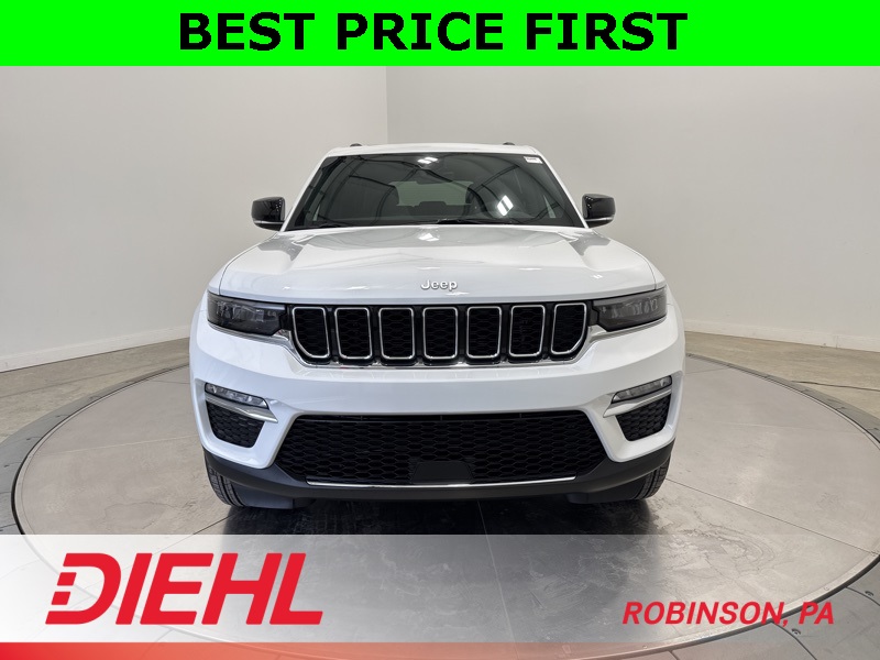 2025 Jeep Grand Cherokee Limited 4x4 – Bright White SUV with Panoramic Roof, Leather, and Heated Seats