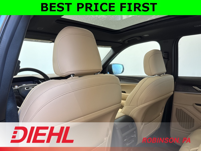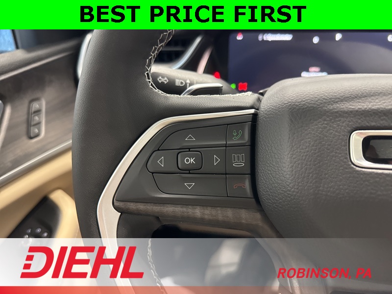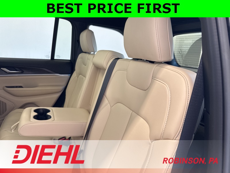 Inside, comfort is front and center with leather-trimmed heated front and second-row seats, a heated steering wheel, dual-zone climate control, and a massive dual-pane panoramic sunroof that makes every drive feel open and bright. The Uconnect 5 system with a 10.1-inch touchscreen brings Apple CarPlay, Android Auto, GPS navigation, SiriusXM, and Jeep Connect to your fingertips, while premium Alpine speakers make every playlist sound like a live show.