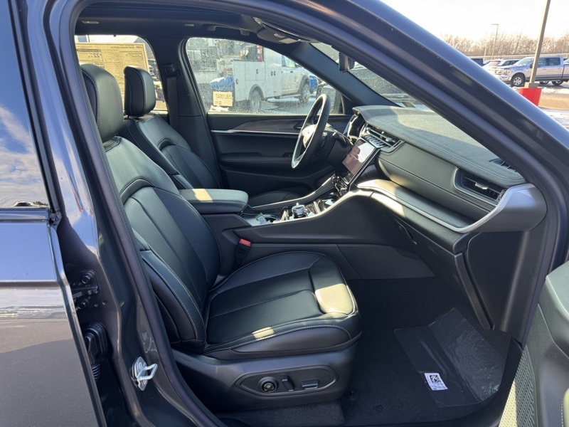 Luxury Tech Group II (2nd-Row Manual Window Shades, Auto-Dimming Exterior Driver Mirror, Integrated Off-Road Camera, Intersection Collision Assist System, Memory Steering Column, Power Tilt/Telescope Steering Column, Rain Sensitive Windshield Wipers, Rear Back-Up Camera Washer, Rearview Autodim Digital Display Mirror, Surround View Camera System, Ventilated Front Seats, and Wireless Charging Pad), Quick Order Package 22E, 4WD, 4-Wheel Disc Brakes, 6 Speakers, ABS brakes, Active Noise Control System, Air Conditioning, Alloy wheels, AM/FM radio: SiriusXM with 360L, Anti-whiplash front head restraints, Audio memory, Auto High-beam Headlights, Automatic temperature control, Brake assist, Bumpers: body-color, Capri Leatherette Seats, Compass, Delay-off headlights, Driver door bin, Driver vanity mirror, Dual front impact airbags, Dual front side impact airbags, Dual-Pane Panoramic Sunroof, Electronic Stability Control, Emergency communication system, Four wheel independent suspension, Front anti-roll bar, Front Bucket Seats, Front Center Armrest w/Storage, Front dual zone A/C, Front fog lights, Front reading lights, Fully automatic headlights, Garage door transmitter, Heated door mirrors, Heated front seats, Heated rear seats, Heated steering wheel, Illuminated entry, Knee airbag, Low tire pressure warning, Memory seat, Model Year Tracking, Navigation System, Normal Duty Suspension, Occupant sensing airbag, Outside temperature display, Overhead airbag, Overhead console, Panic alarm, ParkView Rear Back-Up Camera, Passenger door bin, Passenger vanity mirror, Power door mirrors, Power driver seat, Power Liftgate, Power passenger seat, Power steering, Power windows, Radio data system, Rear anti-roll bar, Rear reading lights, Rear window defroster, Rear window wiper, Remote keyless entry, Security system, Speed control, Speed-Sensitive Wipers, Split folding rear seat, Spoiler, Steering wheel mounted audio controls, Tachometer, Telescoping steering wheel, Tilt steering wheel, Traction control, Trip computer, Turn signal indicator mirrors, Variably intermittent wipers, Voltmeter, Wheels: 18" x 8" Polished/Painted Aluminum, and Wheels: 20" x 8.5" Machined/Painted Aluminum. 4WD. Baltic Gray Metallic Clearcoat 2025 Jeep Grand Cherokee Limited 4WD 8-Speed Automatic 3.6L V6 24V VVT
