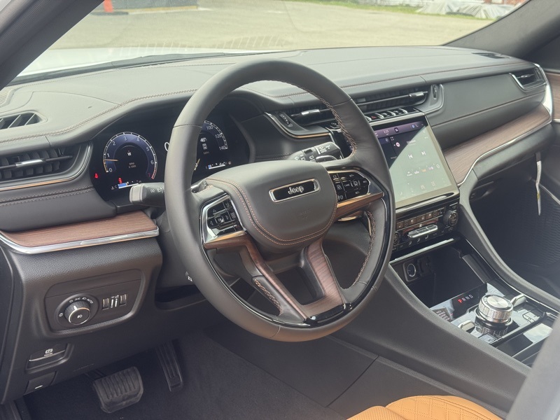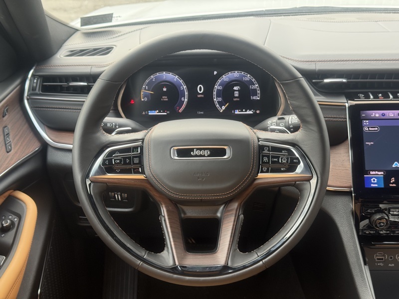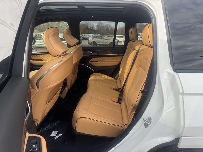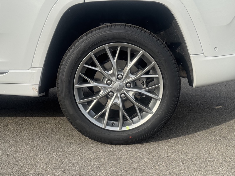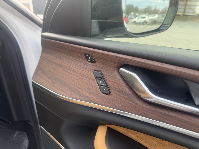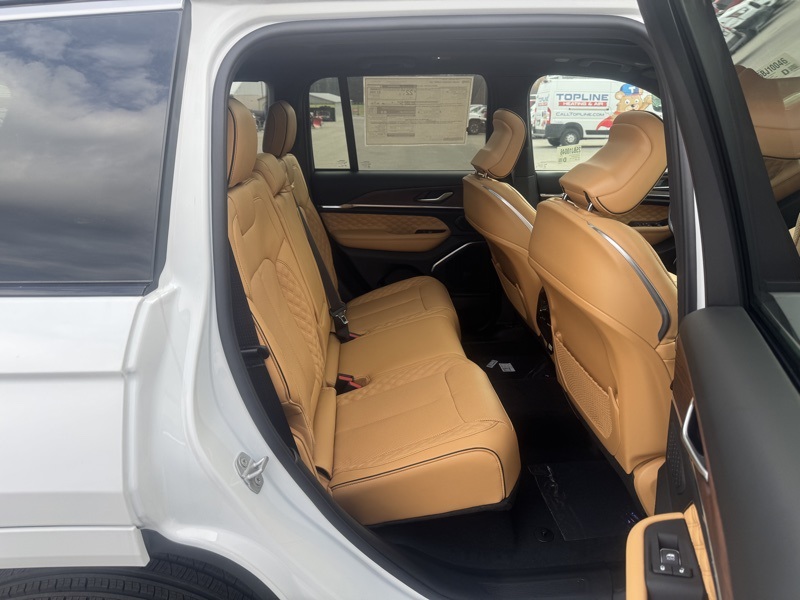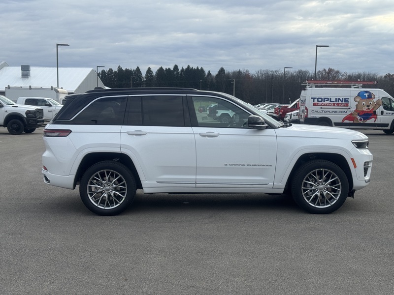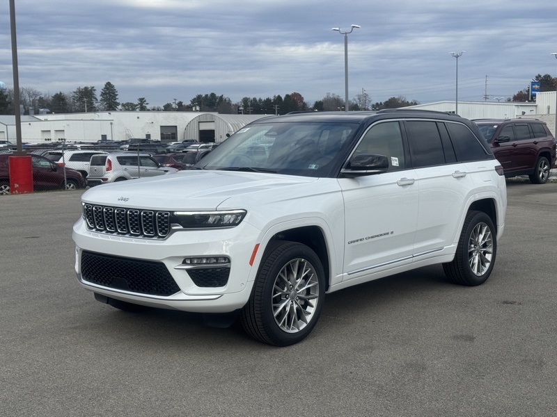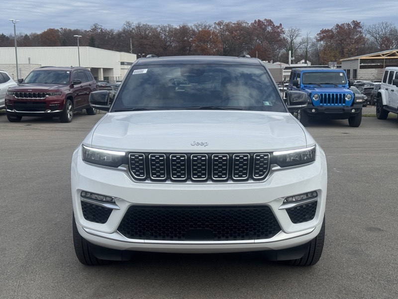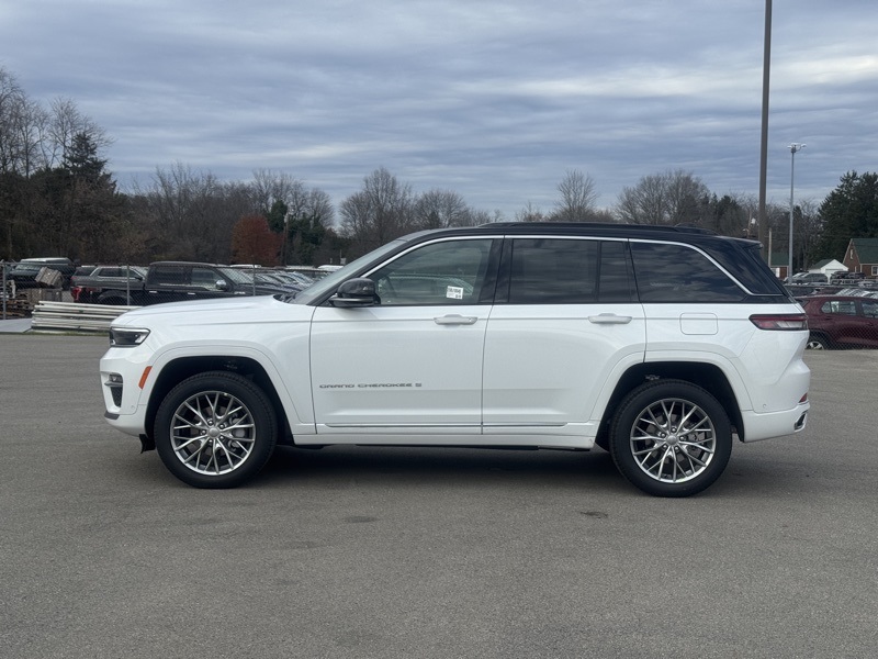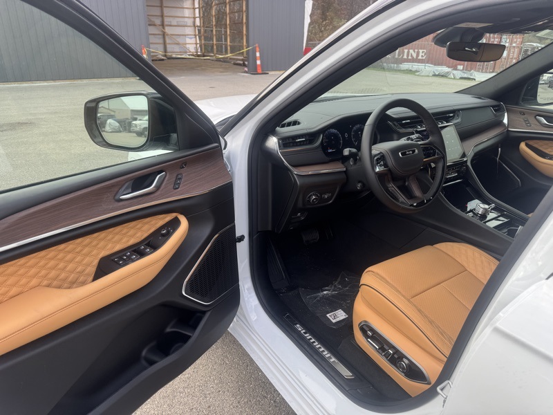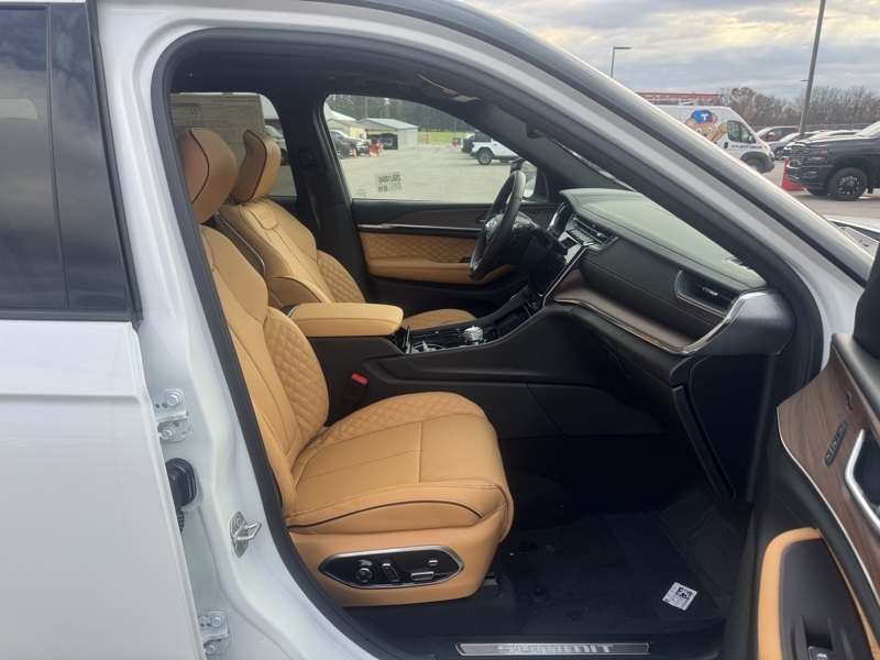 Quick Order Package 23S, 4WD, 10 Speakers, 4-Wheel Disc Brakes, ABS brakes, Active Noise Control System, Adaptive suspension, Air Conditioning, Alloy wheels, AM/FM radio: SiriusXM with 360L, Anti-whiplash front head restraints, Audio memory, Auto High-beam Headlights, Auto-dimming door mirrors, Auto-dimming Rear-View mirror, Auto-leveling suspension, Automatic temperature control, Auxiliary Battery, Brake assist, Bumpers: body-color, Compass, Delay-off headlights, Driver door bin, Driver vanity mirror, Dual front impact airbags, Dual front side impact airbags, Electronic Stability Control, Emergency communication system, Four wheel independent suspension, Front anti-roll bar, Front Bucket Seats, Front Center Armrest w/Storage, Front dual zone A/C, Front fog lights, Front reading lights, Fully automatic headlights, Garage door transmitter, Genuine wood dashboard insert, Genuine wood door panel insert, Heated door mirrors, Heated front seats, Heated rear seats, Heated steering wheel, Illuminated entry, Knee airbag, Leather steering wheel, Low tire pressure warning, Memory seat, Model Year Tracking, Nappa Leather Seats, Navigation System, Normal Duty Suspension, Occupant sensing airbag, Outside temperature display, Overhead airbag, Overhead console, Panic alarm, Passenger door bin, Passenger vanity mirror, Power door mirrors, Power driver seat, Power Liftgate, Power moonroof, Power passenger seat, Power steering, Power windows, Radio data system, Radio: Uconnect 5 Nav w/10.1" Display, Rain sensing wipers, Rear air conditioning, Rear anti-roll bar, Rear dual zone A/C, Rear reading lights, Rear seat center armrest, Rear window defroster, Rear window wiper, Remote keyless entry, Security system, Speed control, Speed-Sensitive Wipers, Split folding rear seat, Spoiler, Steering wheel memory, Steering wheel mounted audio controls, Tachometer, Telescoping steering wheel, Tilt steering wheel, Traction control, Trip computer, Turn signal indicator mirrors, Variably intermittent wipers, Ventilated front seats, Voltmeter, and Wheels: 20" x 8.5" Fully Painted Aluminum Silver. 4WD. Bright White Clearcoat 2025 Jeep Grand Cherokee Summit 4WD 8-Speed Automatic 3.6L V6 24V VVT