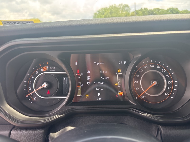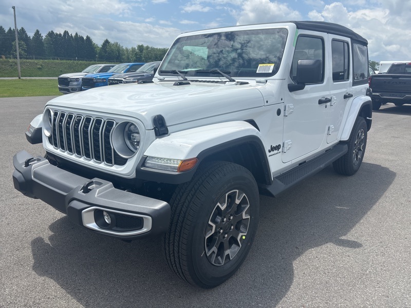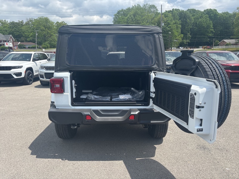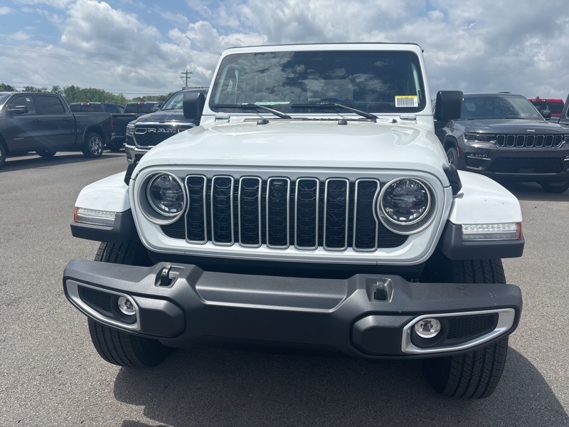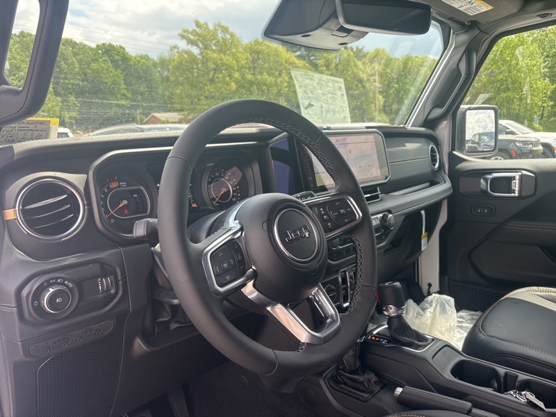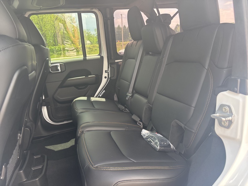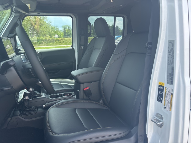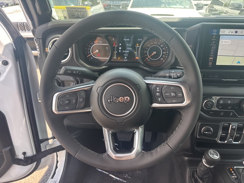 Quick Order Package 22G Sahara, Sahara Popular Equipment Group (#1 Seat Foam Cushion, 12.3" Touchscreen Display, 4G LTE Wi-Fi Hot Spot, Alpine Premium Audio System, Apple CarPlay, Auto High Beam Headlamp Control, Auto-Dimming Rear-View Mirror, Blind Spot & Cross Path Detection, Connected Travel & Traffic Services, Connectivity - US/Canada, Disassociated Touchscreen Display, For More Info, Call 800-643-2112, Google Android Auto, GPS Navigation, Hard Seat Back, HD Radio, Integrated Center Stack Radio, Integrated Off-Road Camera, Integrated Voice Command w/Bluetooth, Leather Wrapped Park Brake Handle, Leather Wrapped Shift Knob, McKinley Trimmed Seats, ParkSense Rear Park Assist System, Power 4-Way Driver Lumbar Adjust, Power 4-Way Passenger Lumbar Adjust, Power Adjust 8-Way Driver Seat, Power Adjust 8-Way Front Passenger Seat, Radio: Uconnect 5 Nav w/12.3" Display, Side Steps, SiriusXM Radio Service, SiriusXM w/360L, and Universal Garage Door Opener), 110 MPH Vehicle Max Speed Calibration, 3.45 Overall Top Gear Ratio, 4-Wheel Disc Brakes, 8 Speakers, ABS brakes, Air Conditioning, Alloy wheels, AM/FM radio: SiriusXM, Apple CarPlay/Android Auto, Automatic temperature control, Aux Battery, Brake assist, Cloth Low-Back Bucket Seats, Compass, Delay-off headlights, Driver door bin, Driver vanity mirror, Dual front impact airbags, Dual front side impact airbags, Electronic Stability Control, Emergency communication system: Jeep Connect, Front anti-roll bar, Front Bucket Seats, Front Center Armrest w/Storage, Front dual zone A/C, Front fog lights, Front reading lights, Fully automatic headlights, Heated door mirrors, Heated front seats, Heated steering wheel, Heavy Duty Suspension w/Gas Shocks, Illuminated entry, Integrated roll-over protection, Low tire pressure warning, MOPAR All-Weather Floor Mats, Non-Lock Fuel Cap w/o Discriminator, Occupant sensing airbag, Outside temperature display, Overhead airbag, Panic alarm, ParkView Rear Back-Up Camera, Passenger door bin, Passenger vanity mirror, Power door mirrors, Power steering, Power windows, Radio data system, Radio: Uconnect 5 w/12.3" Display, Rear anti-roll bar, Rear reading lights, Remote keyless entry, Security system, Speed control, Split folding rear seat, Steering wheel mounted audio controls, Stop-Start Dual Battery System, Tachometer, Telescoping steering wheel, Tilt steering wheel, Traction control, Trip computer, Variably intermittent wipers, Voltmeter, Wheels: 18" x 7.5 Machine/Painted Gray, and Wheels: 18" x 7.5" Machine/Painted Gray. Bright White Clearcoat 2025 Jeep Wrangler Sahara 4WD 8-Speed Automatic 2.0L I4 DOHC