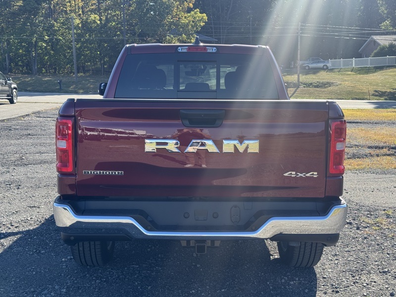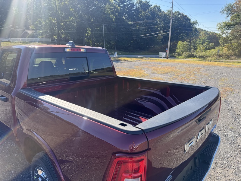 Big Horn Level 1 Equipment Group (115V Auxiliary Power Outlet, 2nd Row In Floor Storage Bins, 400W Inverter, Auto Power-Folding Mirrors, Auto-Dimming Exterior Driver Mirror, Auto-Dimming Rear-View Mirror, Black Exterior Mirrors, Black Premium Power Mirrors, Convex Wide-Angle Exterior Mirror Insert, Exterior Mirrors Courtesy Lamps, Exterior Mirrors w/Heating Element, Exterior Mirrors w/Supplemental Signals, Glove Box Lamp, Heated Front Seats, Heated Steering Wheel, Leather Wrapped Steering Wheel, Power 2-Way Driver Lumbar Adjust, Power Adjust 8-Way Driver Seat, Power Adjustable Pedals, Rear Power Sliding Window, Rear Window Defroster, Steering Wheel Mounted Audio Controls, Sun Visors w/Illuminated Vanity Mirrors, and Universal Garage Door Opener), Quick Order Package 23Z Big Horn (Big Horn Badge), 3 Rear Seat Head Restraints, 4 Way Front Headrests, 4-Wheel Disc Brakes, 4G LTE Wi-Fi Hot Spot, 6 Speakers, ABS brakes, Air Conditioning, Alloy wheels, AM/FM radio, Apple CarPlay/Android Auto, Auto High-beam Headlights, Brake assist, Bumpers: chrome, Cloth Bench Seat, Compass, Connectivity - US/Canada, Delay-off headlights, Driver door bin, Dual front impact airbags, Dual front side impact airbags, Electronic Stability Control, Front anti-roll bar, Front Center Armrest w/Storage, Front fog lights, Front reading lights, Front Seat Back Map Pockets, Front wheel independent suspension, Fully automatic headlights, GPS Antenna Input, Heated door mirrors, Illuminated entry, Integrated Voice Command w/Bluetooth, Low tire pressure warning, Manual Adjust 4-Way Front Passenger Seat, Manual Folding Exterior Mirrors, MOPAR Front & Rear Rubber Floor Mats, Occupant sensing airbag, Outside temperature display, Overhead airbag, Overhead console, Panic alarm, ParkView Rear Back-Up Camera, Passenger door bin, Passenger vanity mirror, Power door mirrors, Power steering, Power windows, Radio data system, Radio: Uconnect 5 W w/8.4" Display, RAM Grille Badge - Chrome, Rear 60/40 Folding Seat, Rear anti-roll bar, Rear seat center armrest, Rear step bumper, Remote keyless entry, Speed control, Split folding rear seat, Supplier Part Tracking (J-1), Tachometer, Telescoping steering wheel, Tilt steering wheel, Traction control, Trip computer, USB Host Flip, Variably intermittent wipers, Voltmeter, Wheels: 18" x 8" Cast-Aluminum Painted, and Wheels: 20" x 9" Aluminum Chrome Clad (WRK) Delmonico Red Pearlcoat 2025 Ram 1500 Big Horn/Lone Star 4WD 8-Speed Automatic 3.6L V6 24V VVT