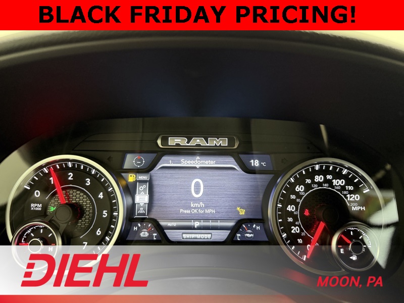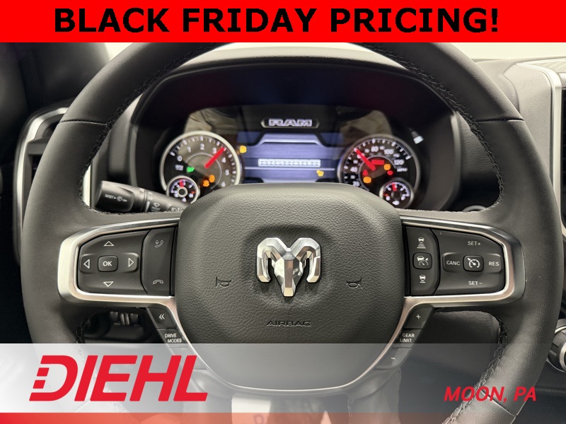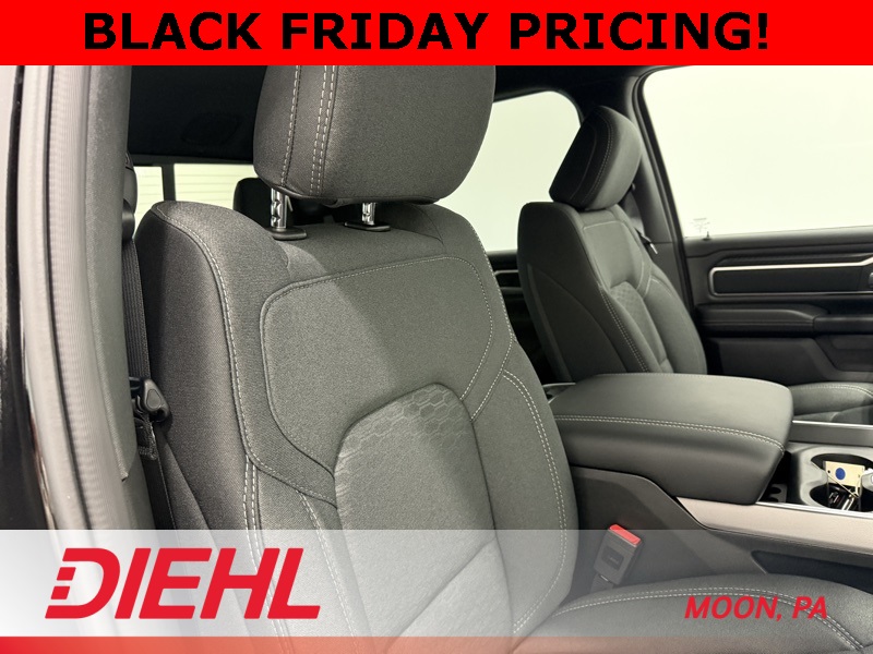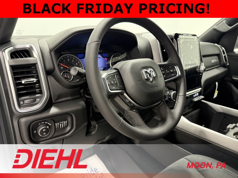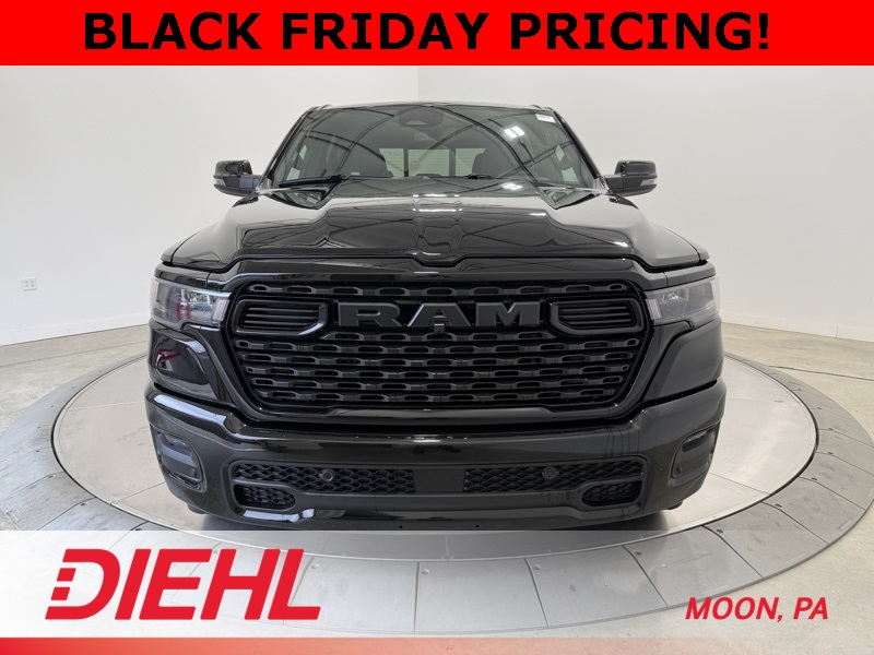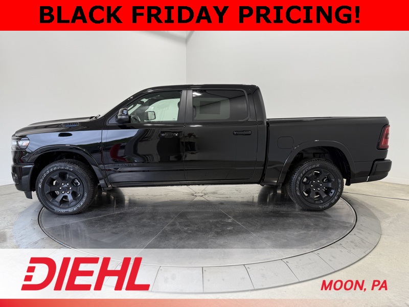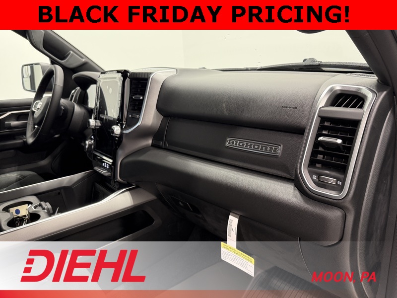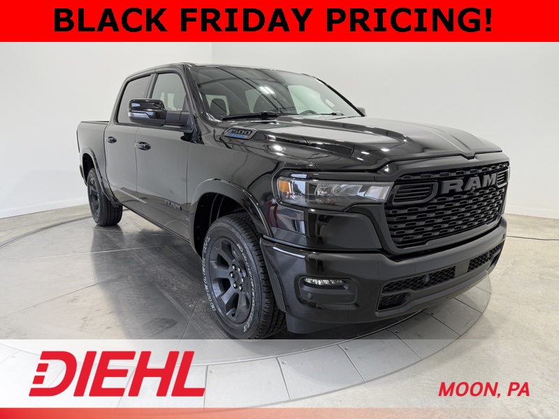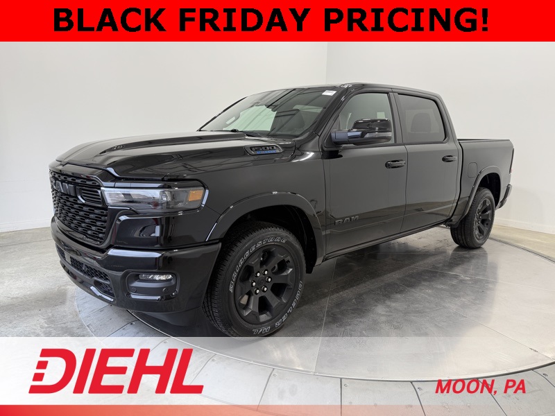 The 2025 Ram 1500 Big Horn Crew Cab 4x4 is what happens when brains, brawn, and blue-collar swagger all share a garage. Under the hood sits the legendary 5.7L HEMI V8 with eTorque, paired with an 8-speed automatic that shifts smoother than your best pickup line. Whether youre hauling a trailer, tackling a Pittsburgh winter, or just hauling home bragging rights, this truck does it all with ease. Inside, its all business with comfortpremium cloth seats, a massive 12-inch Uconnect touchscreen with Apple CarPlay and Android Auto, and enough USB ports to charge every device in the house. The spacious crew cab turns workdays into road trips with rear seats that actually fit adults, not just excuses. Outside, 18-inch aluminum wheels, chrome accents, and LED bed lighting make it look as good as it works. Safety tech like adaptive cruise control, blind spot monitoring, and lane assist keep it solid on the road while you keep your hands on the wheel and eyes on the prize. If youre searching for the best new truck deals near Moon Township PA or want a new Ram 1500 for sale in Pittsburgh, this Big Horn delivers the perfect mix of muscle, tech, and everyday usability. Stop by Diehl of Moon today and find out why Ram trucks run Western PA. Price includes: $2000 - 2025 National SFS Lease Loyalty Bonus Cash. Exp. 01/05/2026 $500 - 2025 National 2025 First Responder Bonus Cash. Exp. 01/05/2026 10% Msrp - 2025 National 10% Below MSRP . Exp. 01/05/2026