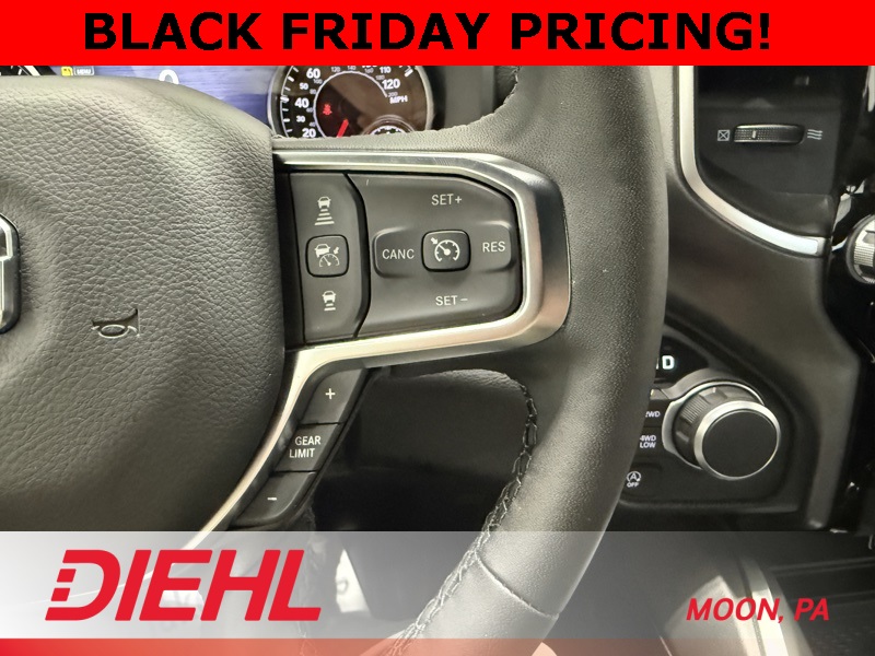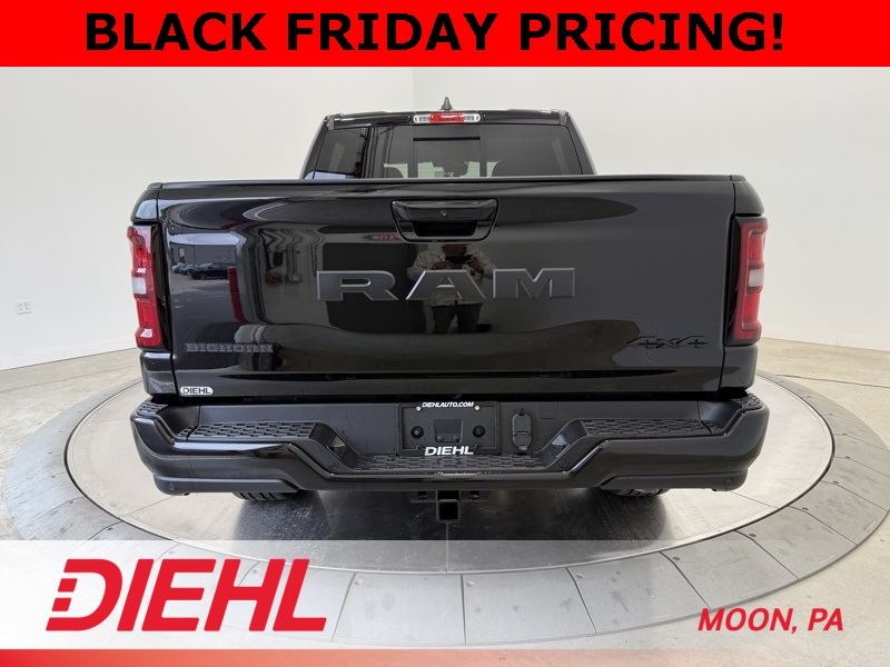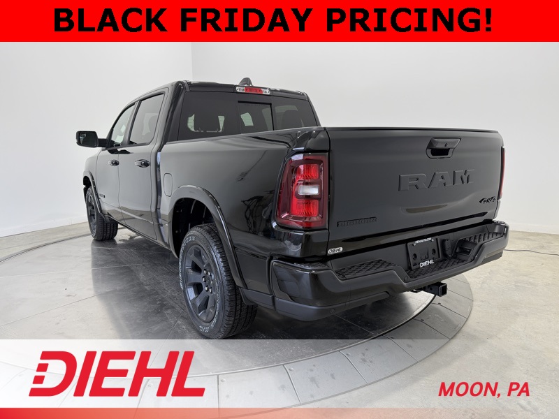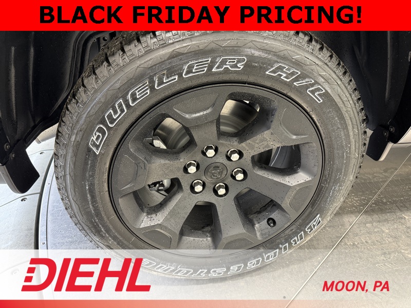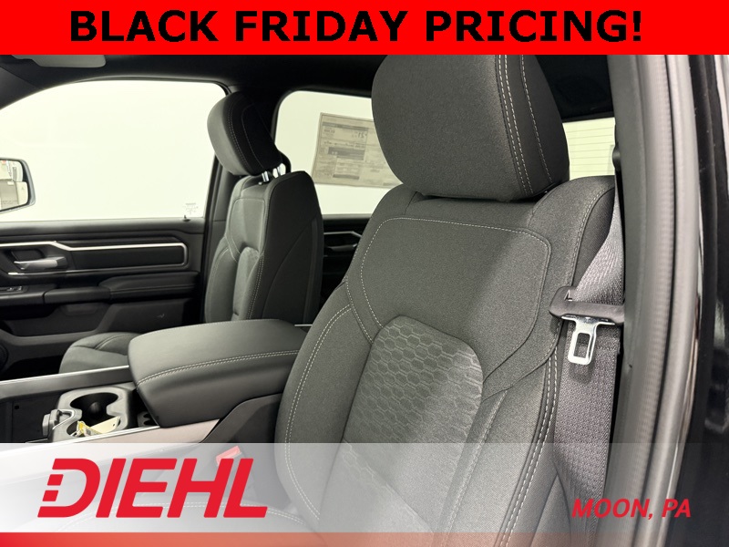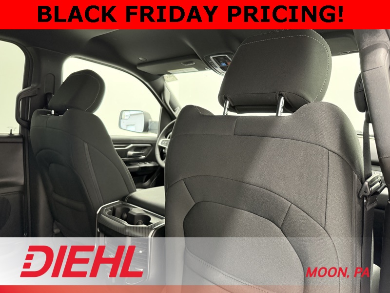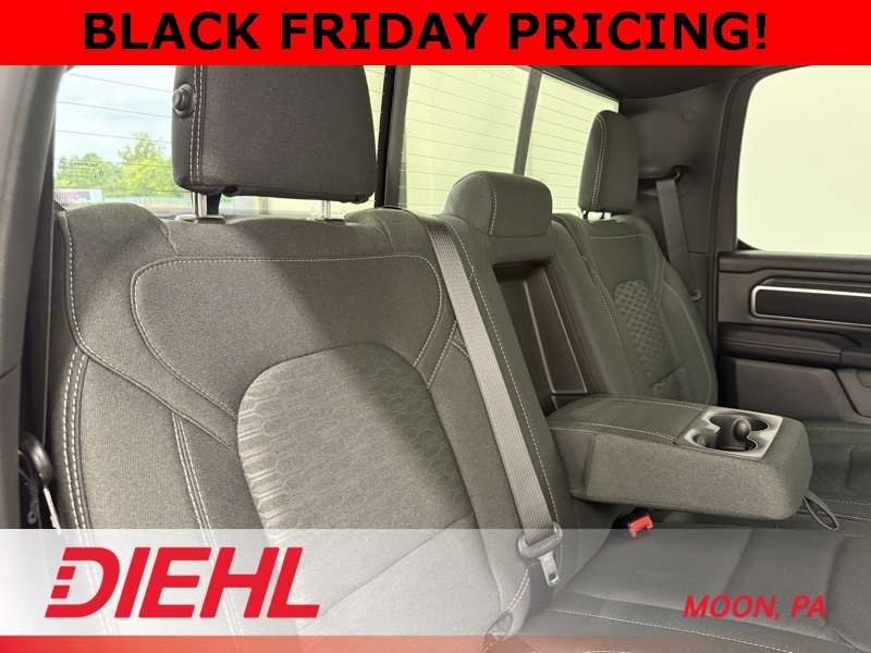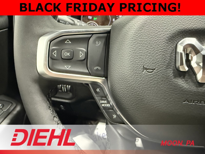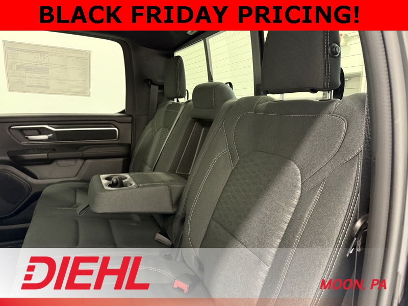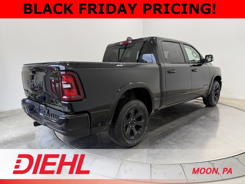 The 2025 Ram 1500 Big Horn Crew Cab 4x4 is what happens when brains, brawn, and blue-collar swagger all share a garage. Under the hood sits the legendary 5.7L HEMI V8 with eTorque, paired with an 8-speed automatic that shifts smoother than your best pickup line. Whether youre hauling a trailer, tackling a Pittsburgh winter, or just hauling home bragging rights, this truck does it all with ease. Inside, its all business with comfortpremium cloth seats, a massive 12-inch Uconnect touchscreen with Apple CarPlay and Android Auto, and enough USB ports to charge every device in the house. The spacious crew cab turns workdays into road trips with rear seats that actually fit adults, not just excuses. Outside, 18-inch aluminum wheels, chrome accents, and LED bed lighting make it look as good as it works. Safety tech like adaptive cruise control, blind spot monitoring, and lane assist keep it solid on the road while you keep your hands on the wheel and eyes on the prize. If youre searching for the best new truck deals near Moon Township PA or want a new Ram 1500 for sale in Pittsburgh, this Big Horn delivers the perfect mix of muscle, tech, and everyday usability. Stop by Diehl of Moon today and find out why Ram trucks run Western PA. Price includes: $2000 - 2025 National SFS Lease Loyalty Bonus Cash. Exp. 01/05/2026 $500 - 2025 National 2025 First Responder Bonus Cash. Exp. 01/05/2026 10% Msrp - 2025 National 10% Below MSRP . Exp. 01/05/2026