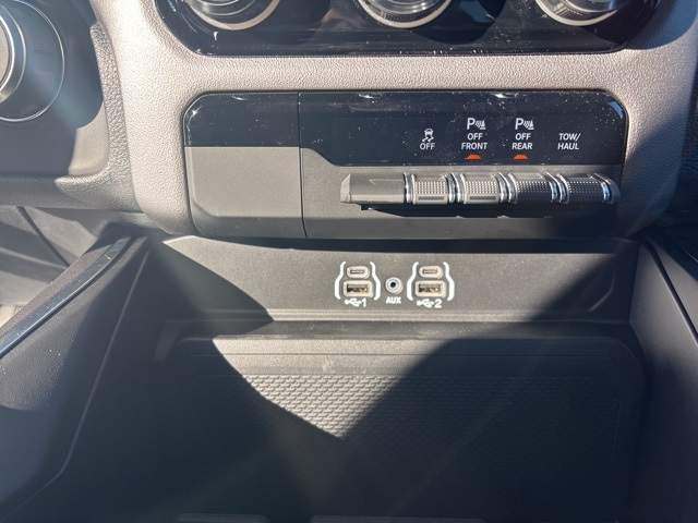 Quick Order Package 23Z Big Horn (Big Horn Badge), 3 Rear Seat Head Restraints, 4 Way Front Headrests, 4-Wheel Disc Brakes, 4G LTE Wi-Fi Hot Spot, 6 Speakers, ABS brakes, Air Conditioning, Alloy wheels, AM/FM radio, Apple CarPlay/Android Auto, Auto High-beam Headlights, Black Exterior Mirrors, Brake assist, Bumpers: chrome, Cloth Bench Seat, Compass, Connectivity - US/Canada, Convex Wide-Angle Exterior Mirror Insert, Delay-off headlights, Driver door bin, Dual front impact airbags, Dual front side impact airbags, Electronic Stability Control, Exterior Mirrors w/Heating Element, Front anti-roll bar, Front Center Armrest w/Storage, Front fog lights, Front reading lights, Front Seat Back Map Pockets, Front wheel independent suspension, Fully automatic headlights, GPS Antenna Input, Heated door mirrors, Illuminated entry, Integrated Voice Command w/Bluetooth, Low tire pressure warning, Manual Adjust 4-Way Front Passenger Seat, Manual Folding Exterior Mirrors, MOPAR Front & Rear Rubber Floor Mats, Occupant sensing airbag, Outside temperature display, Overhead airbag, Overhead console, Panic alarm, ParkView Rear Back-Up Camera, Passenger door bin, Passenger vanity mirror, Power door mirrors, Power steering, Power windows, Radio data system, Radio: Uconnect 5 W w/8.4" Display, RAM Grille Badge - Chrome, Rear 60/40 Folding Seat, Rear anti-roll bar, Rear seat center armrest, Rear step bumper, Remote keyless entry, Speed control, Split folding rear seat, Supplier Part Tracking (J-1), Tachometer, Telescoping steering wheel, Tilt steering wheel, Traction control, Trip computer, USB Host Flip, Variably intermittent wipers, Voltmeter, and Wheels: 18" x 8" Cast-Aluminum Painted. Granite Crystal Metallic Clearcoat 2025 Ram 1500 Big Horn/Lone Star 4WD 8-Speed Automatic 3.6L V6 24V VVT