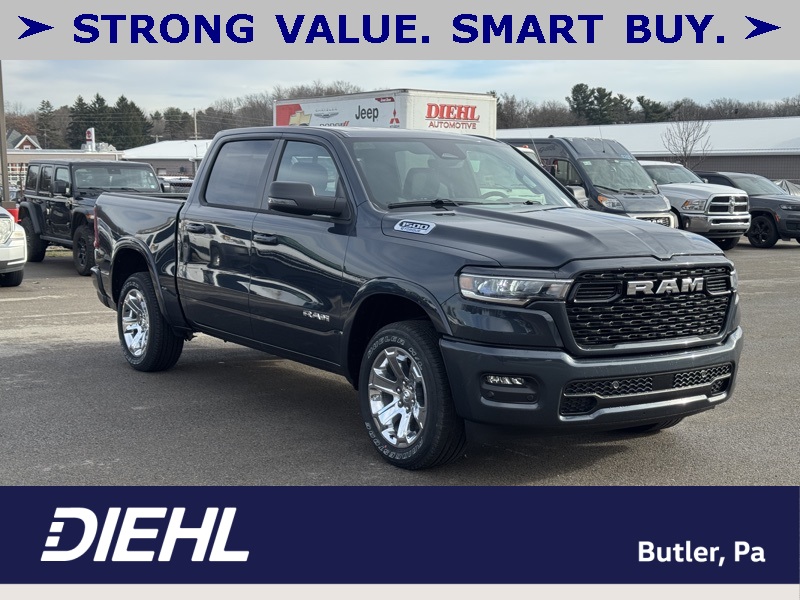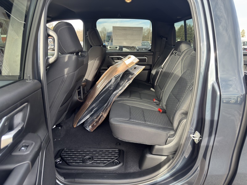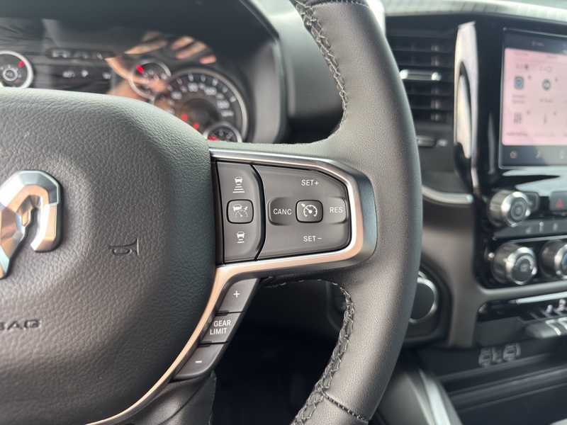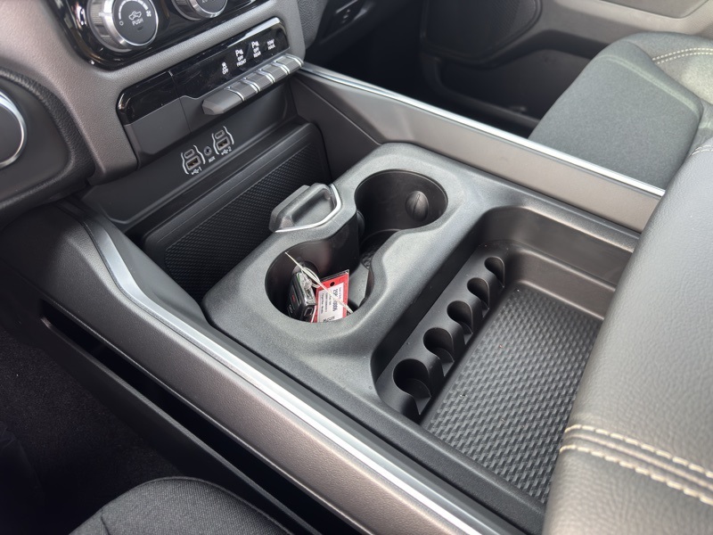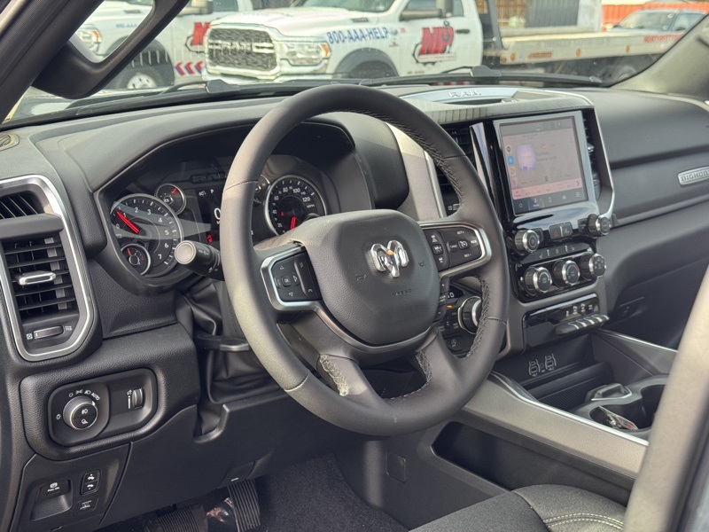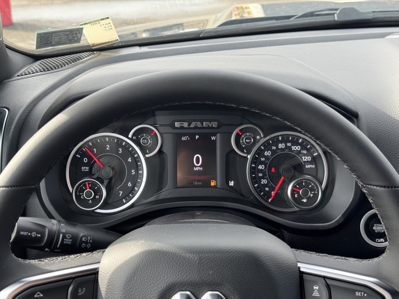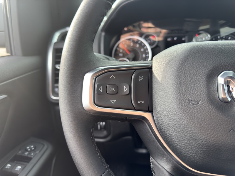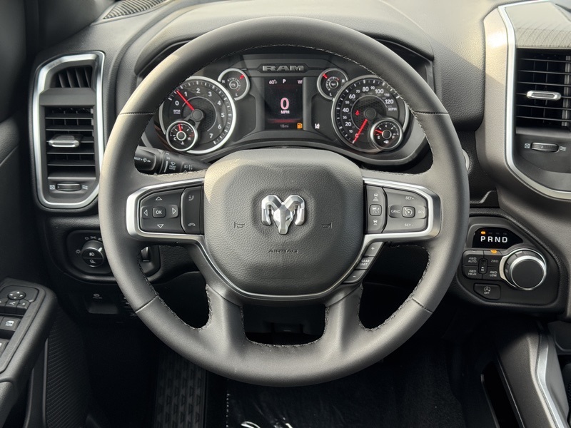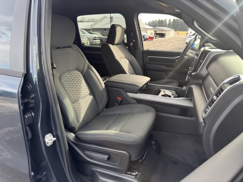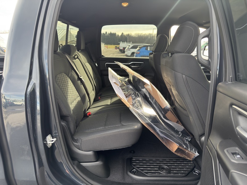Bed Utility Group (Exterior 115V AC Outlet, MOPAR 4 Adjustable Cargo Tie-Down Hooks, MOPAR Spray In Bedliner, and Pick-Up Box Lighting), Big Horn Level 1 Equipment Group (115V Auxiliary Power Outlet, 2nd Row In Floor Storage Bins, 400W Inverter, Auto Power-Folding Mirrors, Auto-Dimming Exterior Driver Mirror, Auto-Dimming Rear-View Mirror, Black Exterior Mirrors, Black Premium Power Mirrors, Convex Wide-Angle Exterior Mirror Insert, Exterior Mirrors Courtesy Lamps, Exterior Mirrors w/Heating Element, Exterior Mirrors w/Supplemental Signals, Glove Box Lamp, Heated Front Seats, Heated Steering Wheel, Leather Wrapped Steering Wheel, Power 2-Way Driver Lumbar Adjust, Power Adjust 8-Way Driver Seat, Power Adjustable Pedals, Rear Power Sliding Window, Rear Window Defroster, Steering Wheel Mounted Audio Controls, Sun Visors w/Illuminated Vanity Mirrors, and Universal Garage Door Opener), Quick Order Package 23Z Big Horn (Big Horn Badge), Sport Appearance Package (3 Rear Seat Head Restraints, 4 Way Front Headrests, Black Interior Accents, Body Color Door Handles, Body Color Front Bumper, Body Color Rear Bumper w/Step Pads, Body Color Tailgate Handle, Bucket Seats, Deluxe Cloth Bucket Seats, Front Seat Back Map Pockets, Full Length Floor Console, Grille Surround 1 Body Color Texture 1 Black, Manual Adjust 4-Way Front Passenger Seat, RAM Grille Badge - Chrome, Rear 60/40 Folding Seat, and Rear Center Armrest), 4-Wheel Disc Brakes, 4G LTE Wi-Fi Hot Spot, 6 Speakers, ABS brakes, Air Conditioning, Alloy wheels, AM/FM radio, Apple CarPlay/Android Auto, Auto High-beam Headlights, Brake assist, Bumpers: chrome, Cloth Bench Seat, Compass, Connectivity - US/Canada, Delay-off headlights, Driver door bin, Dual front impact airbags, Dual front side impact airbags, Electronic Stability Control, Front anti-roll bar, Front Center Armrest w/Storage, Front fog lights, Front reading lights, Front wheel independent suspension, Fully automatic headlights, GPS Antenna Input, Heated door mirrors, Illuminated entry, Integrated Voice Command w/Bluetooth, Low tire pressure warning, Manual Folding Exterior Mirrors, MOPAR Front & Rear Rubber Floor Mats, Occupant sensing airbag, Outside temperature display, Overhead airbag, Overhead console, Panic alarm, ParkView Rear Back-Up Camera, Passenger door bin, Passenger vanity mirror, Power door mirrors, Power steering, Power windows, Radio data system, Radio: Uconnect 5 W w/8.4" Display, Rear anti-roll bar, Rear seat center armrest, Rear step bumper, Remote keyless entry, Speed control, Split folding rear seat, Supplier Part Tracking (J-1), Tachometer, Telescoping steering wheel, Tilt steering wheel, Traction control, Trip computer, USB Host Flip, Variably intermittent wipers, Voltmeter, Wheels: 18" x 8" Cast-Aluminum Painted, and Wheels: 20" x 9" Aluminum Chrome Clad. Forged Blue Metallic 2025 Ram 1500 Big Horn/Lone Star 4WD 8-Speed Automatic 3.6L V6 24V VVT
