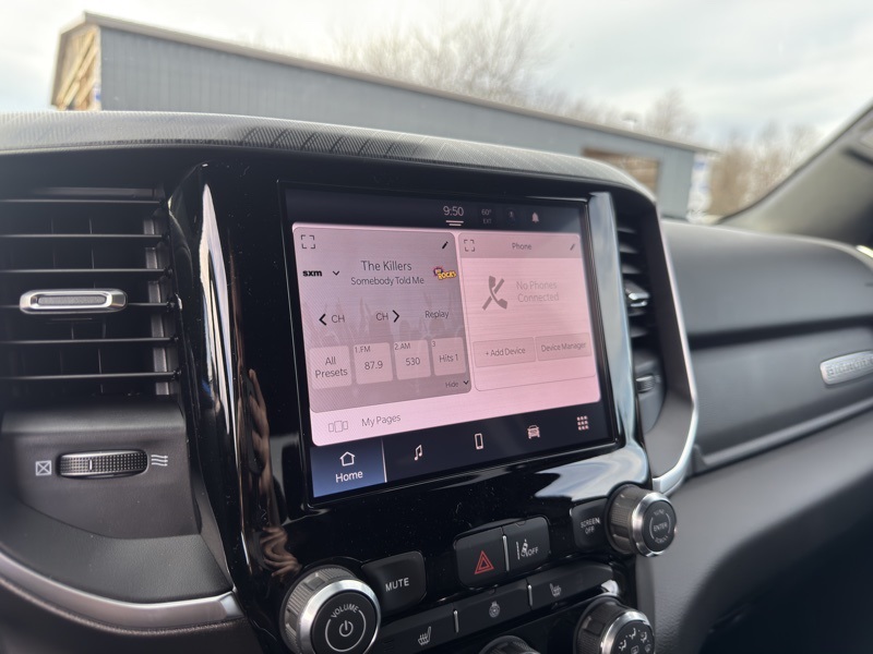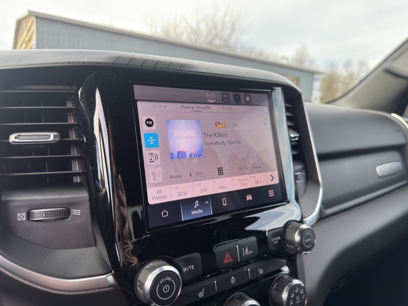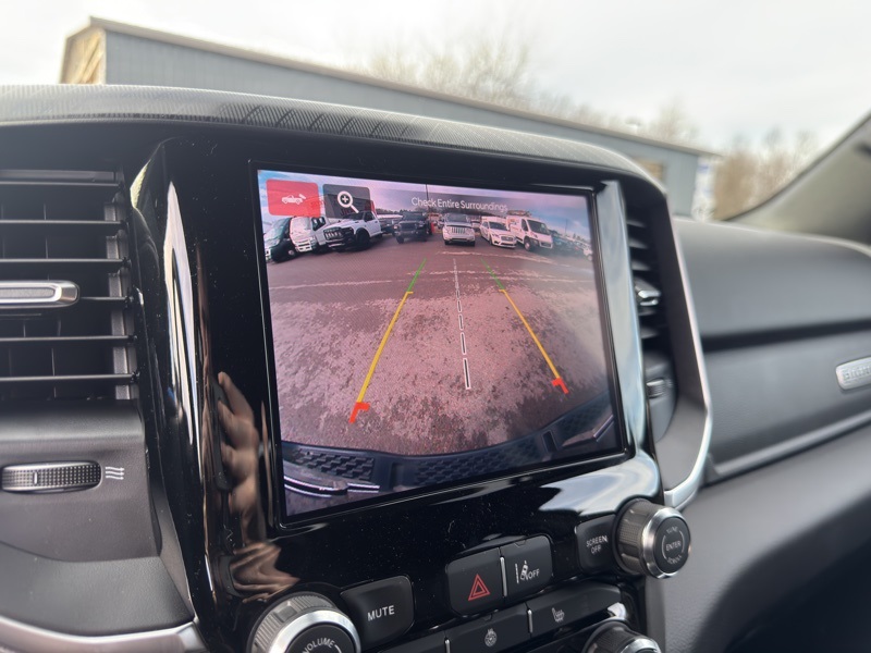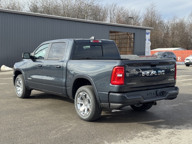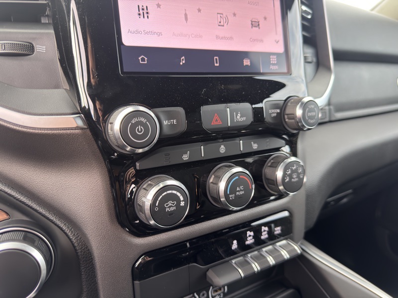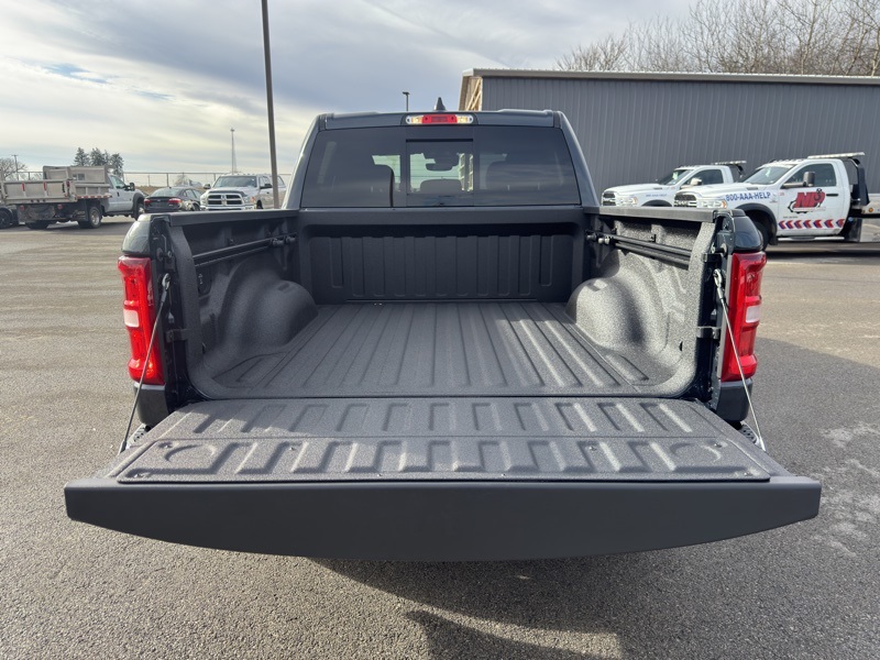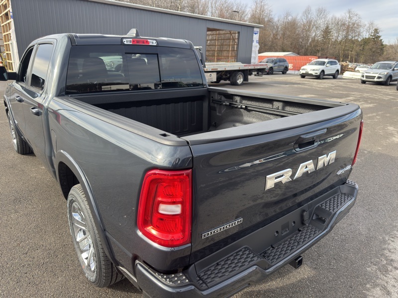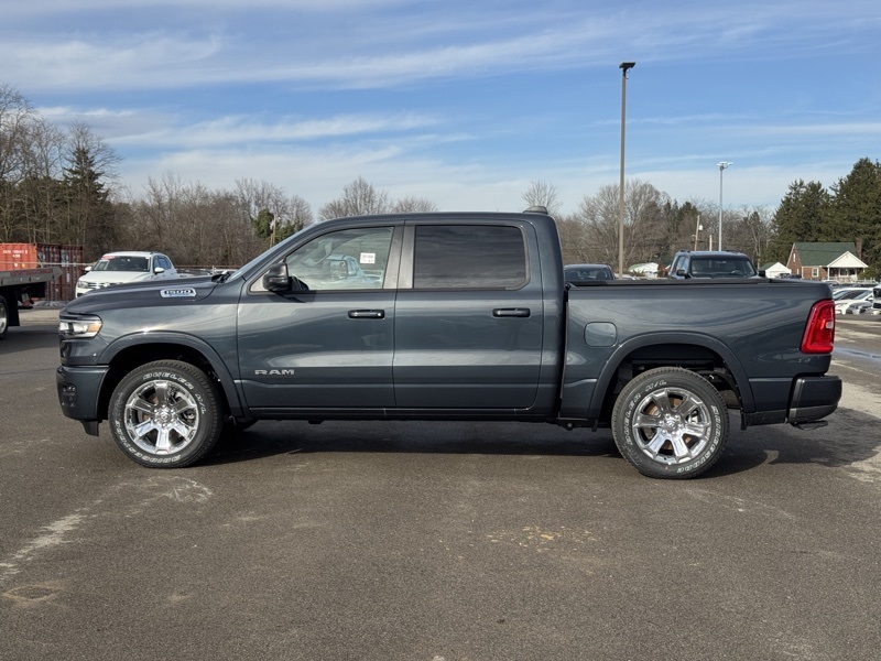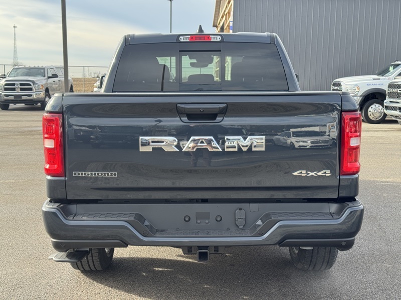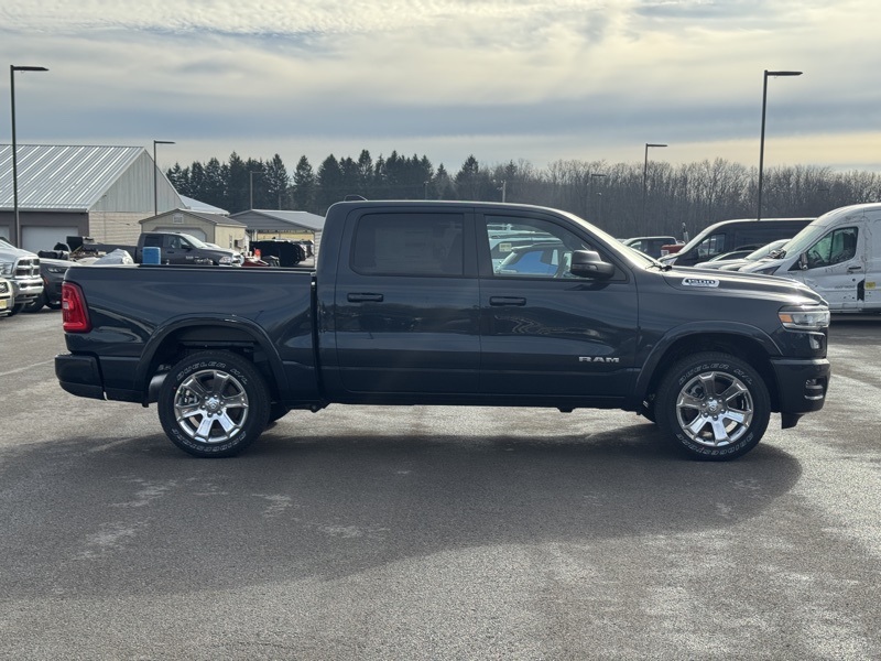 Bed Utility Group (Exterior 115V AC Outlet, MOPAR 4 Adjustable Cargo Tie-Down Hooks, MOPAR Spray In Bedliner, and Pick-Up Box Lighting), Big Horn Level 1 Equipment Group (115V Auxiliary Power Outlet, 2nd Row In Floor Storage Bins, 400W Inverter, Auto Power-Folding Mirrors, Auto-Dimming Exterior Driver Mirror, Auto-Dimming Rear-View Mirror, Black Exterior Mirrors, Black Premium Power Mirrors, Convex Wide-Angle Exterior Mirror Insert, Exterior Mirrors Courtesy Lamps, Exterior Mirrors w/Heating Element, Exterior Mirrors w/Supplemental Signals, Glove Box Lamp, Heated Front Seats, Heated Steering Wheel, Leather Wrapped Steering Wheel, Power 2-Way Driver Lumbar Adjust, Power Adjust 8-Way Driver Seat, Power Adjustable Pedals, Rear Power Sliding Window, Rear Window Defroster, Steering Wheel Mounted Audio Controls, Sun Visors w/Illuminated Vanity Mirrors, and Universal Garage Door Opener), Quick Order Package 23Z Big Horn (Big Horn Badge), Sport Appearance Package (3 Rear Seat Head Restraints, 4 Way Front Headrests, Black Interior Accents, Body Color Door Handles, Body Color Front Bumper, Body Color Rear Bumper w/Step Pads, Body Color Tailgate Handle, Bucket Seats, Deluxe Cloth Bucket Seats, Front Seat Back Map Pockets, Full Length Floor Console, Grille Surround 1 Body Color Texture 1 Black, Manual Adjust 4-Way Front Passenger Seat, RAM Grille Badge - Chrome, Rear 60/40 Folding Seat, and Rear Center Armrest), 4-Wheel Disc Brakes, 4G LTE Wi-Fi Hot Spot, 6 Speakers, ABS brakes, Air Conditioning, Alloy wheels, AM/FM radio, Apple CarPlay/Android Auto, Auto High-beam Headlights, Brake assist, Bumpers: chrome, Cloth Bench Seat, Compass, Connectivity - US/Canada, Delay-off headlights, Driver door bin, Dual front impact airbags, Dual front side impact airbags, Electronic Stability Control, Front anti-roll bar, Front Center Armrest w/Storage, Front fog lights, Front reading lights, Front wheel independent suspension, Fully automatic headlights, GPS Antenna Input, Heated door mirrors, Illuminated entry, Integrated Voice Command w/Bluetooth, Low tire pressure warning, Manual Folding Exterior Mirrors, MOPAR Front & Rear Rubber Floor Mats, Occupant sensing airbag, Outside temperature display, Overhead airbag, Overhead console, Panic alarm, ParkView Rear Back-Up Camera, Passenger door bin, Passenger vanity mirror, Power door mirrors, Power steering, Power windows, Radio data system, Radio: Uconnect 5 W w/8.4" Display, Rear anti-roll bar, Rear seat center armrest, Rear step bumper, Remote keyless entry, Speed control, Split folding rear seat, Supplier Part Tracking (J-1), Tachometer, Telescoping steering wheel, Tilt steering wheel, Traction control, Trip computer, USB Host Flip, Variably intermittent wipers, Voltmeter, Wheels: 18" x 8" Cast-Aluminum Painted, and Wheels: 20" x 9" Aluminum Chrome Clad. Forged Blue Metallic 2025 Ram 1500 Big Horn/Lone Star 4WD 8-Speed Automatic 3.6L V6 24V VVT