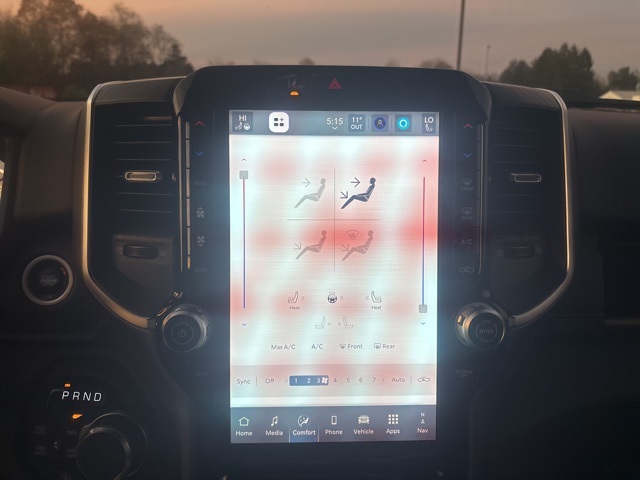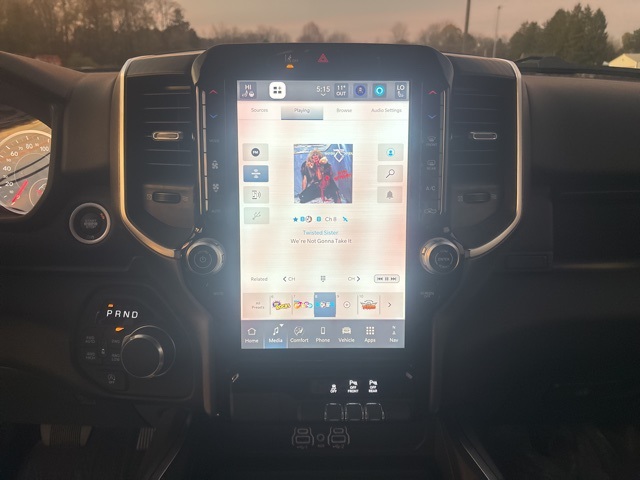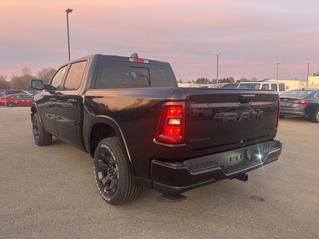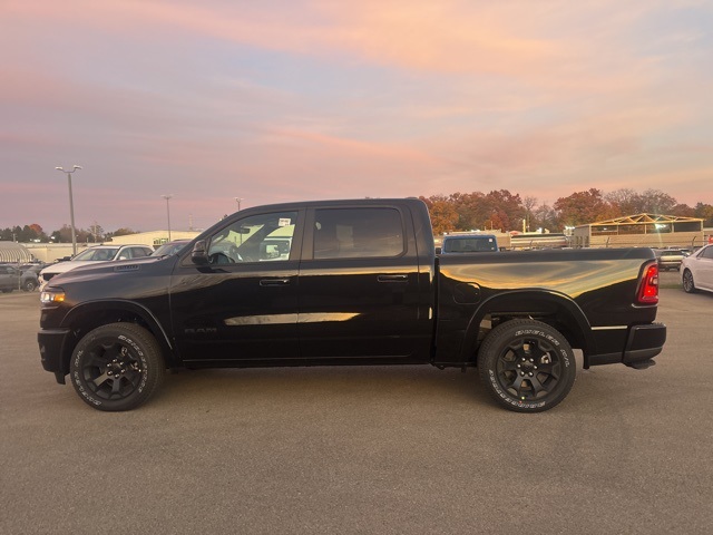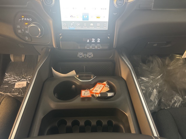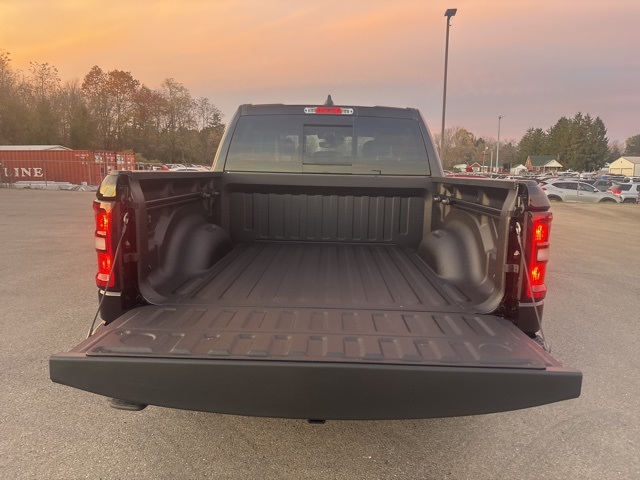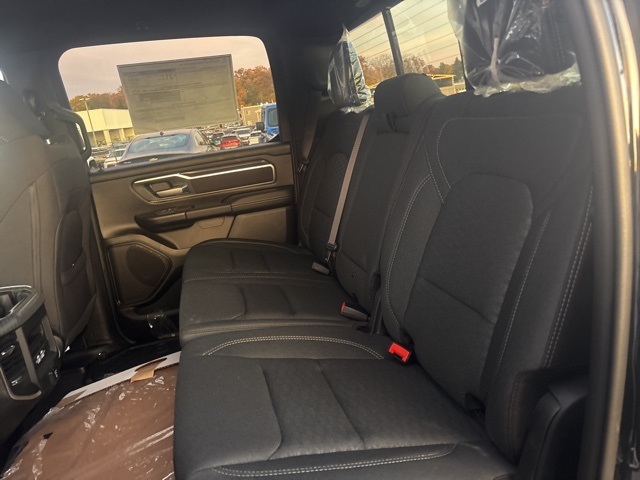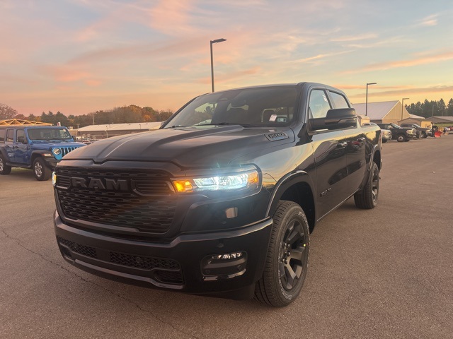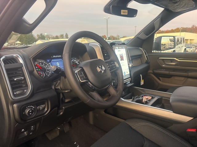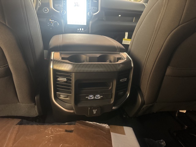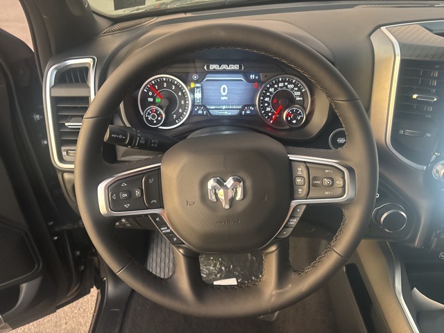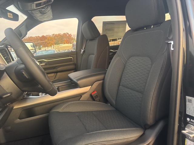 Bed Utility Group (Exterior 115V AC Outlet, MOPAR 4 Adjustable Cargo Tie-Down Hooks, MOPAR Spray In Bedliner, and Pick-Up Box Lighting), Big Horn Level 2 Equipment Group (115V Auxiliary Power Outlet, 115V Auxiliary Rear Power Outlet, 12" Touchscreen Display, 2nd Row In Floor Storage Bins, 400W Inverter, 4G LTE Wi-Fi Hot Spot, 9 Amplified Speakers w/Subwoofer, Air Conditioning ATC w/Dual Zone Control, Apple CarPlay, Auto Power-Folding Mirrors, Auto-Dimming Exterior Driver Mirror, Auto-Dimming Rear-View Mirror, Black Exterior Mirrors, Black Premium Power Mirrors, Cluster 7.0" TFT Color Display, Configurable Drive Mode, Connected Travel & Traffic Services, Connectivity - US/Canada, Convex Wide-Angle Exterior Mirror Insert, Exterior Mirrors Courtesy Lamps, Exterior Mirrors w/Heating Element, Exterior Mirrors w/Supplemental Signals, Glove Box Lamp, Google Android Auto, GPS Antenna Input, GPS Navigation, HD Radio, Heated Front Seats, Heated Steering Wheel, Integrated Voice Command w/Bluetooth, Leather Wrapped Steering Wheel, LED Dome Lamp w/On/Off Switch, LED Footwell Lighting, Media Hub w/2 Charge Only USBs, Overhead LED Lamps, Power 2-Way Driver Lumbar Adjust, Power Adjust 8-Way Driver Seat, Power Adjustable Pedals, Premium Overhead Console, Radio: Uconnect 5 Nav w/12.0" Display, Rear Power Sliding Window, Rear Window Defroster, Remote Tailgate Release, Security Alarm, SiriusXM w/360L, Steering Wheel Mounted Audio Controls, Sun Visors w/Illuminated Vanity Mirrors, Universal Garage Door Opener, and USB Host Flip), Night Edition (3 Rear Seat Head Restraints, 4 Way Front Headrests, Accent Color Door Handles, Accent Color Premium Power Mirrors, Accent Color Tailgate Handle, Anti-Spin Differential Rear Axle, Black Exterior Truck Badging, Black Headlamp Bezels, Black Interior Accents, Black Painted Exterior Mirrors Caps, Black Tail Lamp Bezels, Body Color Front Bumper, Body Color Rear Bumper w/Step Pads, Bucket Seats, Deluxe Cloth Bucket Seats, Front Seat Back Map Pockets, Full Length Floor Console, Grille Black Surround Black Mesh, Manual Adjust 4-Way Front Passenger Seat, RAM Grille Badge - Black, Rear 60/40 Folding Seat, Rear Center Armrest, and Wheels: 20" x 9.0" Aluminum Painted Clad), Quick Order Package 23Z Big Horn (Big Horn Badge), 4-Wheel Disc Brakes, 6 Speakers, ABS brakes, Air Conditioning, Alloy wheels, AM/FM radio, Apple CarPlay/Android Auto, Auto High-beam Headlights, Brake assist, Bumpers: chrome, Cloth Bench Seat, Compass, Delay-off headlights, Driver door bin, Dual front impact airbags, Dual front side impact airbags, Electronic Stability Control, Front anti-roll bar, Front Center Armrest w/Storage, Front fog lights, Front reading lights, Front wheel independent suspension, Fully automatic headlights, Heated door mirrors, Illuminated entry, Low tire pressure warning, Manual Folding Exterior Mirrors, MOPAR Front & Rear Rubber Floor Mats, Occupant sensing airbag, Outside temperature display, Overhead airbag, Overhead console, Panic alarm, ParkView Rear Back-Up Camera, Passenger door bin, Passenger vanity mirror, Power door mirrors, Power steering, Power windows, Radio data system, Radio: Uconnect 5 W w/8.4" Display, RAM Grille Badge - Chrome, Rear anti-roll bar, Rear seat center armrest, Rear step bumper, Remote keyless entry, Speed control, Split folding rear seat, Supplier Part Tracking (J-1), Tachometer, Telescoping steering wheel, Tilt steering wheel, Traction control, Trip computer, Variably intermittent wipers, Voltmeter, and Wheels: 18" x 8" Cast-Aluminum Painted. Diamond Black Crystal Pearlcoat 2025 Ram 1500 Big Horn/Lone Star 4WD 8-Speed Automatic 3.6L V6 24V VVT