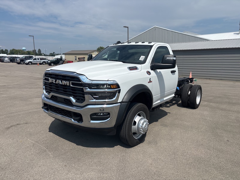 Chrome Appearance Group (19.5" x 6.0" Steel Wheels, Bright Front Bumper, Center Hub, Chrome Grille Surround, and Matte Black Mesh w/Chrome Grille), Cold Weather Group (Engine Block Heater and MOPAR Winter Front Grille Cover), Max Tow Package (Electronic Shift-On-The-Fly Transfer Case, Trailer Brake Control, and Trailer Light Check), Quick Order Package 25A Tradesman, Tradesman Level 1 Equipment Group (Black Exterior Mirrors, Black Power Heated Fold Telescope Mirrors, Exterior Mirrors Courtesy Lamps, Exterior Mirrors w/Heating Element, Exterior Mirrors w/Supplemental Signals, Front 1-Touch Down Power Windows, Manual Folding Exterior Mirrors, Manual Telescoping Mirrors, Mirror Running Lights, Power Adjust Mirrors, Power-Adjustable Convex Aux Mirrors, Rear Window Defroster, Remote Keyless Entry, Speed Sensitive Power Locks, and Upgraded Door Trim Panel), 4 Speakers, 4-Wheel Disc Brakes, 4.44 Axle Ratio, 40/20/40 Split Bench Seat, 4G LTE Wi-Fi Hot Spot, ABS brakes, Air Conditioning, AM/FM radio: SiriusXM, Apple CarPlay, Apple CarPlay/Android Auto, Cargo & CHMSL Lamp, Compass, Connectivity - US/Canada, Delay-off headlights, Driver door bin, Dual front impact airbags, Dual rear wheels, Electronic Stability Control, Emergency communication system: RAM Connect, For Details, Visit DriveUconnect.com, Front anti-roll bar, Front Armrest w/Cupholders, Front Center Armrest w/Storage, Front fog lights, Front License Plate Bracket, Front reading lights, Fully automatic headlights, Global Telematics Box Module (TBM), Google Android Auto, GPS Antenna Input, Heavy Duty Front Suspension Group, Integrated Voice Command w/Bluetooth, Manual Adjust 4-Way Driver Seat, Manual Adjust 4-Way Front Passenger Seat, Occupant sensing airbag, Outside temperature display, Overhead console, ParkView Rear Back-Up Camera, Passenger door bin, Passenger vanity mirror, Power steering, Power Take-Off Right/Left, Radio data system, Radio: Uconnect 5 w/8.4" Display, Rear anti-roll bar, Remote USB Port - Charge Only, Speed control, Tachometer, Temperature & Compass Gauge, Tilt steering wheel, Traction control, Variably intermittent wipers, Voltmeter, and Wheels: 19.5" x 6.0" Black Painted SteeL. Bright White Clearcoat 2025 Ram 5500HD Tradesman 4WD 8-Speed Automatic Cummins 6.7L I6 Turbodiesel