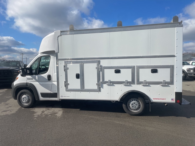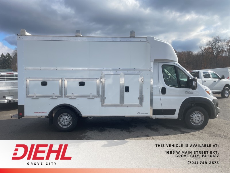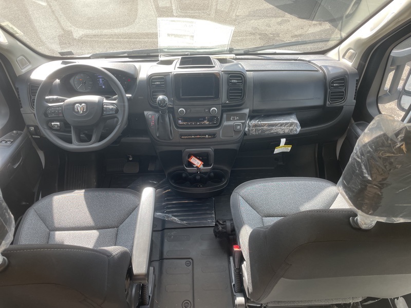 Convenience Group (96" Wide Exterior Mirrors, Exterior Mirrors w/Heating Element, Exterior Mirrors w/Supplemental Signals, Front Fog Lamps, Manual Folding Exterior Mirrors, Power Adjust Mirrors, Power-Adjustable Convex Aux Mirrors, and Wide Power Heated Mirrors), Quick Order Package 22B Tradesman w/Pass Seat (Manual Adjust 4-Way Front Passenger Seat and Passenger Bucket Seat), 4 Speakers, 4-Wheel Disc Brakes, 4.08 Axle Ratio, 4G LTE Wi-Fi Hotspot, ABS brakes, Adaptive Cruise Control w/Stop & Go, Air Conditioning, AM/FM radio: SiriusXM, Apple CarPlay, Apple CarPlay/Android Auto, Black/Gray Seats, Bodyside moldings, Brake assist, Bulb Out Detection Defeat for LED, Cloth Bucket Seats, Connectivity - US/Canada, Driver door bin, Driver Seat Armrest, Driver's Seat Mounted Armrest, Electronic Stability Control, Exterior Parking Camera Rear, For Details, Visit DriveUconnect.com, For More Info, Call 800-643-2112, Front anti-roll bar, Front Bucket Seats, Front License Plate Bracket, Front reading lights, Front wheel independent suspension, Global Telematics Box Module (TBM), Google Android Auto, GPS Antenna Input, Illuminated entry, Low tire pressure warning, Outside temperature display, Overhead airbag, Overhead console, Passenger door bin, Power steering, Power windows, Radio: Uconnect 5 w/7" Display, Rear anti-roll bar, Remote keyless entry, SiriusXM Radio Service, Steering wheel mounted audio controls, Tachometer, Telescoping steering wheel, Traction control, Trip computer, Turn signal indicator mirrors, Variably intermittent wipers, Wheel Center Cap, and Wheels: 16" x 6.0" SteeL. Bright White Clearcoat 2025 Ram ProMaster 3500 Cutaway Low Roof FWD 9-Speed 948TE Automatic 3.6L V6 24V VVT