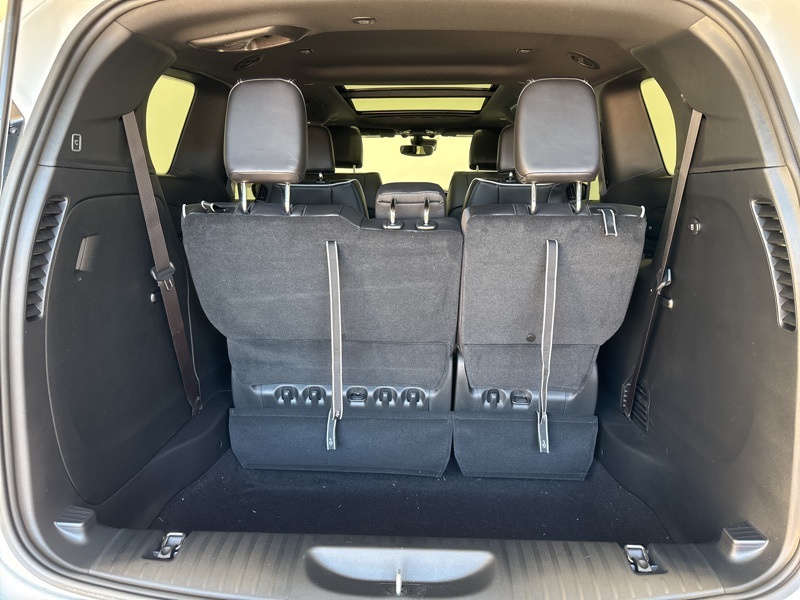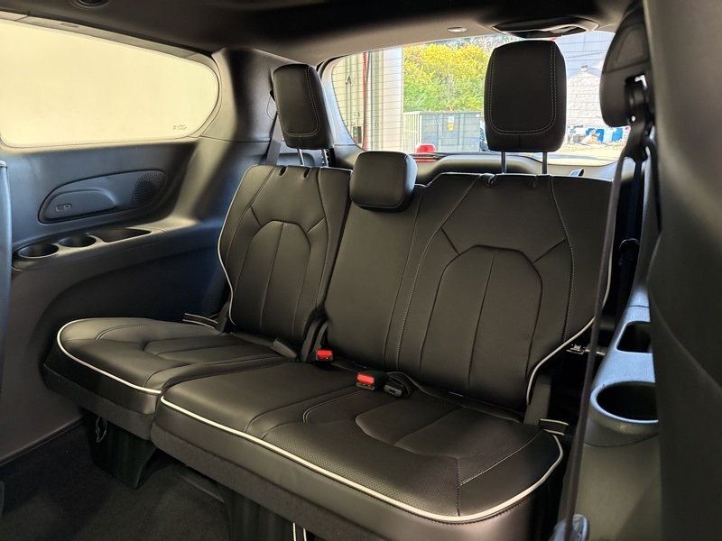 Inside, luxury meets practicality in perfect harmony. Nappa leather seats with S logo stitching, heated and ventilated front seats, heated second row seats, and tri zone climate control create the ideal cabin for any trip. The Uconnect 5 system with a 10.1 inch touchscreen, navigation, wireless charging, and Apple CarPlay and Android Auto keeps you connected and entertained. Add in the panoramic sunroof, hands free power liftgate, and Stow n Go seating, and you have an interior that adapts to every family adventure with ease.