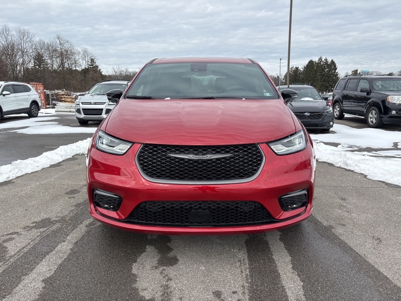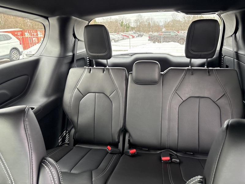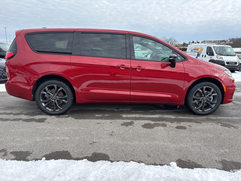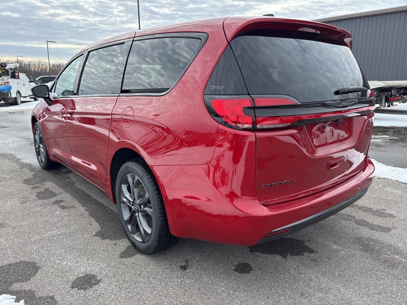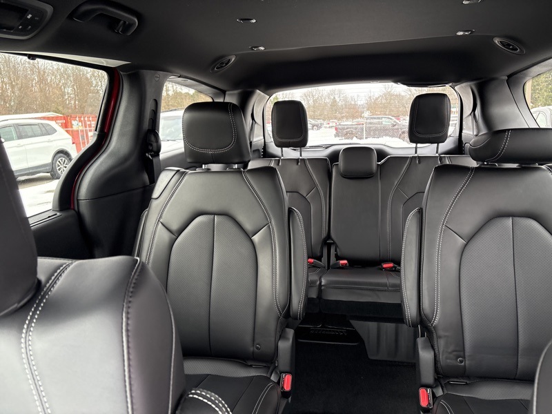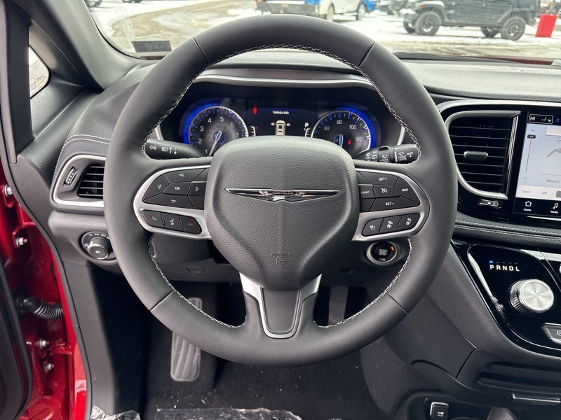 100th Anniversary Buzz Model Package (100th Anniversary Buzz Model Graphic, Black Day Light Opening Moldings, Granite Crystal Exterior Accents, Granite Crystal Exterior Badging, Premium Fascia-Upper/Lower Grilles/Granite Crystal, Premium Rear Fascia Granite Crystal, and Wheels: 20" x 7.5" Luster Gray Aluminum), Quick Order Package 27L, Safety Sphere (360 Surround View Camera System), 10.1" Touchscreen Display, 18" x 7.5" Painted Aluminum Wheels, 3.73 Axle Ratio, 3rd row seats: split-bench, 4-Wheel Disc Brakes, 4G LTE Wi-Fi Hot Spot, 6 Speakers, ABS brakes, Air Conditioning, Alloy wheels, AM/FM radio: SiriusXM, Apple CarPlay, Apple CarPlay/Android Auto, Auto-dimming Rear-View mirror, Automatic temperature control, AWD Suspension, Black Seats, Brake assist, Bumpers: body-color, Caprice Leatherette Bucket Seats, Compass, Connectivity - US/Canada, Delay-off headlights, Disassociated Touchscreen Display, Driver door bin, Driver vanity mirror, Driver's Seat Mounted Armrest, Dual front impact airbags, Dual front side impact airbags, Electronic Stability Control, Emergency communication system: Chrysler Connect, For Details, Visit DriveUconnect.com, Four wheel independent suspension, Front anti-roll bar, Front Bucket Seats, Front dual zone A/C, Front fog lights, Front reading lights, Fully automatic headlights, Garage door transmitter, Google Android Auto, GPS Antenna Input, Heated door mirrors, Heated front seats, Heated steering wheel, Illuminated entry, Integrated Active Noise Cancellation, Integrated Center Stack Radio, Knee airbag, Low tire pressure warning, Memory seat, Occupant sensing airbag, Outside temperature display, Overhead airbag, Overhead console, Panic alarm, ParkView Rear Back-Up Camera, Passenger door bin, Passenger seat mounted armrest, Passenger vanity mirror, Power door mirrors, Power driver seat, Power Liftgate, Power steering, Power windows, Radio data system, Rain sensing wipers, Rear air conditioning, Rear reading lights, Rear window defroster, Rear window wiper, Reclining 3rd row seat, Remote keyless entry, Security system, Speed control, Split folding rear seat, Spoiler, Steering wheel mounted audio controls, Tachometer, Telescoping steering wheel, Tilt steering wheel, Traction control, Trip computer, Turn signal indicator mirrors, USB Host Flip, Variably intermittent wipers, and VoltmeteR. Red Hot Pearlcoat 2026 Chrysler Pacifica Select AWD 9-Speed 948TE Automatic 3.6L V6 24V VVT