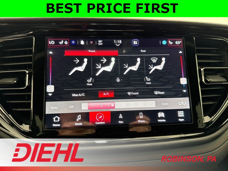 The Octane Red Pearl-Coat paint isn’t just a color—it’s a statement. It sets off the 20-inch Satin Carbon wheels, LED projector headlamps, and performance-inspired design that make this three-row SUV look ready to drag race its own reflection. Inside, you’ll find black leather-trimmed seats, a heated steering wheel, and heated first- and second-row seats that turn cold mornings into a non-issue.