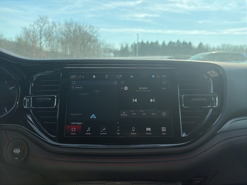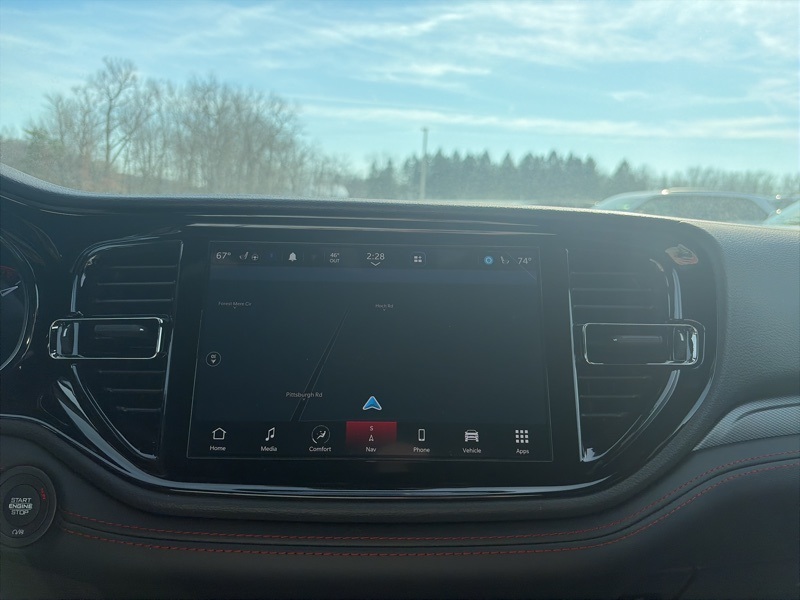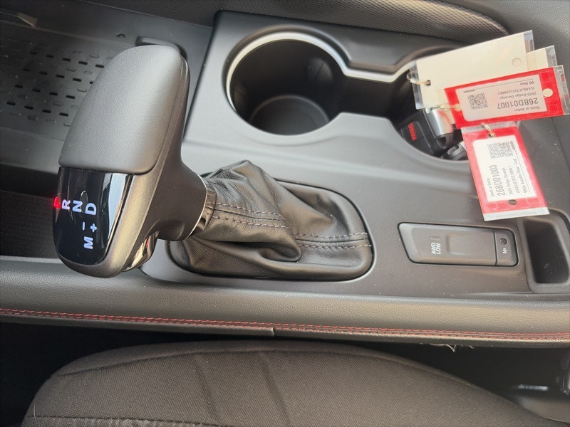 Inside, the cabin delivers comfort and sport inspired design with cloth bucket seats with shift insert, red accent stitching, a leather wrapped sport steering wheel, heated front seats, heated steering wheel, power driver seat, and front dual zone climate control with rear air conditioning. The advanced Uconnect 5 Nav system with a 10.1 inch display keeps you connected with Apple CarPlay, Android Auto, and SiriusXM with 360L, while the integrated navigation system keeps every drive on track.