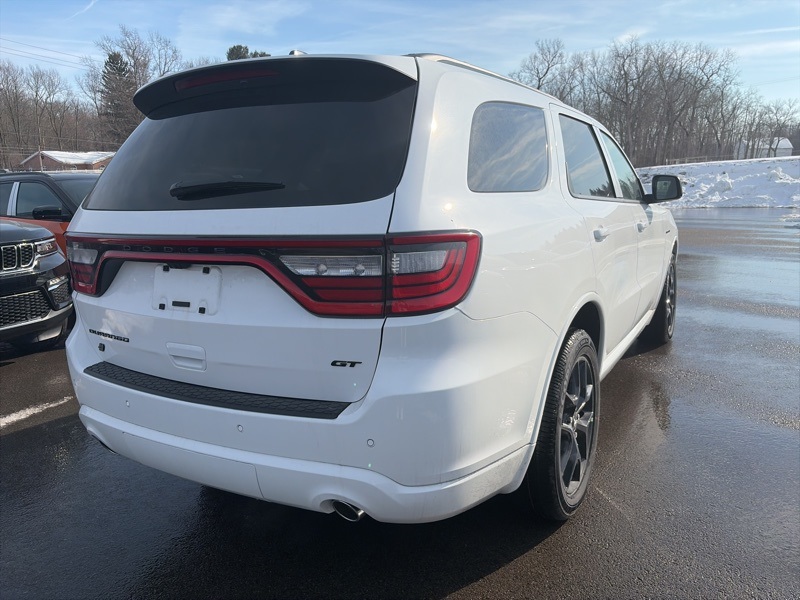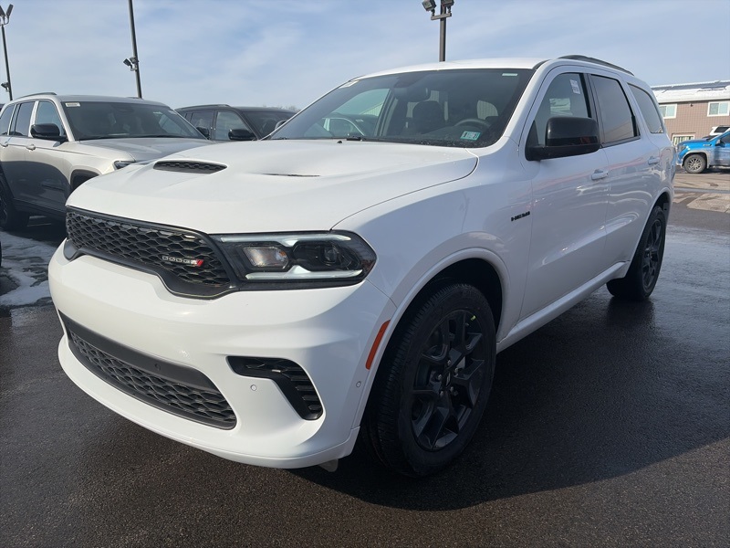 Command attention in the White Knuckle Clearcoat 2026 Dodge Durango GT HEMI V8 AWD, built with aggressive styling, strong performance, and modern tech. This Durango features the Blacktop Package, adding black roof rails, gloss black badges, integrated roof rail crossbars, and a satin black Dodge tail lamp badge for a bold, monochromatic look. Paired with Quick Order Package 22S GT, AWD, and a 3.09 rear axle ratio, it is powered by a HEMI 5.7L V8 Multi Displacement VVT matched with an 8 speed automatic transmission.