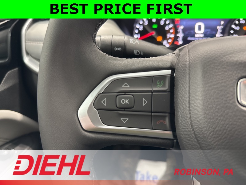 On the outside, LED projector headlights, 18-inch aluminum wheels, and chrome detailing deliver a sharp, modern look that’s ready to turn heads from downtown Pittsburgh to the Laurel Highlands. And with real Jeep 4x4 capability—plus features like Blind Spot Monitoring, Adaptive Cruise Control, and ParkSense Assist—you’ll feel confident no matter what the weather (or the road) throws your way.