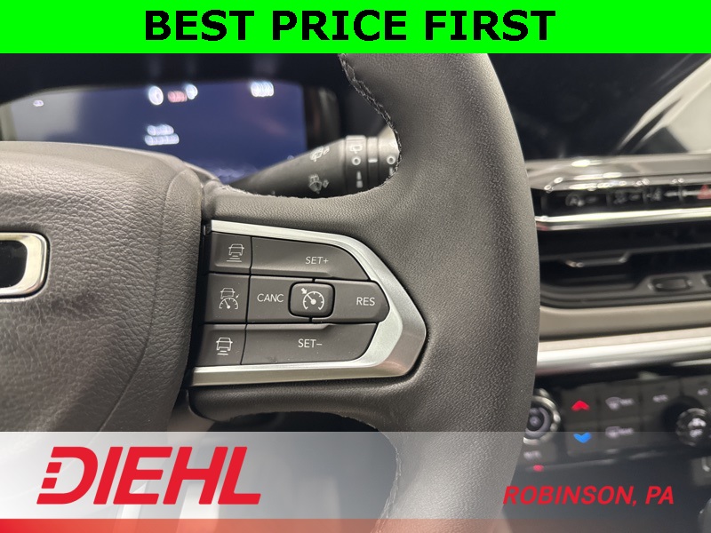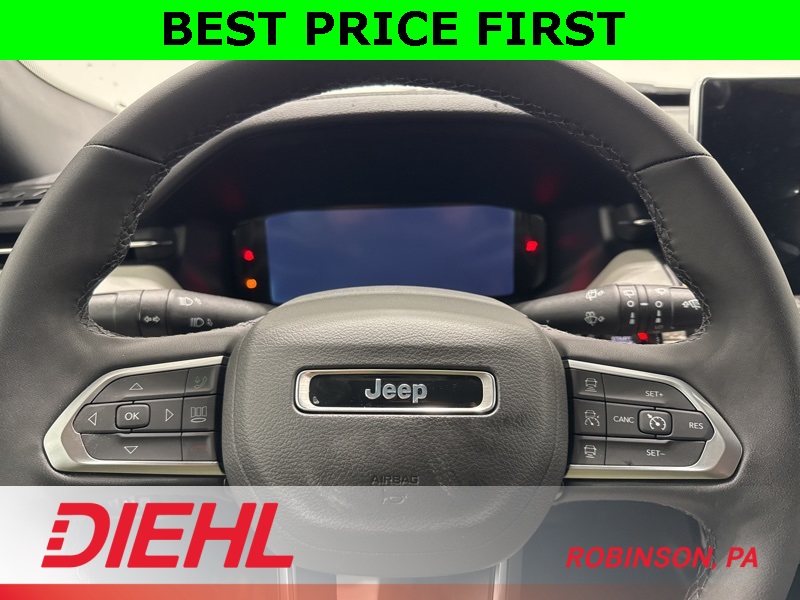 This Compass is equipped with the Customer Preferred Package 29G, adding premium touches like the panoramic dual-pane sunroof, premium Alpine speaker system, HD Radio, GPS navigation, and Alexa Built-In (Wi-Fi required), giving you both convenience and entertainment whether you’re commuting or heading out of town. Exterior details include heated exterior mirrors, LED reflector headlamps, and fog and cornering lamps, all designed to improve visibility and confidence in changing conditions.