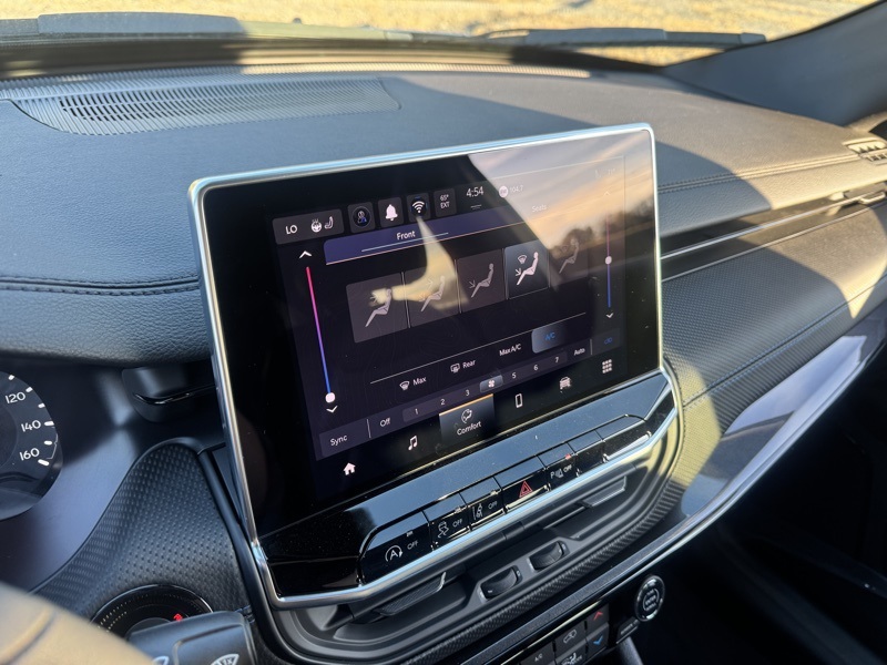 Inside, comfort takes center stage with leatherette-trimmed seats, a heated steering wheel, and heated front seats that make every drive a pleasure. Dual-zone automatic climate control, ambient lighting, and the 10.1-inch Uconnect 5 infotainment system with Apple CarPlay/Android Auto and SiriusXM 360L create a tech-savvy and connected cabin.