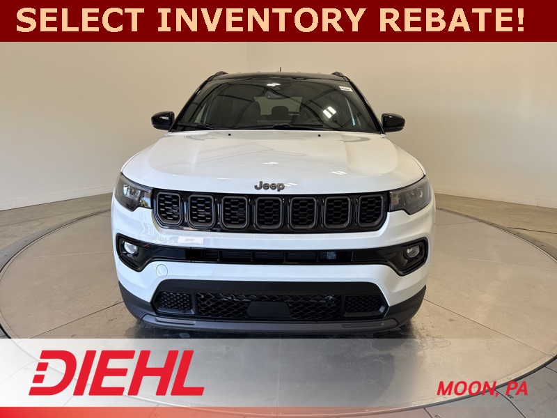 With all wheel drive capability, modern tech, and refined Jeep styling, this new Jeep Compass Limited Altitude 4x4 for sale near Pittsburgh is the perfect SUV for drivers who want it all. Visit Diehl of Moon Chrysler Jeep Dodge Ram in Moon Township PA today for the best new Jeep deals near Pittsburgh and experience the difference between getting there and arriving in style. Price includes: $1000 - 2026 National Retail Bonus Cash . Exp. 03/31/2026 $1000 - 2026 National Stellantis Loyalty Bonus Cash . Exp. 03/31/2026 $1500 - 2026 National SFS Lease Loyalty Bonus Cash . Exp. 03/31/2026 $500 - 2026 National 2026 First Responder Bonus Cash . Exp. 01/04/2027