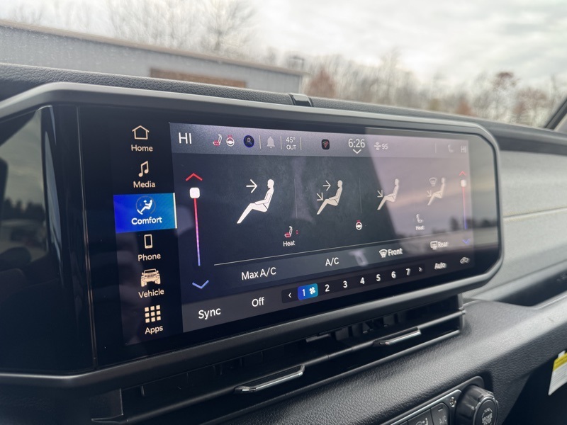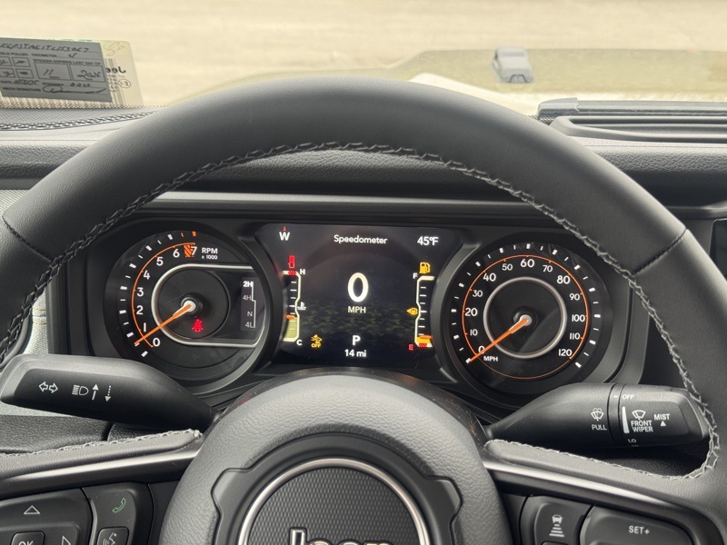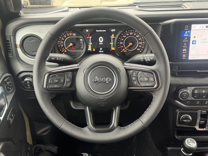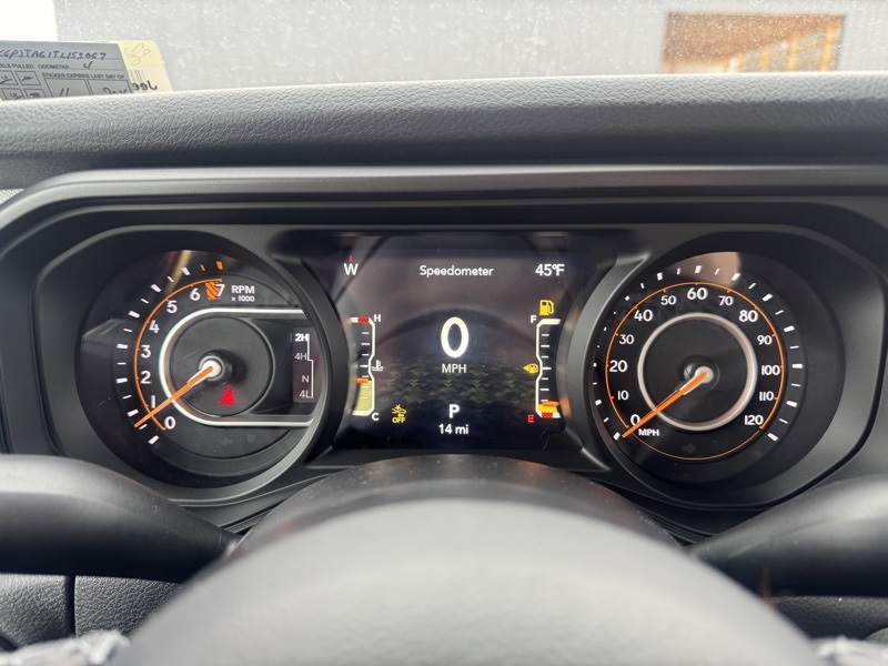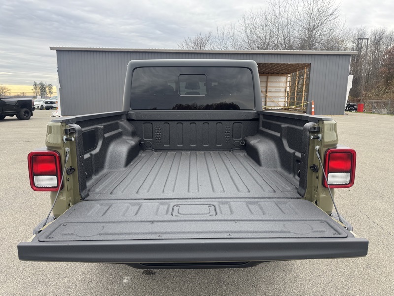 Convenience Group (Air Conditioning with Auto Temp Control, Cluster 7.0" TFT Color Display, Corning Gorilla Glass, Daytime Running Lamp System, Emergency/Assistance Call, Front Door Locks 2-Door Passive Entry, Heated Front Seats, Heated Steering Wheel, Remote Start System, and Universal Garage Door Opener), Dark Sky Appearance Package (2-Piece Body Color Fender Flares, Mold in Color Bumper with Gloss Black, and Performance Hood), Quick Order Package 24S Sport S (Advanced Brake Assist, Automatic Headlamps, Deep Tint Sunscreen Windows, Full Speed Forward Collision Warning Plus, Normal Duty Plus Suspension, Power Heated Mirrors, Premium Wrapped Steering Wheel, Security Alarm, Sun Visors with Illuminated Vanity Mirrors, and Wheels: 17" x 7.5" Gray), 110 Mph Vehicle Max Speed Calibration, 12.3" Touchscreen Display, 3.73 Rear Axle Ratio, 4-Wheel Disc Brakes, 4G LTE Wi-Fi Hot Spot, 8 Speakers, ABS brakes, Air Conditioning, Alexa Built-in, AM/FM radio: SiriusXM with 360L, Apple CarPlay, Apple CarPlay/Android Auto, Black 3-Piece Hard Top, Brake assist, Compass, Connectivity - US/Canada, Delay-off headlights, Driver door bin, Driver vanity mirror, Dual front impact airbags, Dual front side impact airbags, Electronic Stability Control, Freedom Panel Storage Bag, Front anti-roll bar, Front Bucket Seats, Front Center Armrest w/Storage, Front fog lights, Front reading lights, Google Android Auto, Illuminated entry, Integrated roll-over protection, Low tire pressure warning, MOPAR All-Weather Slush Mats, MOPAR Spray in Bedliner, Normal Duty Suspension, Occupant sensing airbag, Outside temperature display, Overhead airbag, Panic alarm, ParkView Rear Back-Up Camera, Passenger door bin, Passenger vanity mirror, Power steering, Power windows, Radio data system, Radio: Uconnect 5 with 12.3" Display, Rear anti-roll bar, Rear reading lights, Rear Sliding Window, Rear Window Defroster, Remote keyless entry, Speed control, Split folding rear seat, Steering wheel mounted audio controls, Tachometer, Telescoping steering wheel, Tilt steering wheel, Traction control, Trip computer, USB Host Flip, Variably intermittent wipers, Voltmeter, and Wheels: 17" x 7.5" Black Steel Styled. 41 2026 Jeep Gladiator Sport S 4WD 8-Speed Automatic 3.6L V6 24V VVT