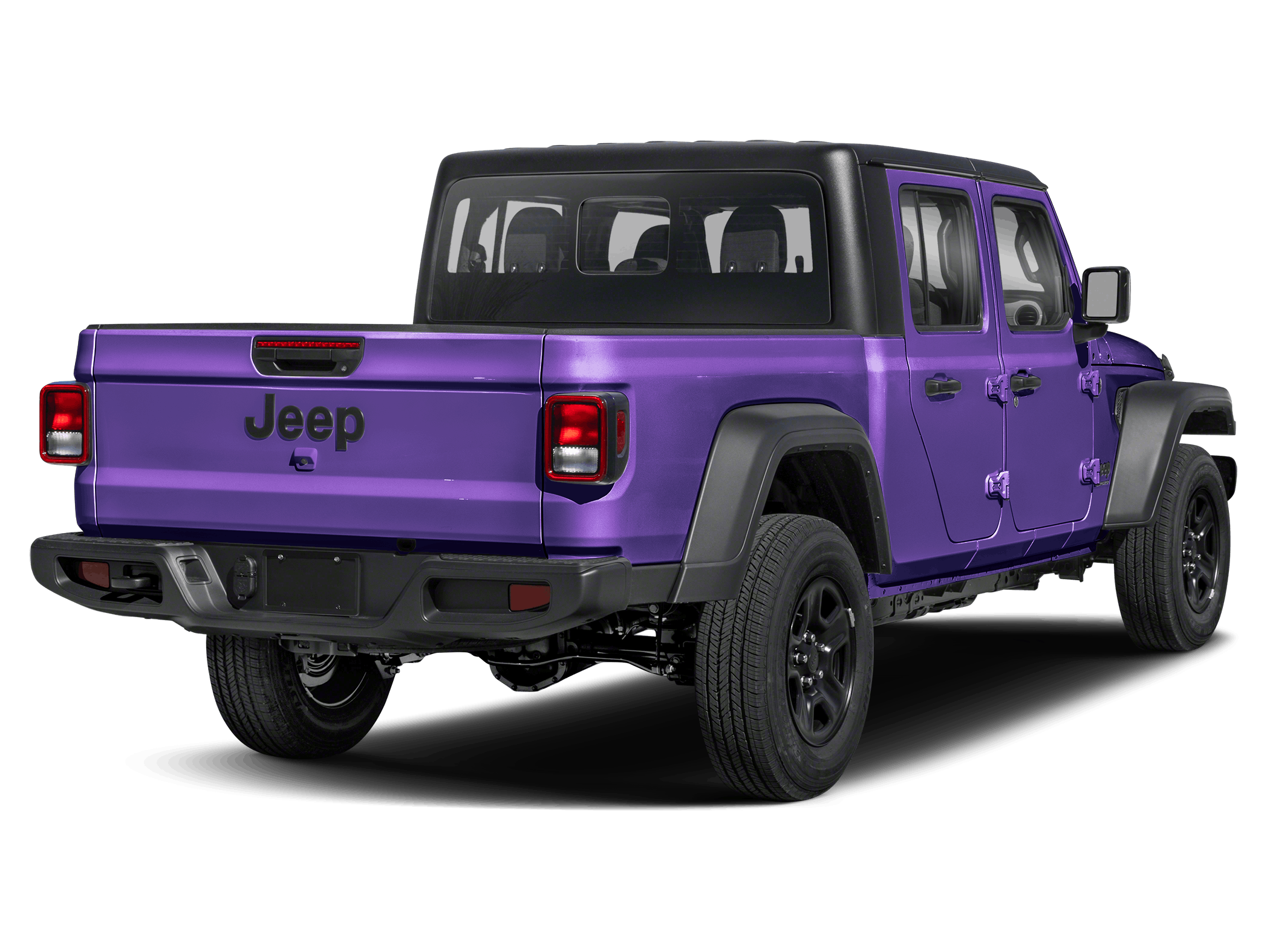 Quick Order Package 24B Sport, 110 Mph Vehicle Max Speed Calibration, 12.3" Touchscreen Display, 3.73 Rear Axle Ratio, 4-Wheel Disc Brakes, 4G LTE Wi-Fi Hot Spot, 8 Speakers, ABS brakes, Air Conditioning, Alexa Built-in, AM/FM radio: SiriusXM with 360L, Apple CarPlay, Apple CarPlay/Android Auto, Brake assist, Compass, Connectivity - US/Canada, Delay-off headlights, Driver door bin, Driver vanity mirror, Dual front impact airbags, Dual front side impact airbags, Electronic Stability Control, Front anti-roll bar, Front Bucket Seats, Front Center Armrest w/Storage, Front fog lights, Front reading lights, Google Android Auto, Illuminated entry, Integrated roll-over protection, Low tire pressure warning, MOPAR All-Weather Slush Mats, MOPAR Spray in Bedliner, Normal Duty Suspension, Occupant sensing airbag, Outside temperature display, Overhead airbag, Panic alarm, ParkView Rear Back-Up Camera, Passenger door bin, Passenger vanity mirror, Power steering, Power windows, Radio data system, Radio: Uconnect 5 with 12.3" Display, Rear anti-roll bar, Rear reading lights, Remote keyless entry, Speed control, Split folding rear seat, Steering wheel mounted audio controls, Tachometer, Telescoping steering wheel, Tilt steering wheel, Traction control, Trip computer, USB Host Flip, Variably intermittent wipers, Voltmeter, and Wheels: 17" x 7.5" Black Steel Styled. reign 2026 Jeep Gladiator Sport 4WD 8-Speed Automatic 3.6L V6 24V VVT