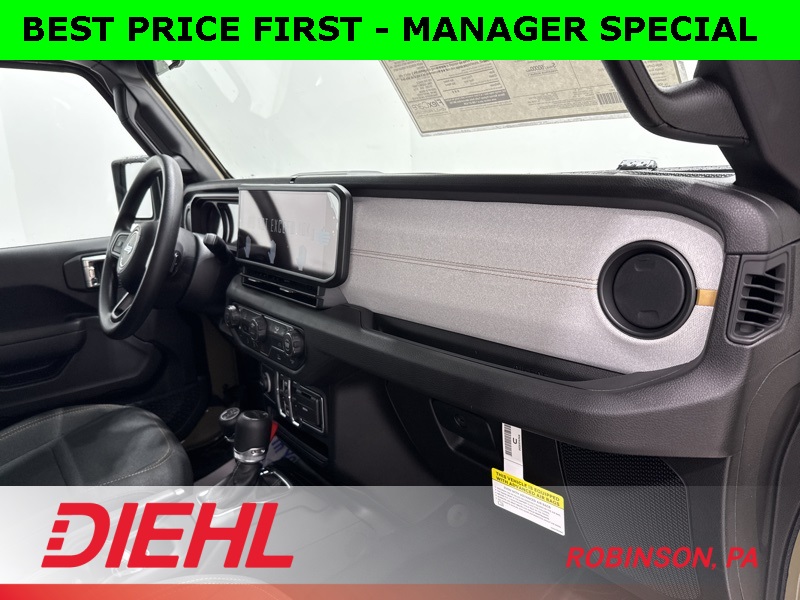 Inside, it’s classic Jeep toughness with modern touches — Uconnect 5 with a 12.3-inch touchscreen, Apple CarPlay, Android Auto, and voice command tech that listens better than your group chat. Add in push-button start, power windows, and soft-touch materials, and you’ve got a cabin that’s as comfortable as it is capable.
