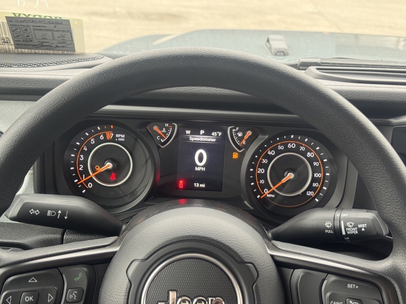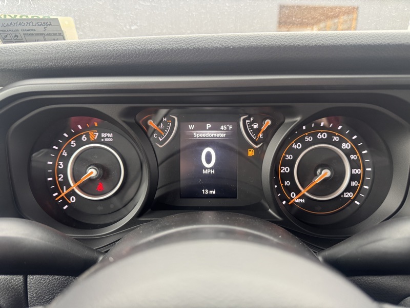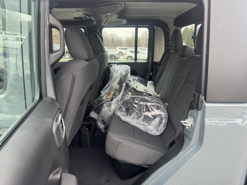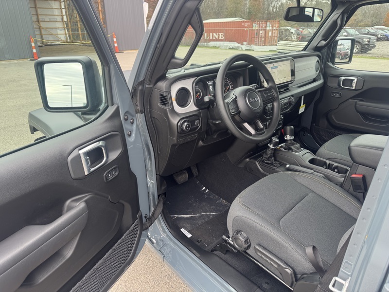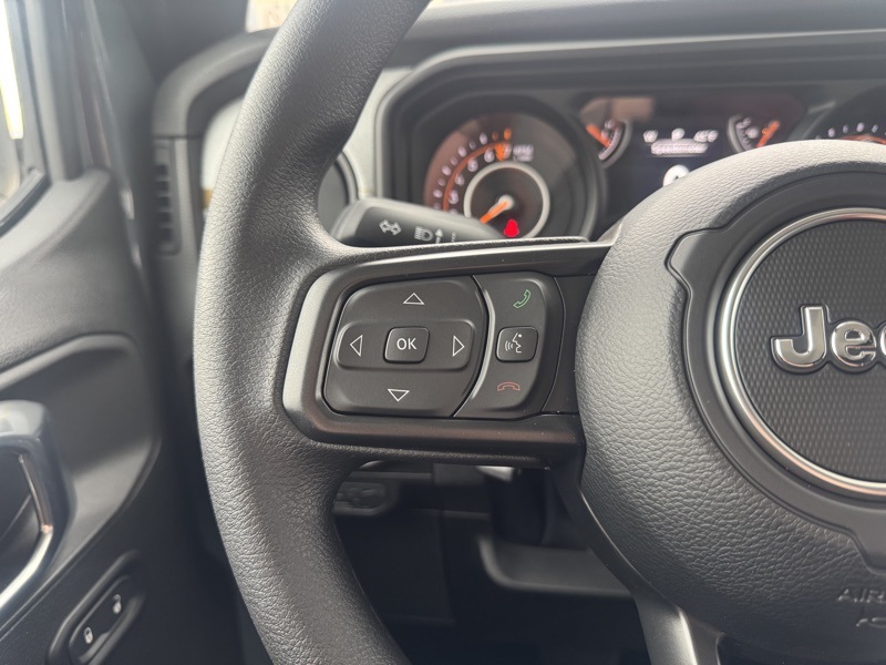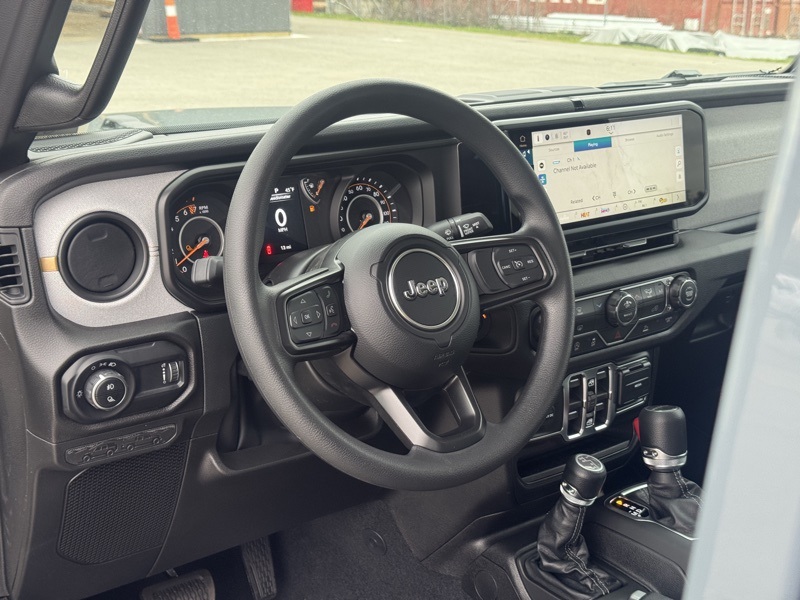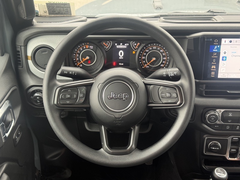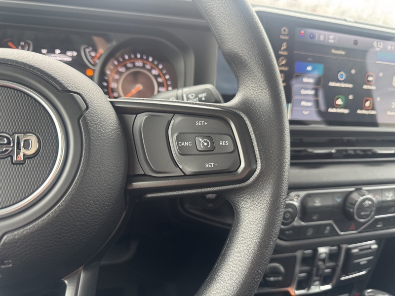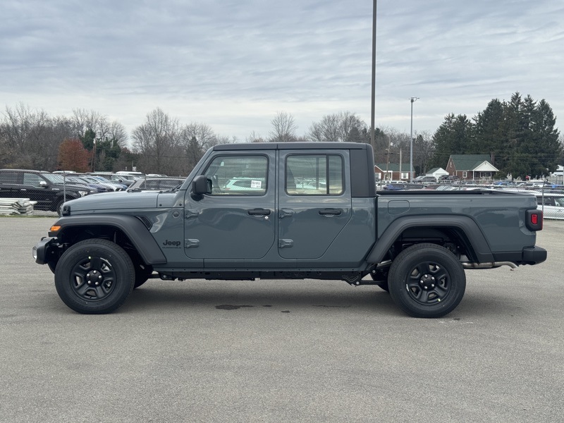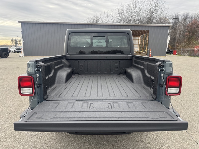 Quick Order Package 24B Sport, 110 Mph Vehicle Max Speed Calibration, 12.3" Touchscreen Display, 3.73 Rear Axle Ratio, 4-Wheel Disc Brakes, 4G LTE Wi-Fi Hot Spot, 8 Speakers, ABS brakes, Air Conditioning, Alexa Built-in, AM/FM radio: SiriusXM with 360L, Apple CarPlay, Apple CarPlay/Android Auto, Black 3-Piece Hard Top, Brake assist, Compass, Connectivity - US/Canada, Delay-off headlights, Driver door bin, Driver vanity mirror, Dual front impact airbags, Dual front side impact airbags, Electronic Stability Control, Freedom Panel Storage Bag, Front anti-roll bar, Front Bucket Seats, Front Center Armrest w/Storage, Front fog lights, Front reading lights, Google Android Auto, Illuminated entry, Integrated roll-over protection, Low tire pressure warning, MOPAR All-Weather Slush Mats, MOPAR Spray in Bedliner, Normal Duty Suspension, Occupant sensing airbag, Outside temperature display, Overhead airbag, Panic alarm, ParkView Rear Back-Up Camera, Passenger door bin, Passenger vanity mirror, Power steering, Power windows, Radio data system, Radio: Uconnect 5 with 12.3" Display, Rear anti-roll bar, Rear reading lights, Rear Sliding Window, Rear Window Defroster, Remote keyless entry, Speed control, Split folding rear seat, Steering wheel mounted audio controls, Tachometer, Telescoping steering wheel, Tilt steering wheel, Traction control, Trip computer, USB Host Flip, Variably intermittent wipers, Voltmeter, and Wheels: 17" x 7.5" Black Steel Styled. Anvil Clearcoat 2026 Jeep Gladiator Sport 4WD 8-Speed Automatic 3.6L V6 24V VVT
