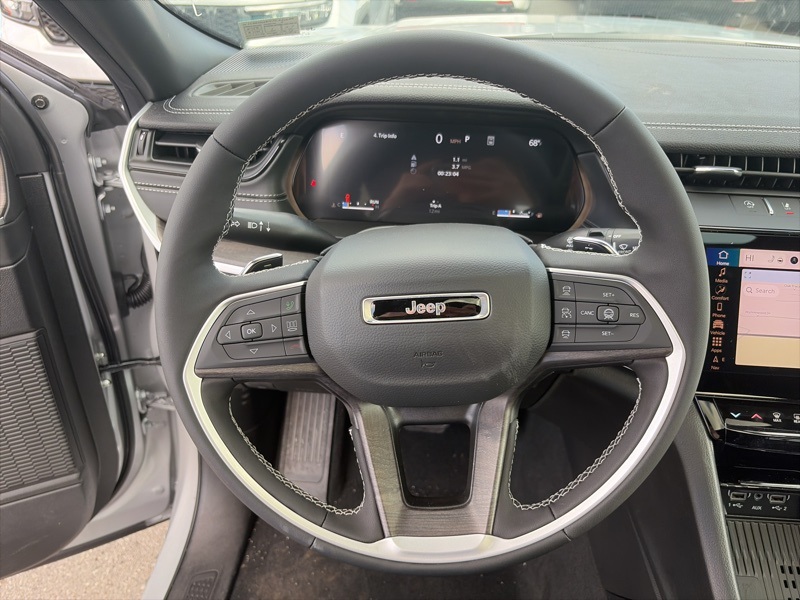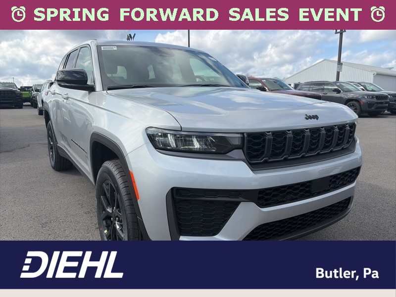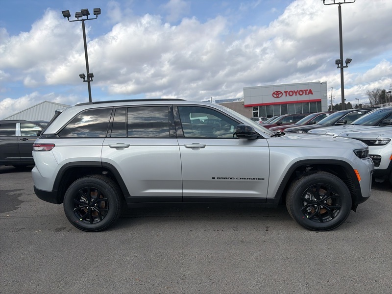 Laredo Altitude Appearance Package, Quick Order Package 2BB Laredo Altitude (115V Auxiliary Power Outlet, 12.3" Touchscreen Display, 240 Amp Alternator, 4G LTE Wi-Fi Hot Spot, Active Driving Assist System, Active Noise Control System, an-Teak/Satin Chrome Interior Accents, Apple CarPlay, Black Headliner, Body Color Door Handles (B), Capri Leatherette/Suede Seats, Connected Travel and Traffic Services, Connectivity - US/Canada, Delete Laredo Badge, Disassociated Touchscreen Display, Dual Exhaust Tips, Exterior Accents Dark Neutral Metallic, For Details, Visit DriveUconnect.com, Front Fascia Upper A, Global Telematics Box Module (TBM), Google Android Auto, GPS Antenna Input, GPS Navigation, HD Radio, Heated Front Seats, Heated Steering Wheel, Heavy-Duty Engine Cooling, Integrated Center Stack Radio, Integrated Voice Command with Bluetooth, Intersection Collision Assist System, Power Liftgate, Radio: Uconnect 5 Nav with 12.3" Display, Rain Sensitive Windshield Wipers, Rear Fascia Upper A, Remote Start System, Secondary Active Grille Shutters, Selec-Terrain System, Selectable Tire Fill Alert, SiriusXM with 360L, Traffic Sign Recognition, USB Host Flip, Wheels: 18" x 8.0" Fully Painted Aluminum 1, and Wireless Charging Pad), Trailer Tow Package (180 Amp Alternator, 7 and 4-Pin Wiring Harness, Automatic Headlamp Leveling System, Class IV Receiver Hitch, Rear Load Levelling Suspension, and Trailer Hitch Zoom), 4WD, 4-Wheel Disc Brakes, 6 Speakers, ABS brakes, Air Conditioning, Alloy wheels, AM/FM radio: SiriusXM, Anti-whiplash front head restraints, AppLink/Apple CarPlay and Android Auto, Automatic temperature control, Auxiliary Battery, Brake assist, Bumpers: body-color, Cloth Seats, Compass, Delay-off headlights, Driver door bin, Driver vanity mirror, Dual front impact airbags, Dual front side impact airbags, Electronic Stability Control, Emergency communication system, Four wheel independent suspension, Front anti-roll bar, Front Bucket Seats, Front Center Armrest w/Storage, Front dual zone A/C, Front reading lights, Fully automatic headlights, Gloss Black Exterior Mirrors, Heated door mirrors, Heated Exterior Mirrors, Illuminated entry, Knee airbag, Low tire pressure warning, Manual Folding Exterior Mirrors, Normal Duty Suspension, Occupant sensing airbag, Outside temperature display, Overhead airbag, Overhead console, Panic alarm, ParkView Rear Back-Up Camera, Passenger door bin, Passenger vanity mirror, Power door mirrors, Power driver seat, Power steering, Power Sunroof, Power windows, Radio data system, Radio: Uconnect 5 with 8.4" Display, Rear anti-roll bar, Rear reading lights, Rear window defroster, Rear window wiper, Remote keyless entry, Security system, Speed control, Speed-Sensitive Wipers, Split folding rear seat, Spoiler, Steering wheel mounted audio controls, Tachometer, Telescoping steering wheel, Tilt steering wheel, Traction control, Trip computer, Variably intermittent wipers, Voltmeter, and Wheels: 18" x 8.0" Fully Painted AluminuM. 4WD. Silver Zynith 2026 Jeep Grand Cherokee Laredo 4WD 8-Speed Automatic 2.0L V6 SMPI Turbocharged DOHC 24V LEV3-SULEV30 293hp