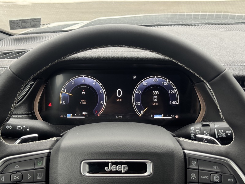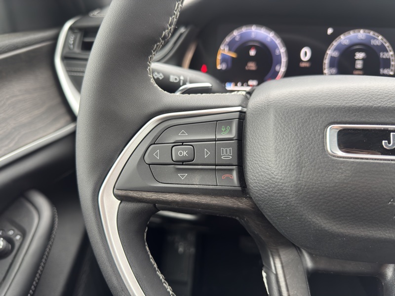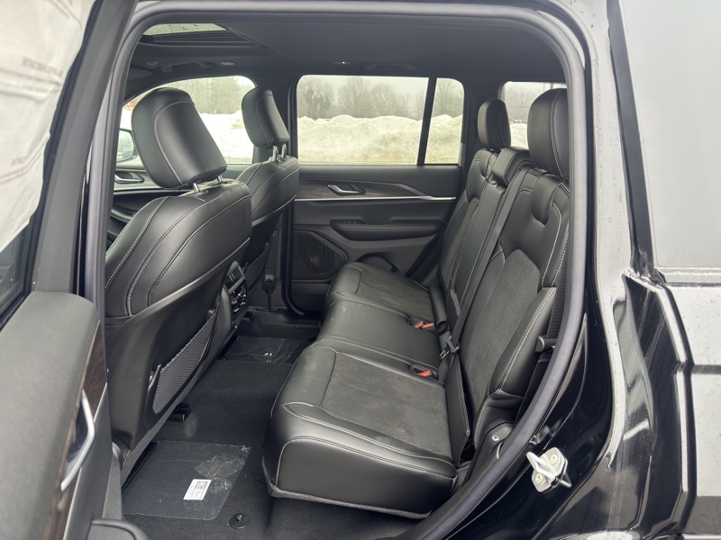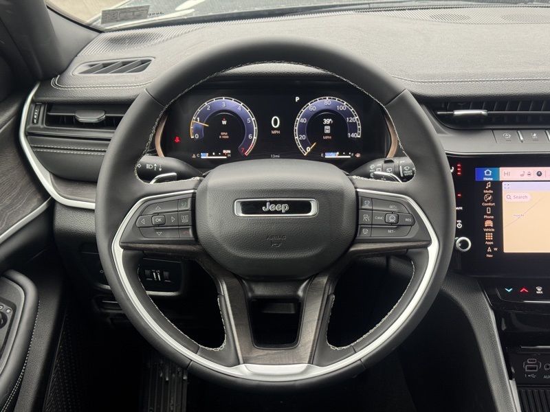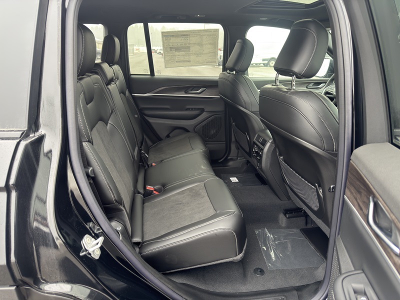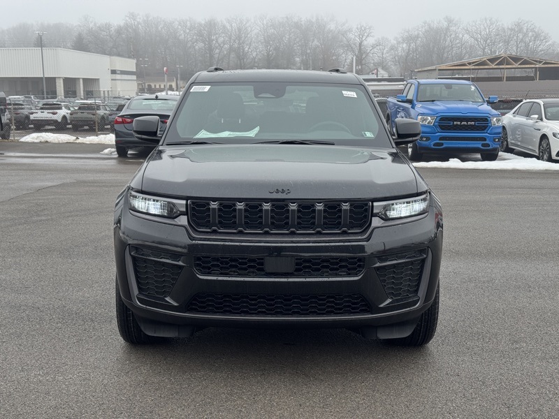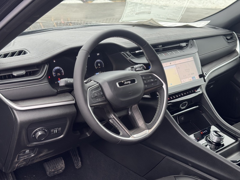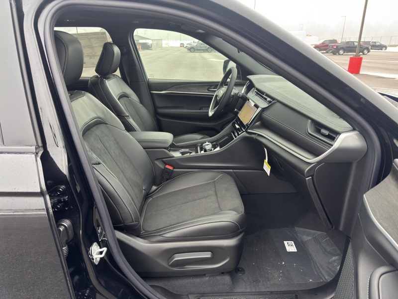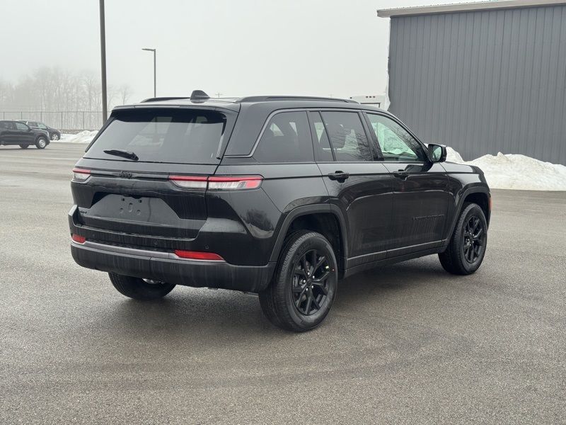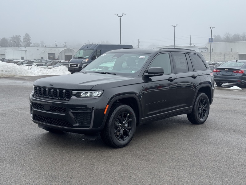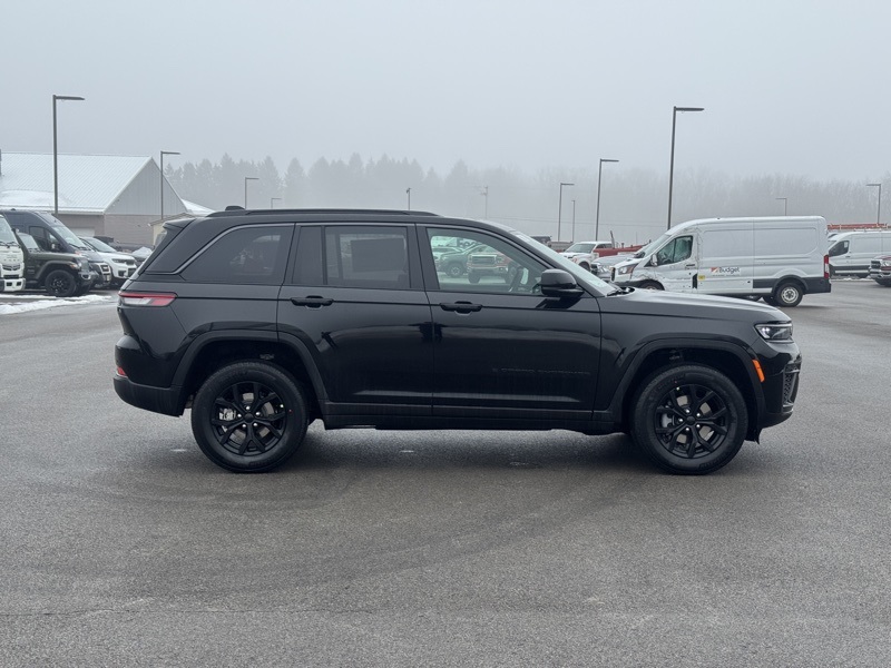 Laredo Altitude Appearance Package, Quick Order Package 2BB Laredo Altitude (115V Auxiliary Power Outlet, 12.3" Touchscreen Display, 240 Amp Alternator, 4G LTE Wi-Fi Hot Spot, Active Driving Assist System, Active Noise Control System, an-Teak/Satin Chrome Interior Accents, Apple CarPlay, Black Headliner, Body Color Door Handles (B), Capri Leatherette/Suede Seats, Connected Travel and Traffic Services, Connectivity - US/Canada, Delete Laredo Badge, Disassociated Touchscreen Display, Dual Exhaust Tips, Exterior Accents Dark Neutral Metallic, For Details, Visit DriveUconnect.com, Front Fascia Upper A, Global Telematics Box Module (TBM), Google Android Auto, GPS Antenna Input, GPS Navigation, HD Radio, Heated Front Seats, Heated Steering Wheel, Heavy-Duty Engine Cooling, Integrated Center Stack Radio, Integrated Voice Command with Bluetooth, Intersection Collision Assist System, Power Liftgate, Radio: Uconnect 5 Nav with 12.3" Display, Rain Sensitive Windshield Wipers, Rear Fascia Upper A, Remote Start System, Secondary Active Grille Shutters, Selec-Terrain System, Selectable Tire Fill Alert, SiriusXM with 360L, Traffic Sign Recognition, USB Host Flip, Wheels: 18" x 8.0" Fully Painted Aluminum 1, and Wireless Charging Pad), 4WD, 4-Wheel Disc Brakes, 6 Speakers, ABS brakes, Air Conditioning, Alloy wheels, AM/FM radio: SiriusXM, Anti-whiplash front head restraints, AppLink/Apple CarPlay and Android Auto, Automatic temperature control, Auxiliary Battery, Brake assist, Bumpers: body-color, Cloth Seats, Compass, Delay-off headlights, Driver door bin, Driver vanity mirror, Dual front impact airbags, Dual front side impact airbags, Electronic Stability Control, Emergency communication system, Four wheel independent suspension, Front anti-roll bar, Front Bucket Seats, Front Center Armrest w/Storage, Front dual zone A/C, Front reading lights, Fully automatic headlights, Gloss Black Exterior Mirrors, Heated door mirrors, Heated Exterior Mirrors, Illuminated entry, Knee airbag, Low tire pressure warning, Manual Folding Exterior Mirrors, Normal Duty Suspension, Occupant sensing airbag, Outside temperature display, Overhead airbag, Overhead console, Panic alarm, ParkView Rear Back-Up Camera, Passenger door bin, Passenger vanity mirror, Power door mirrors, Power driver seat, Power steering, Power Sunroof, Power windows, Radio data system, Radio: Uconnect 5 with 8.4" Display, Rear anti-roll bar, Rear reading lights, Rear window defroster, Rear window wiper, Remote keyless entry, Security system, Speed control, Speed-Sensitive Wipers, Split folding rear seat, Spoiler, Steering wheel mounted audio controls, Tachometer, Telescoping steering wheel, Tilt steering wheel, Traction control, Trip computer, Variably intermittent wipers, Voltmeter, and Wheels: 18" x 8.0" Fully Painted AluminuM. 4WD. Diamond Black Crystal Pearlcoat 2026 Jeep Grand Cherokee Laredo 4WD 8-Speed Automatic 2.0L V6 SMPI Turbocharged DOHC 24V LEV3-SULEV30 293hp