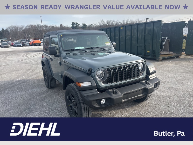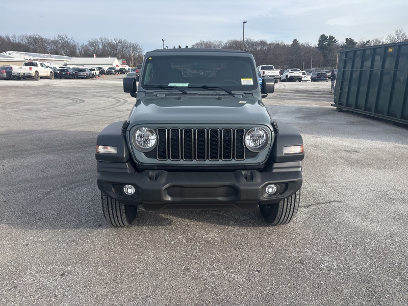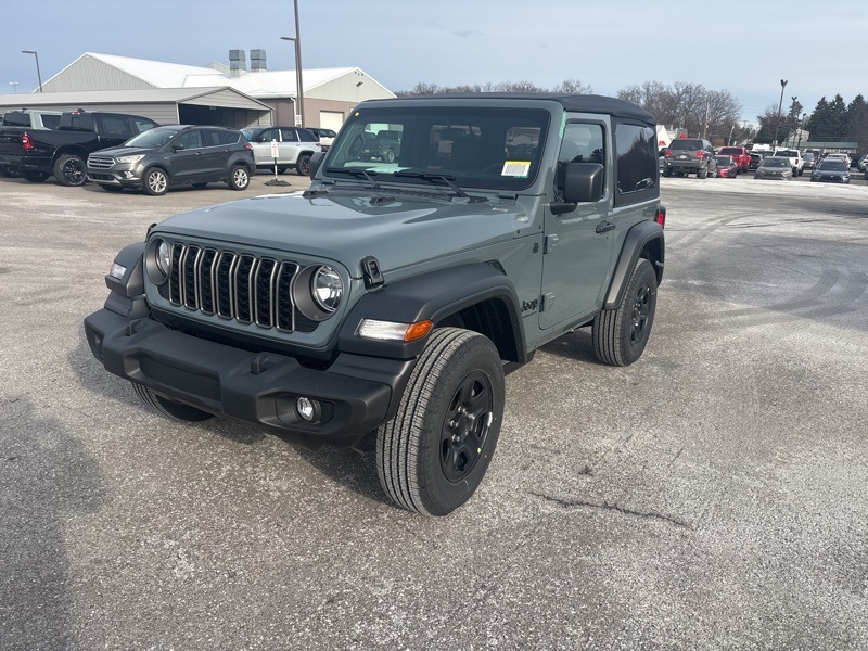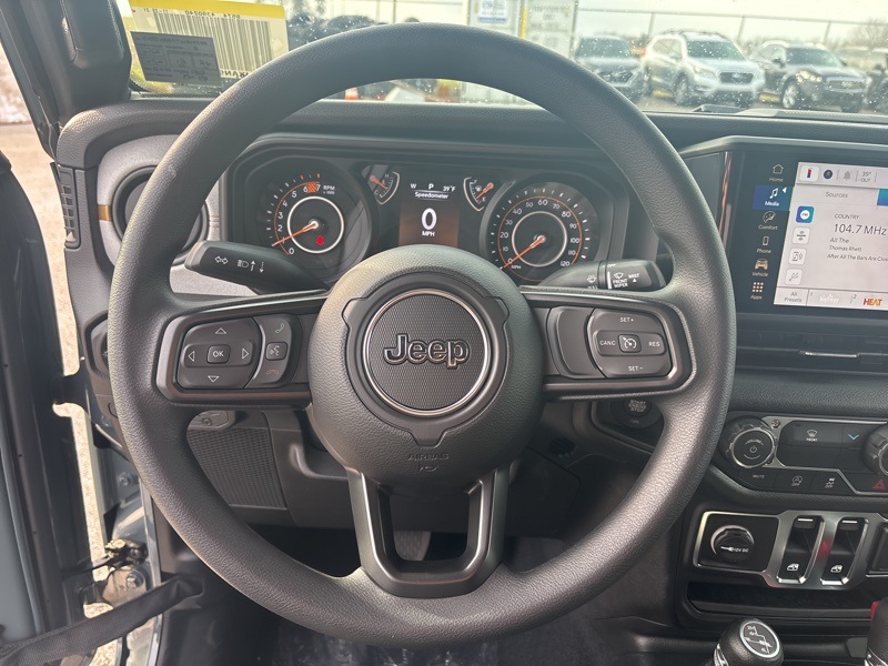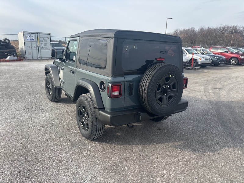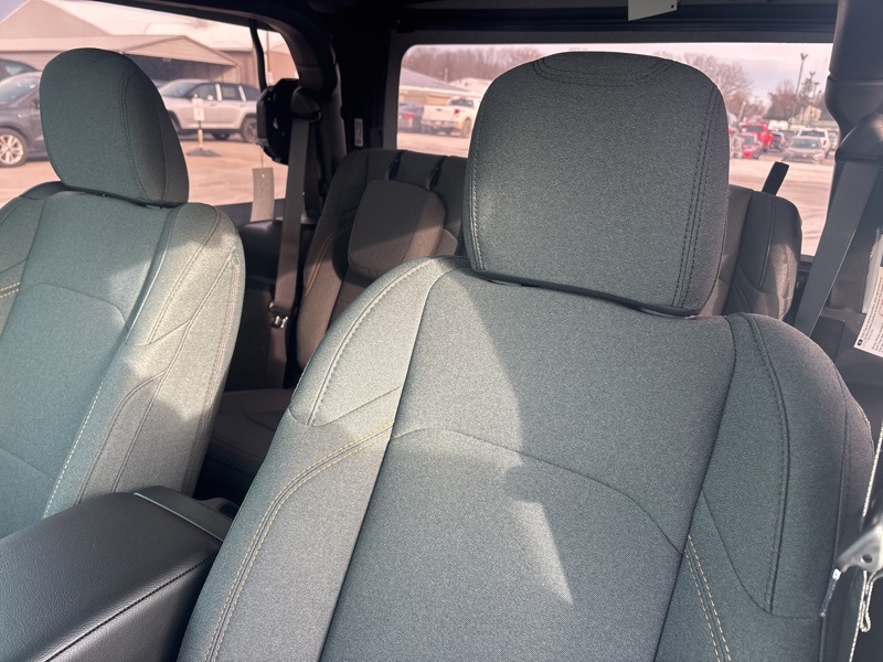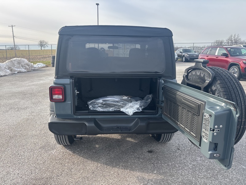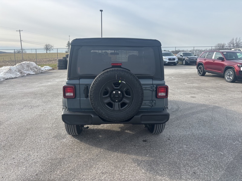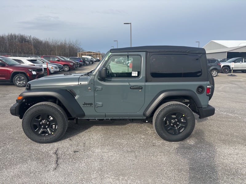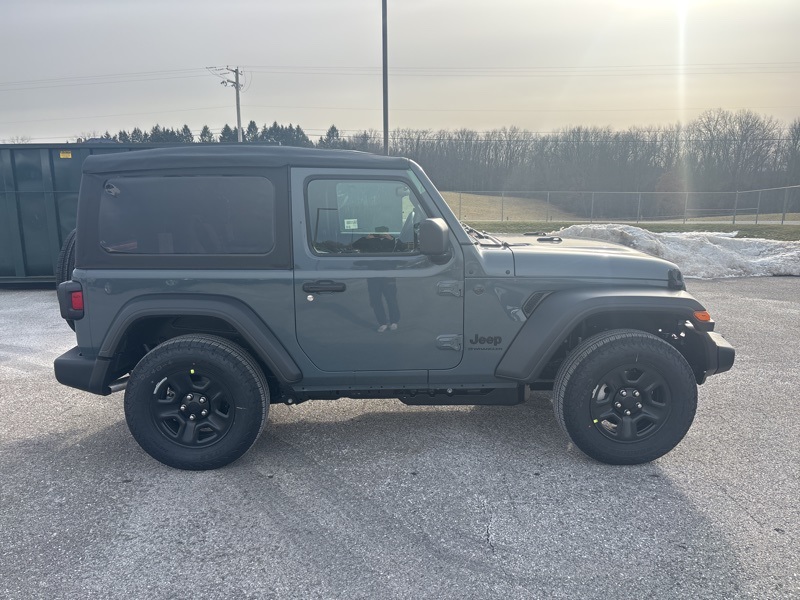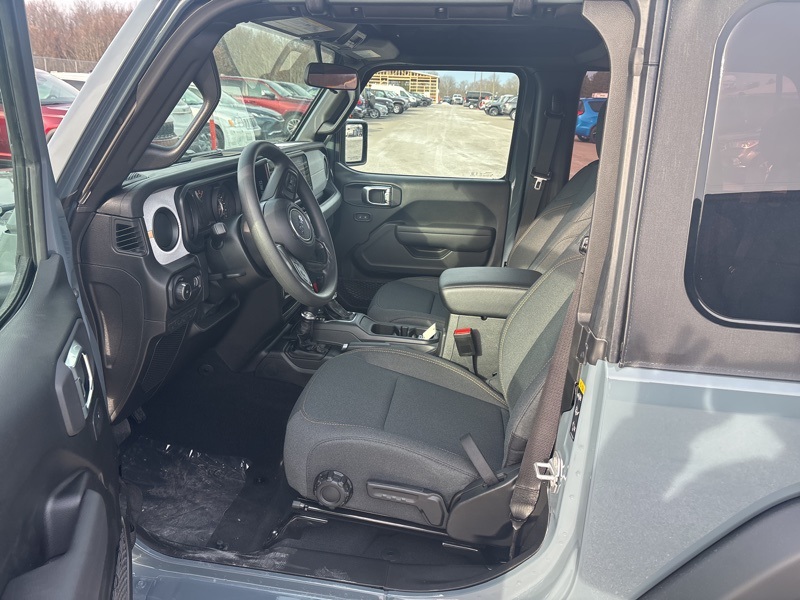 Quick Order Package 22B Sport, 12.3" Touchscreen Display, 3.45 Overall Top Gear Ratio, 4-Wheel Disc Brakes, 4G LTE Wi-Fi Hot Spot, 8 Speakers, ABS brakes, Air Conditioning, AM/FM radio: SiriusXM with 360L, Apple CarPlay, Apple CarPlay/Android Auto, Aux Battery, Brake assist, Cloth Low-Back Bucket Seats, Compass, Connectivity - US/Canada, Deep Tint Sunscreen Windows, Delay-off headlights, Driver door bin, Driver vanity mirror, Dual front impact airbags, Dual front side impact airbags, Electronic Stability Control, For More Info, Call 800-643-2112, Front anti-roll bar, Front Bucket Seats, Front Center Armrest w/Storage, Front fog lights, Front reading lights, Google Android Auto, Illuminated entry, Integrated Center Stack Radio, Integrated roll-over protection, Low tire pressure warning, MOPAR All-Weather Floor Mats, Non-Lock Fuel Cap Without Discriminator, Normal Duty Suspension, Occupant sensing airbag, Outside temperature display, Overhead airbag, Panic alarm, ParkView Rear Back-Up Camera, Passenger door bin, Passenger vanity mirror, Power steering, Power windows, Radio data system, Radio: Uconnect 5 with 12.3" Display, Rear anti-roll bar, Rear reading lights, Remote keyless entry, SiriusXM Radio Service, SiriusXM with 360L, Speed control, Steering wheel mounted audio controls, Stop-Start Dual Battery System, Tachometer, Telescoping steering wheel, Tilt steering wheel, Traction control, Trip computer, Variably intermittent wipers, and Wheels: 17" x 7.5" Black Steel Styled. Anvil Clear Coat 2026 Jeep Wrangler Sport 4WD 8-Speed Automatic 2.0L I4 DOHC