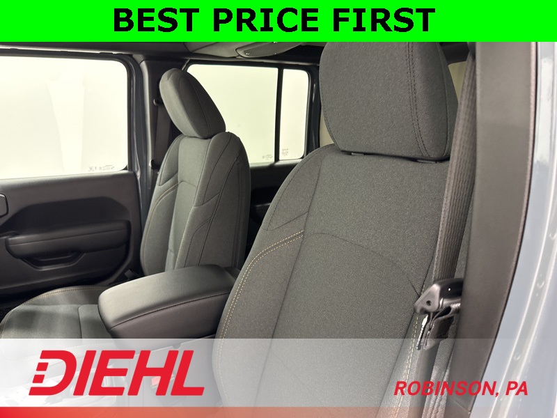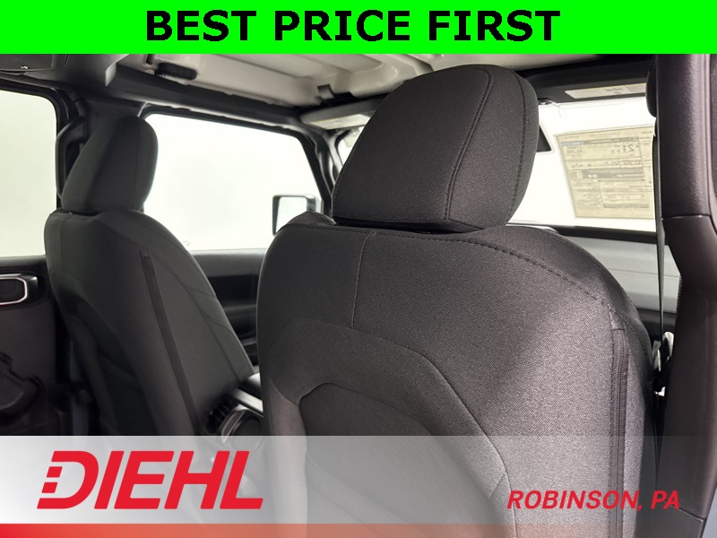 Finished in Clear-Coat exterior paint with a Black interior, this Sport S is equipped with the right upgrades that most Wrangler buyers actually want. The Customer Preferred Package 22S adds modern convenience like power windows and locks, keyless entry, remote start, heated front seats, and a heated steering wheel, bringing real comfort to a vehicle that’s still unapologetically Jeep. The 17-inch gray wheels with all-season tires give it a clean, classic stance that works just as well in town as it does on trails or snow-covered roads.