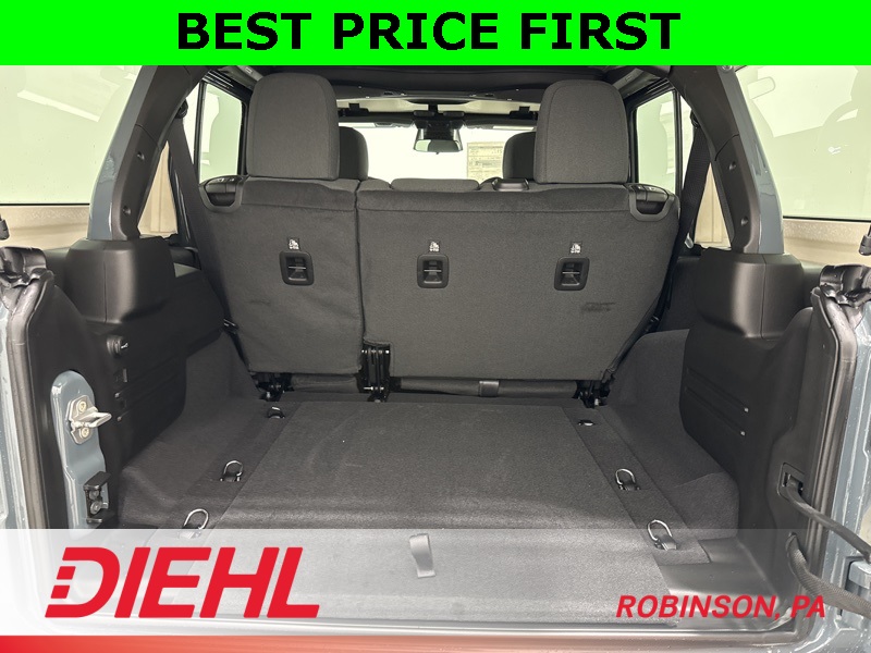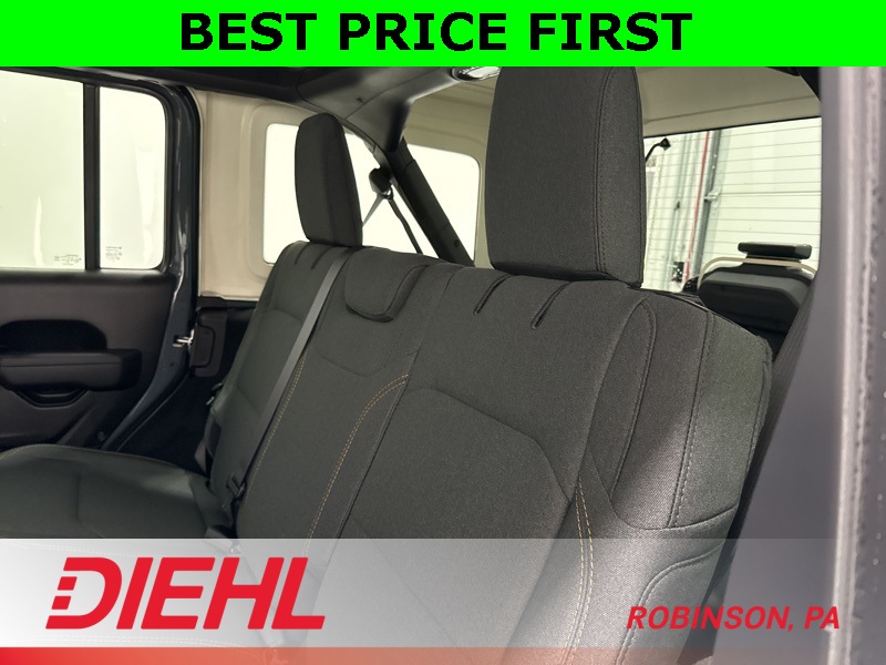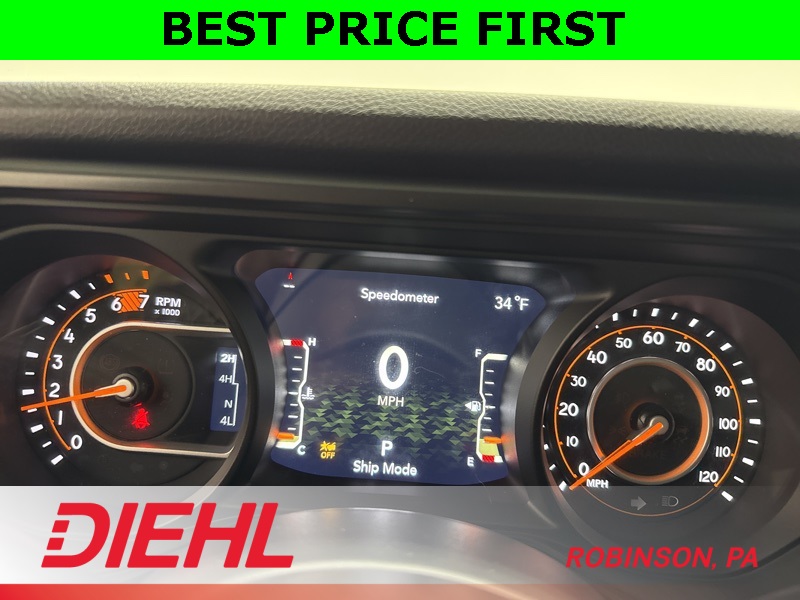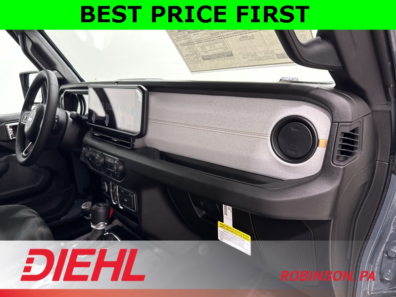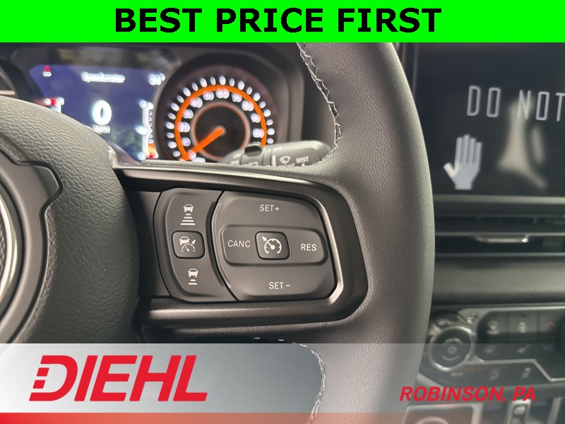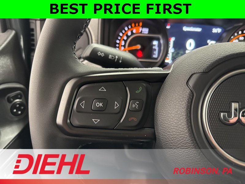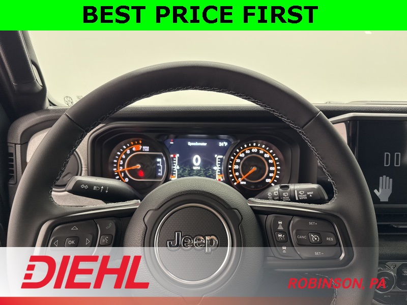 Safety and confidence come standard with ParkView backup camera, forward-collision warning with active braking, adaptive cruise control, blind-spot monitoring, rear cross-path detection, electronic stability control, and traction control, rounding out a Wrangler that’s as comfortable on the highway as it is capable off pavement.