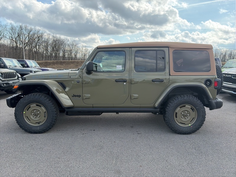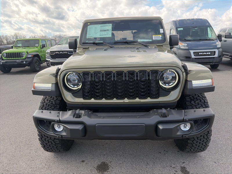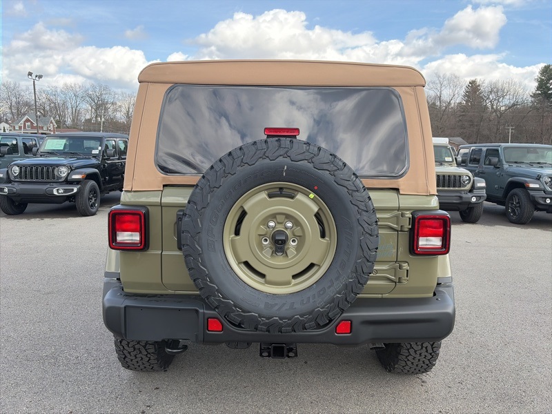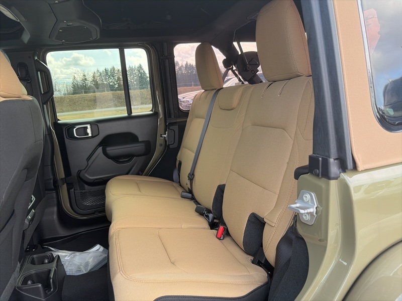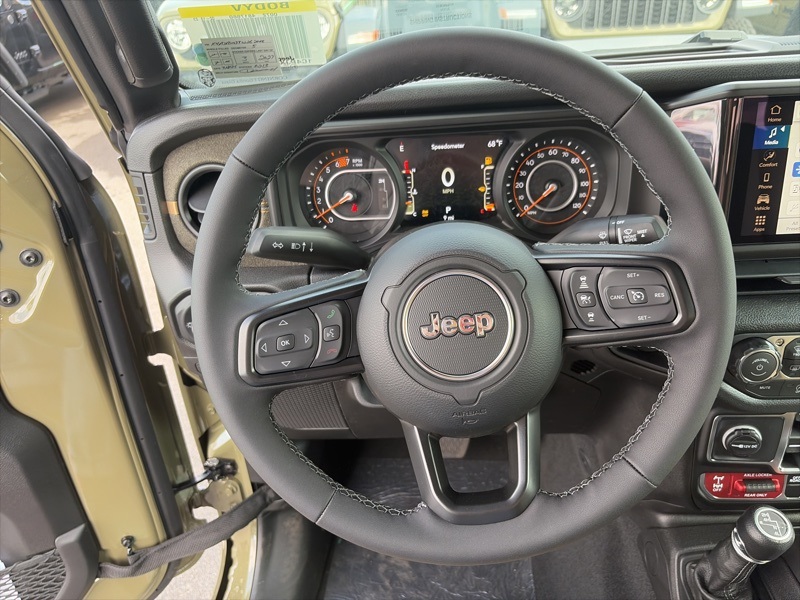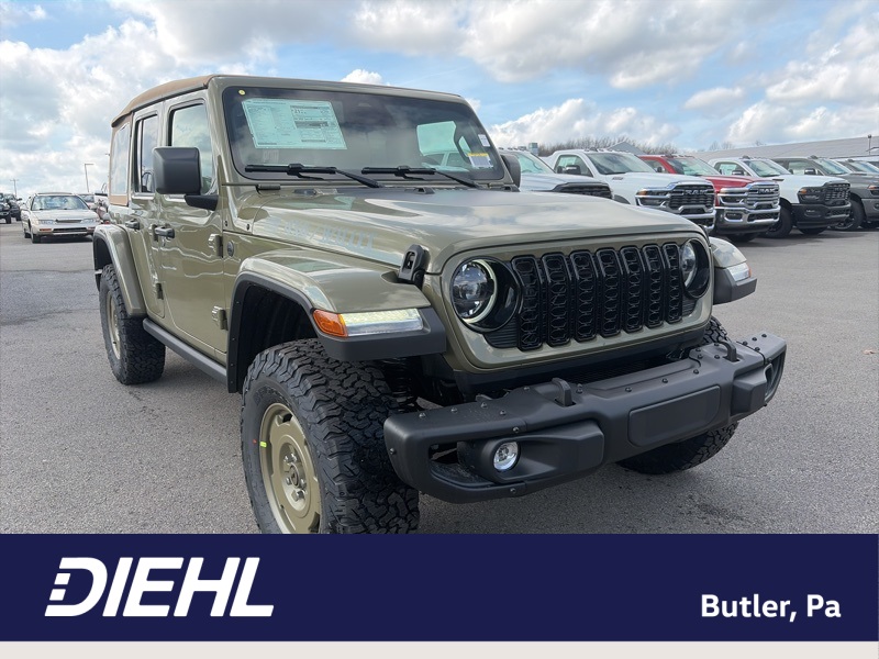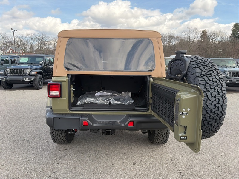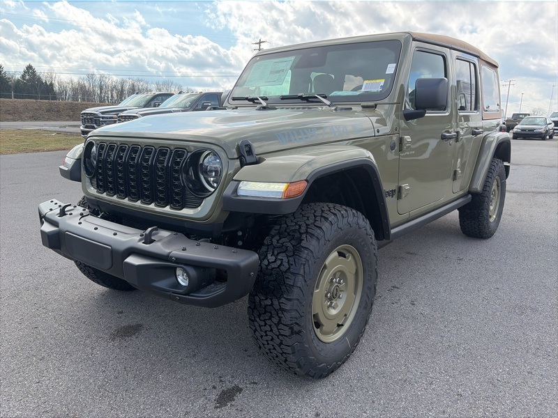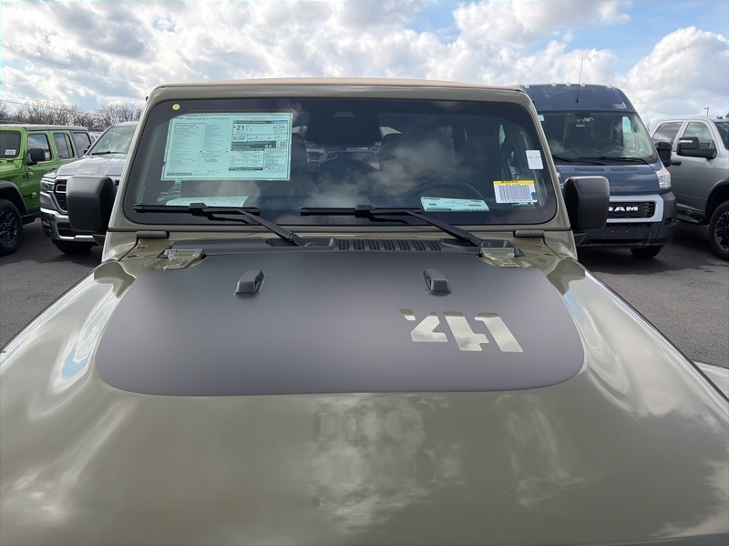 Convenience Group (2-Door Passive Entry, Front Door Locks, Air Conditioning with Auto Temp Control, Air Filtering, Cluster 7.0" TFT Color Display, Emergency/Assistance Call, Heated Front Seats, Heated Steering Wheel, and Universal Garage Door Opener), Quick Order Package 22H Willys 41 (4WD Willys '41 Swing Gate Decal, 7 and 4 Pin Wiring Harness, 97 MPH Vehicle Max Speed Calibration, Adaptive Cruise Control with Stop, Advanced Brake Assist, Automatic Headlamps, Auxiliary Switches, Body Color Grille with Gloss Black Rings, Body Color Rubicon Highline Flare, Class II Receiver Hitch, Cloth Low-Back Bucket Seats, Conventional Differential Front Axle, Corning Gorilla Glass, Dana M210 Wide HD Tube Front Axle, Dana M220 Wide Rear Axle, Daytime Running Lamps LED Accents, Deep Tint Sunscreen Windows, E-Locker Rear Axle, Front LED Fog Lamps, Full Speed Forward Collision Warning Plus, LED Premium Reflector Headlamps, MOPAR All-Weather Floor Mats, Off-Road Plus Mode, Power Heated Mirrors, Premium Tan Sunrider Soft Top, Premium Wrapped Steering Wheel, Security Alarm, Steel Front Bumper, Steel Rear Bumper, Sun Visors with Illuminated Vanity Mirrors, Wheels: 17" x 7.5" Fully Painted, Willy's Suspension, Willys '41 Retro Edition Buzz Model, Willys '41 Retro Edition Hood Decal, Willys '41 Retro Edition Tailgate Plaque, Willys '41 Retro Edition Wrangler Decal, Willys '41 Retro Shift Bezel Insert, and Willys '41 US Edition U.S. Hood Decal), Steel Power Dome Hood Package (Power Dome Dual Vented Hood), 12.3" Touchscreen Display, 4-Wheel Disc Brakes, 4G LTE Wi-Fi Hot Spot, 8 Speakers, ABS brakes, Air Conditioning, AM/FM radio: SiriusXM with 360L, Apple CarPlay, Apple CarPlay/Android Auto, Aux Battery, Brake assist, Compass, Connectivity - US/Canada, Delay-off headlights, Driver door bin, Driver vanity mirror, Dual front impact airbags, Dual front side impact airbags, Electronic Stability Control, For More Info, Call 800-643-2112, Front anti-roll bar, Front Bucket Seats, Front Center Armrest w/Storage, Front fog lights, Front reading lights, Google Android Auto, Illuminated entry, Integrated Center Stack Radio, Integrated roll-over protection, Low tire pressure warning, Non-Lock Fuel Cap Without Discriminator, Normal Duty Suspension, Occupant sensing airbag, Outside temperature display, Overhead airbag, Panic alarm, ParkView Rear Back-Up Camera, Passenger door bin, Passenger vanity mirror, Power steering, Power windows, Radio data system, Radio: Uconnect 5 with 12.3" Display, Rear anti-roll bar, Rear reading lights, Remote keyless entry, SiriusXM Radio Service, SiriusXM with 360L, Speed control, Split folding rear seat, Steering wheel mounted audio controls, Stop-Start Dual Battery System, Tachometer, Telescoping steering wheel, Tilt steering wheel, Traction control, Trip computer, Variably intermittent wipers, and Wheels: 17" x 7.5" Black Steel Styled. Recent Arrival! 41 2026 Jeep Wrangler Willys 4WD 8-Speed Automatic 2.0L I4 DOHC