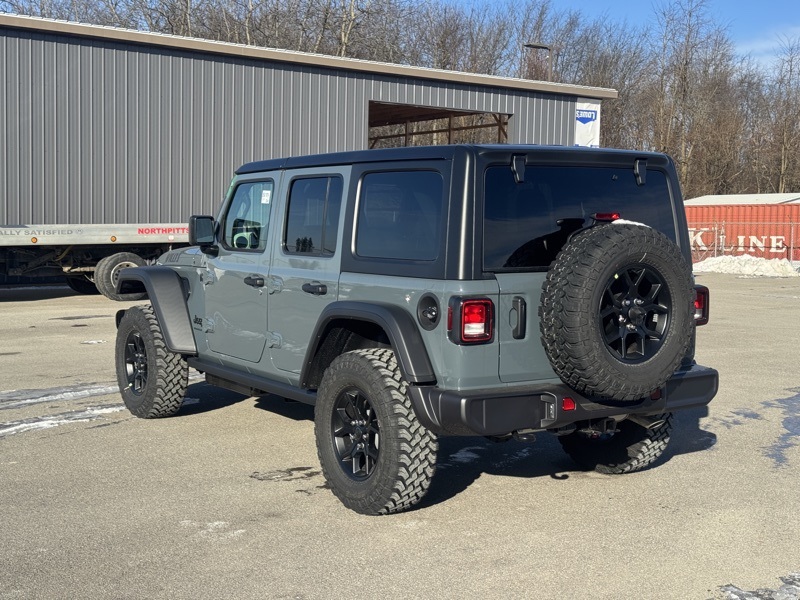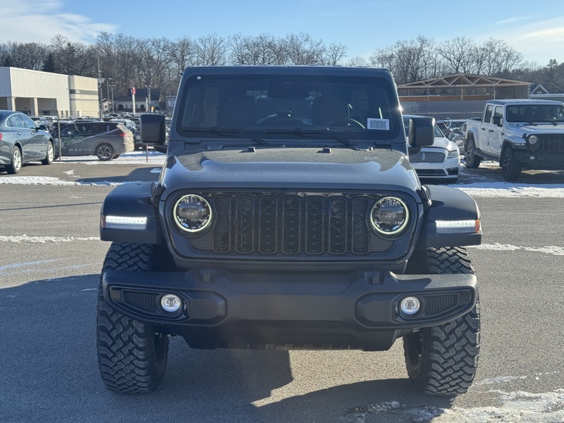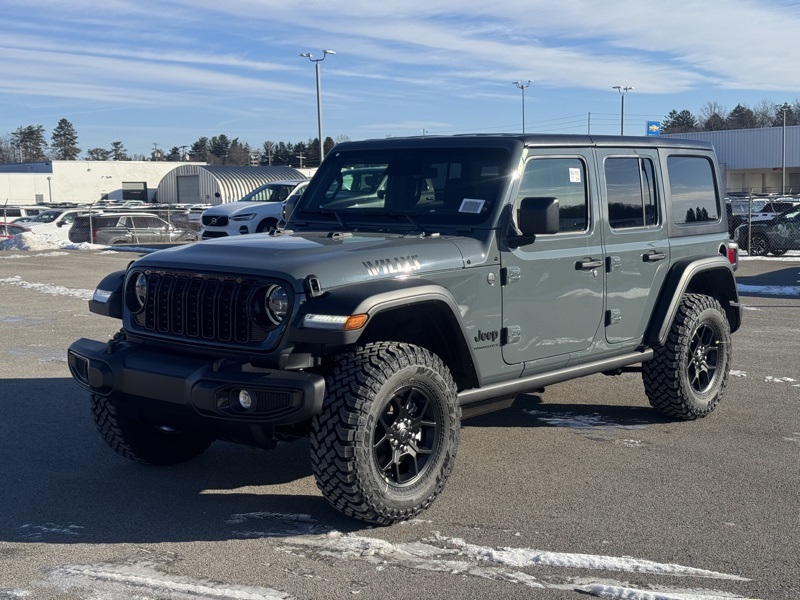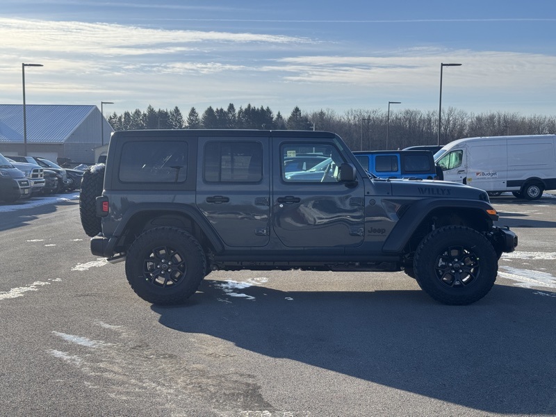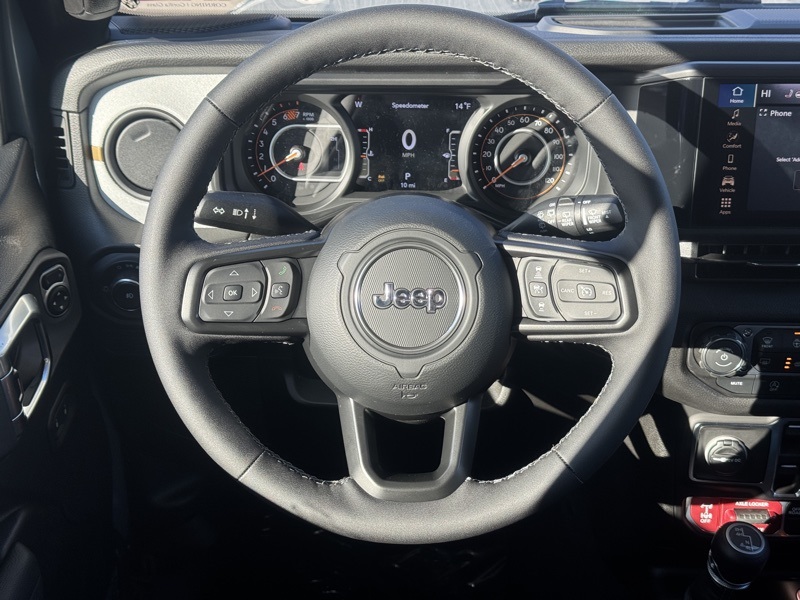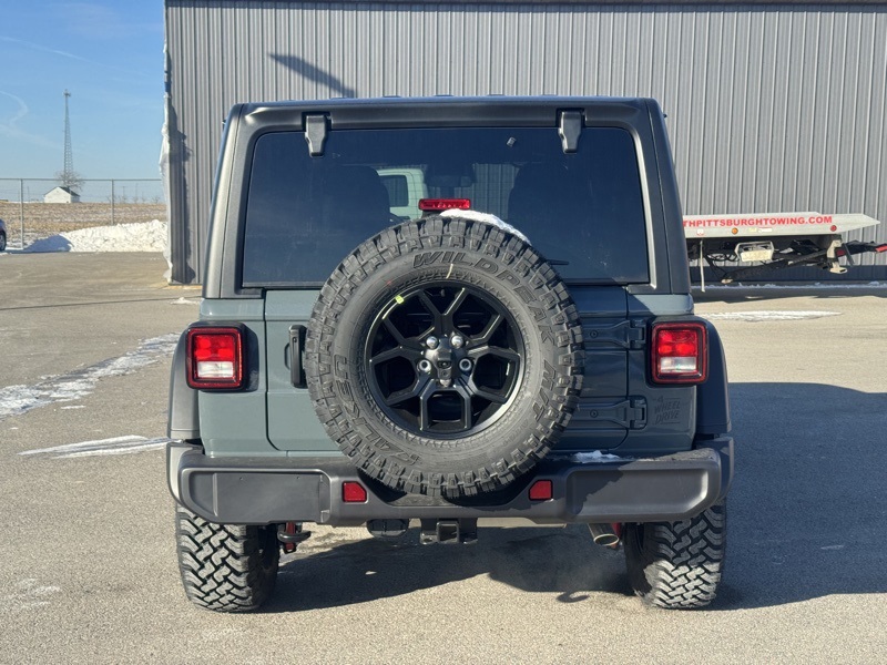 Convenience Group (2-Door Passive Entry, Front Door Locks, Air Conditioning with Auto Temp Control, Air Filtering, Cluster 7.0" TFT Color Display, Emergency/Assistance Call, Heated Front Seats, Heated Steering Wheel, and Universal Garage Door Opener), Quick Order Package 22W Willys (4-Wheel Drive Swing Gate Decal, 7 and 4 Pin Wiring Harness, Advanced Brake Assist, Automatic Headlamps, Auxiliary Switches, Black Grille, Class II Receiver Hitch, Conventional Differential Front Axle, Corning Gorilla Glass, Dana M210 Wide HD Tube Front Axle, Dana M220 Wide Rear Axle, Daytime Running Lamps LED Accents, Deep Tint Sunscreen Windows, E-Locker Rear Axle, Enhanced Adaptive Cruise Control, Front LED Fog Lamps, Full Speed Forward Collision Warning Plus, Injection Molded Black Rear Bumper, LED Premium Reflector Headlamps, Mold in Color Bumper with Gloss Black, Molded in Color Rubicon Highline Flare, MOPAR All-Weather Floor Mats, Off-Road Plus Mode, Power Heated Mirrors, Premium Wrapped Steering Wheel, Security Alarm, Sun Visors with Illuminated Vanity Mirrors, Wheels: 17" x 7.5" Painted Black, Willy's Suspension, and Willys Hood Decal), 12.3" Touchscreen Display, 4-Wheel Disc Brakes, 4G LTE Wi-Fi Hot Spot, 8 Speakers, ABS brakes, Air Conditioning, AM/FM radio: SiriusXM with 360L, Apple CarPlay, Apple CarPlay/Android Auto, Aux Battery, Black 3-Piece Hard Top, Brake assist, Cloth Low-Back Bucket Seats, Compass, Connectivity - US/Canada, Delay-off headlights, Driver door bin, Driver vanity mirror, Dual front impact airbags, Dual front side impact airbags, Electronic Stability Control, For More Info, Call 800-643-2112, Freedom Panel Storage Bag, Front anti-roll bar, Front Bucket Seats, Front Center Armrest w/Storage, Front fog lights, Front reading lights, Google Android Auto, Illuminated entry, Integrated Center Stack Radio, Integrated roll-over protection, Low tire pressure warning, Non-Lock Fuel Cap Without Discriminator, Normal Duty Suspension, Occupant sensing airbag, Outside temperature display, Overhead airbag, Panic alarm, ParkView Rear Back-Up Camera, Passenger door bin, Passenger vanity mirror, Power steering, Power windows, Radio data system, Radio: Uconnect 5 with 12.3" Display, Rear anti-roll bar, Rear reading lights, Rear Window Defroster, Rear Window Wiper/Washer, Remote keyless entry, SiriusXM Radio Service, SiriusXM with 360L, Speed control, Split folding rear seat, Steering wheel mounted audio controls, Stop-Start Dual Battery System, Tachometer, Telescoping steering wheel, Tilt steering wheel, Traction control, Trip computer, Variably intermittent wipers, and Wheels: 17" x 7.5" Black Steel Styled. Recent Arrival! Anvil Clear Coat 2026 Jeep Wrangler Willys 4WD 8-Speed Automatic 2.0L I4 DOHC