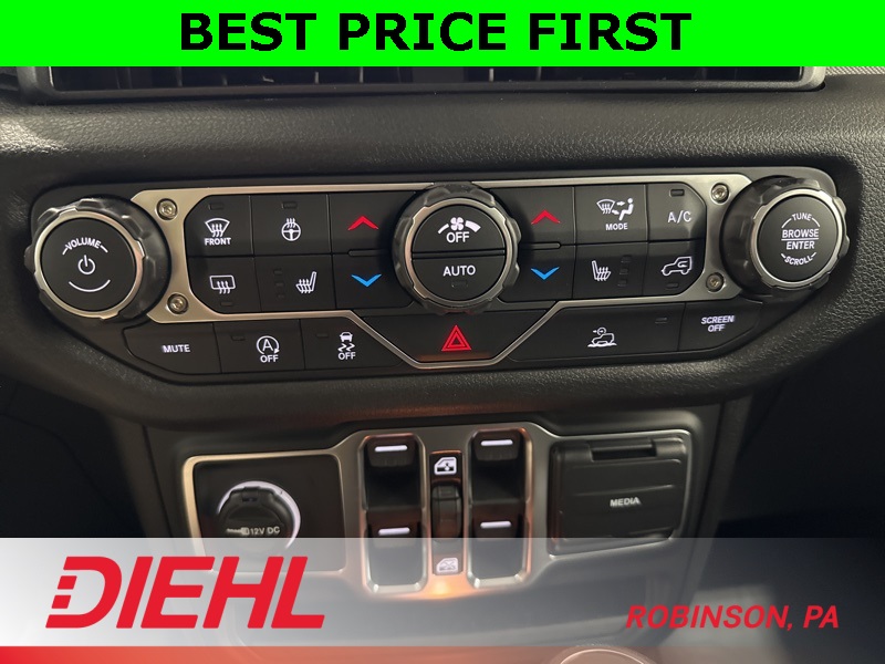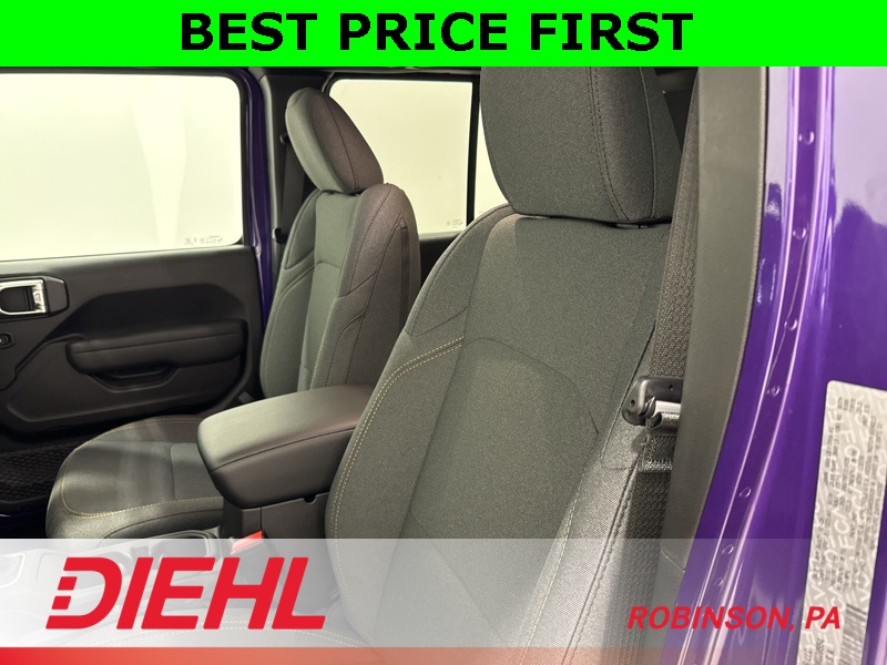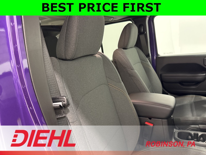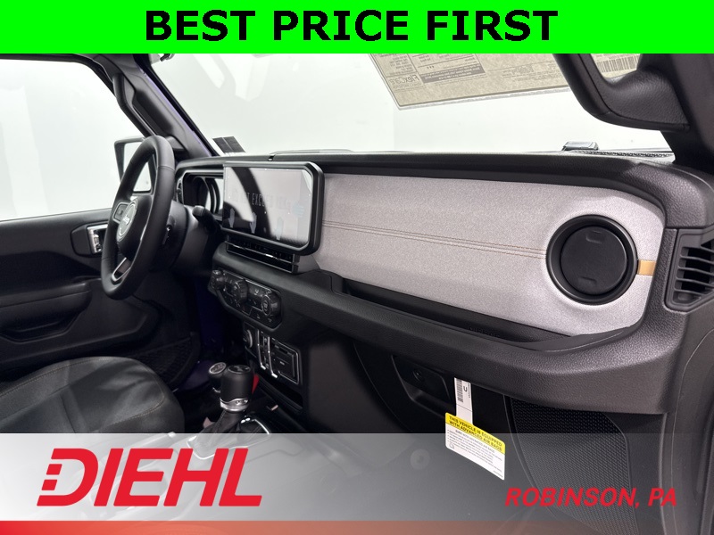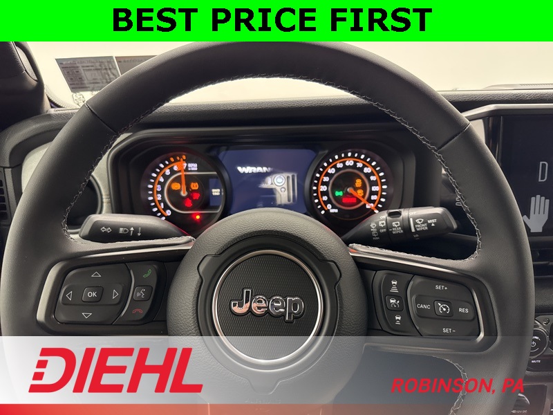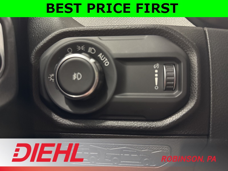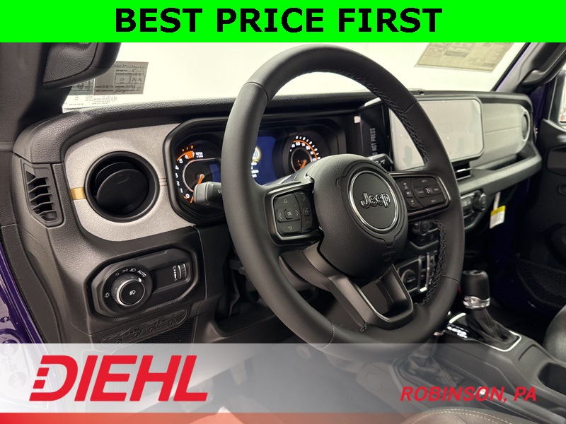 Inside, the Sport S trim adds the right comforts without losing the Wrangler’s purpose-built feel. You get heated front seats, a heated steering wheel, remote start, power windows and locks, and air conditioning with automatic temperature control. The tech is modern and intuitive thanks to the 12.3-inch Uconnect 5 touchscreen, Apple CarPlay, Android Auto, Bluetooth, and steering-wheel-mounted controls, all paired with a crisp digital driver display that keeps everything easy to read whether you’re commuting or crawling.