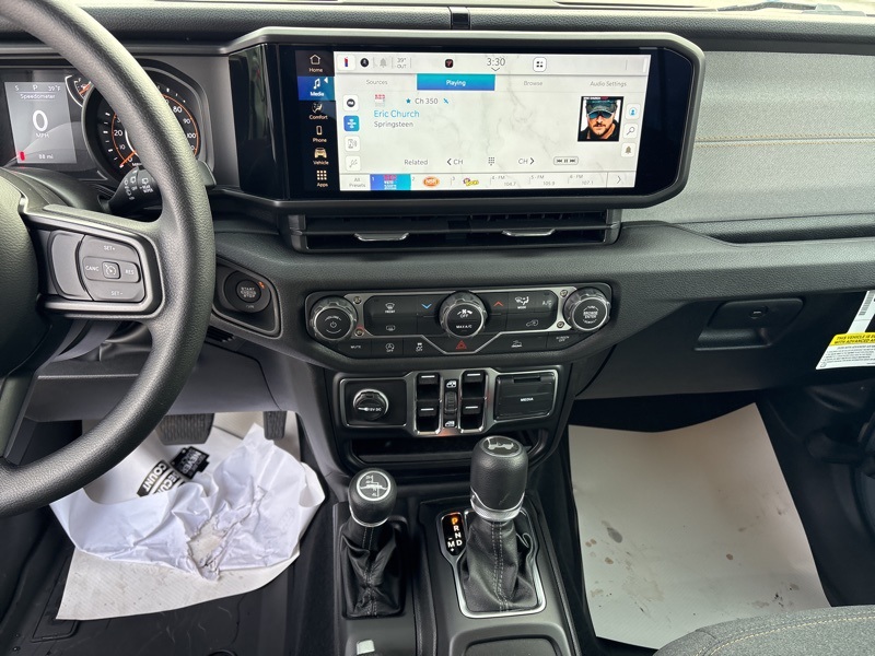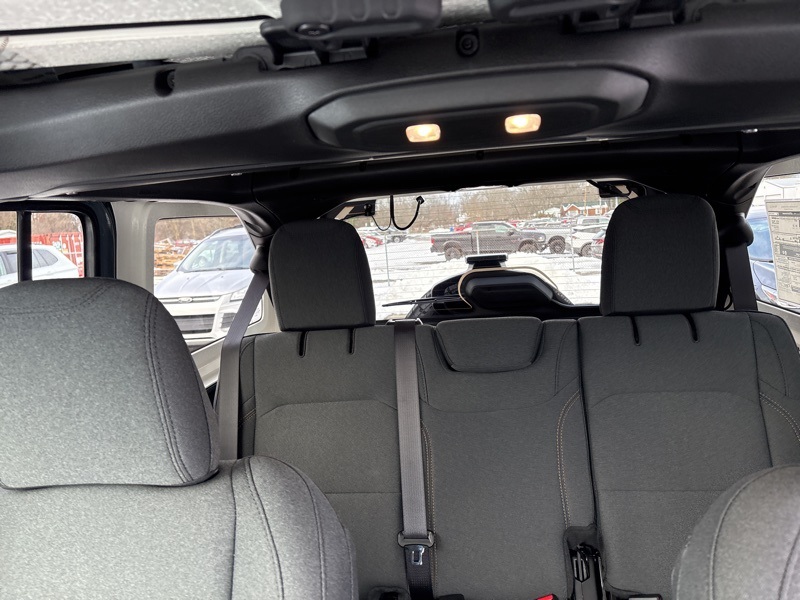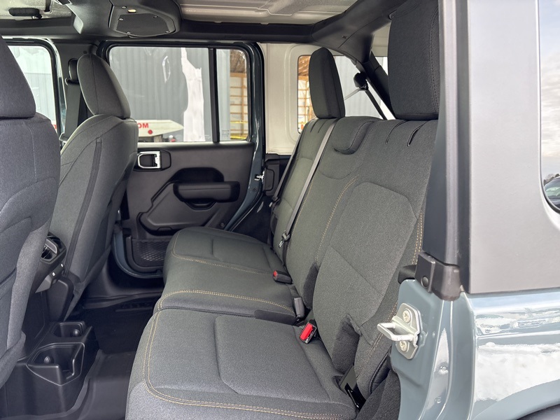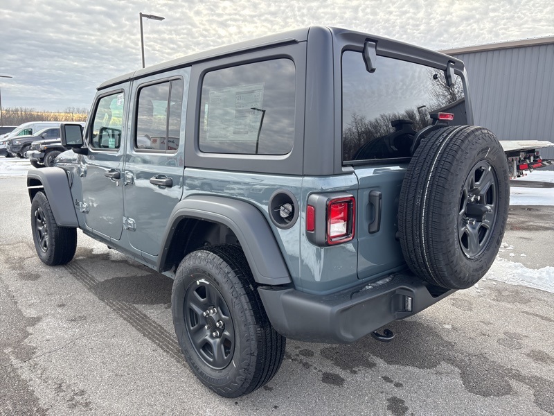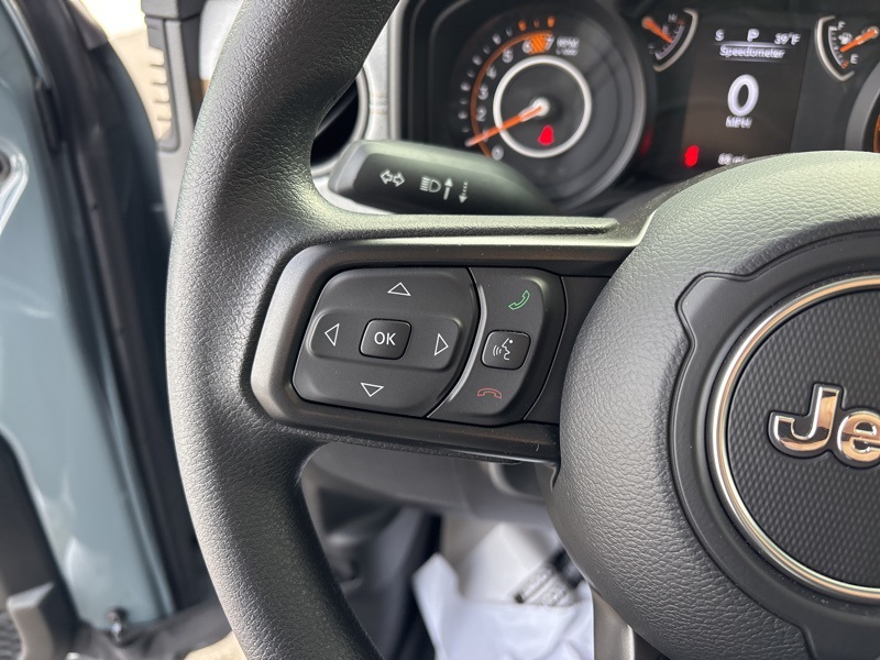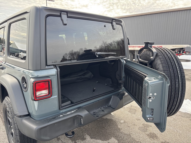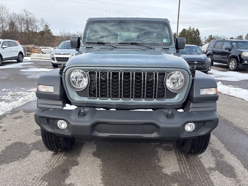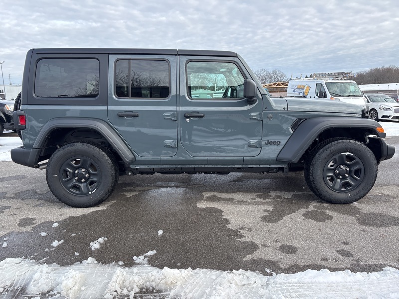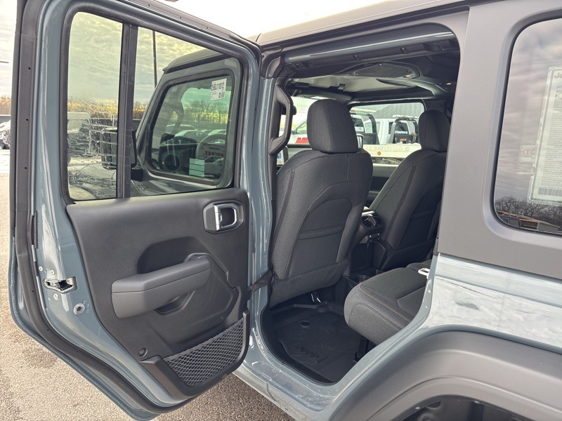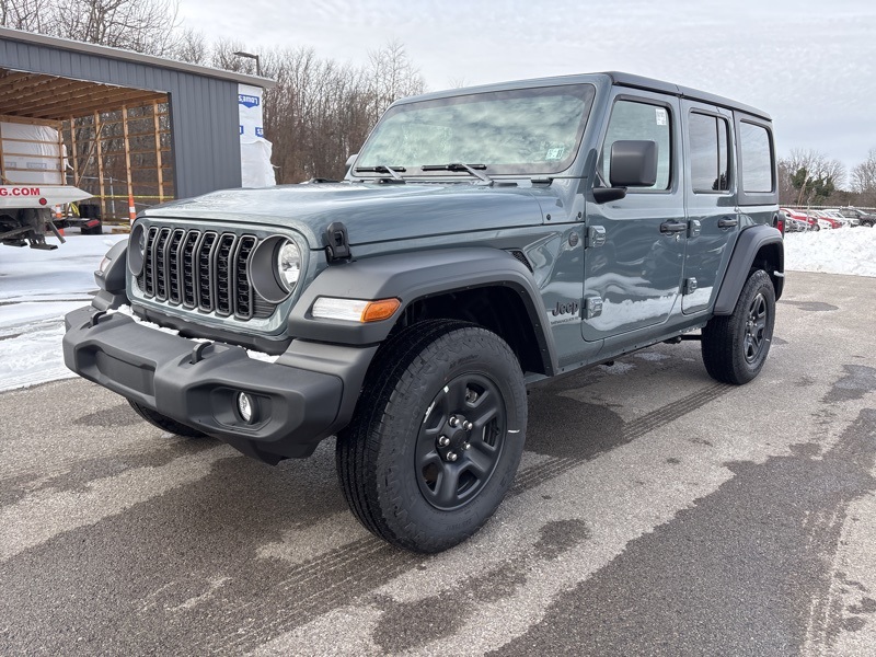 Quick Order Package 22B Sport, 12.3" Touchscreen Display, 3.45 Overall Top Gear Ratio, 4-Wheel Disc Brakes, 4G LTE Wi-Fi Hot Spot, 8 Speakers, ABS brakes, Air Conditioning, AM/FM radio: SiriusXM with 360L, Apple CarPlay, Apple CarPlay/Android Auto, Aux Battery, Black 3-Piece Hard Top, Brake assist, Cloth Low-Back Bucket Seats, Compass, Connectivity - US/Canada, Deep Tint Sunscreen Windows, Delay-off headlights, Driver door bin, Driver vanity mirror, Dual front impact airbags, Dual front side impact airbags, Electronic Stability Control, For More Info, Call 800-643-2112, Freedom Panel Storage Bag, Front anti-roll bar, Front Bucket Seats, Front Center Armrest w/Storage, Front fog lights, Front reading lights, Google Android Auto, Illuminated entry, Integrated Center Stack Radio, Integrated roll-over protection, Low tire pressure warning, MOPAR All-Weather Floor Mats, Non-Lock Fuel Cap Without Discriminator, Normal Duty Suspension, Occupant sensing airbag, Outside temperature display, Overhead airbag, Panic alarm, ParkView Rear Back-Up Camera, Passenger door bin, Passenger vanity mirror, Power steering, Power windows, Radio data system, Radio: Uconnect 5 with 12.3" Display, Rear anti-roll bar, Rear reading lights, Rear Window Defroster, Rear Window Wiper/Washer, Remote keyless entry, SiriusXM Radio Service, SiriusXM with 360L, Speed control, Split folding rear seat, Steering wheel mounted audio controls, Stop-Start Dual Battery System, Tachometer, Telescoping steering wheel, Tilt steering wheel, Traction control, Trip computer, Variably intermittent wipers, and Wheels: 17" x 7.5" Black Steel Styled. Anvil Clear Coat 2026 Jeep Wrangler Sport 4WD 8-Speed Automatic 2.0L I4 DOHC