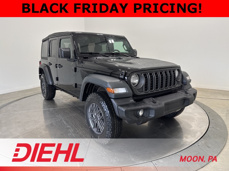 With the Sport S package, premium styling upgrades, and all terrain capability that only a Jeep can deliver, this new 2026 Jeep Wrangler 4 Door Sport S for sale near Pittsburgh is your passport to freedom. Visit Diehl of Moon Chrysler Jeep Dodge Ram in Moon Township PA today for the best new Jeep deals near Pittsburgh and discover why no road is ever truly off limits in a Wrangler. Price includes: $500 - 2026 National 2026 First Responder Bonus Cash . Exp. 01/05/2026
